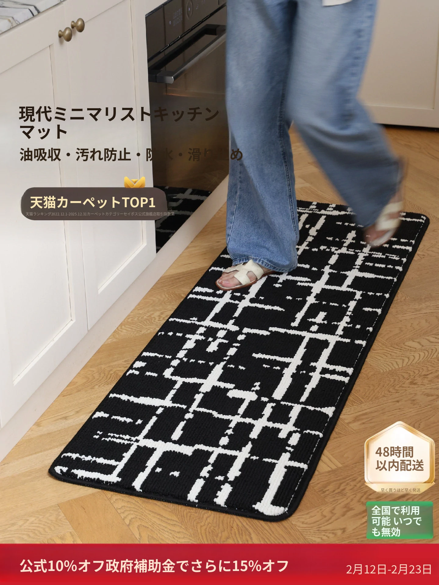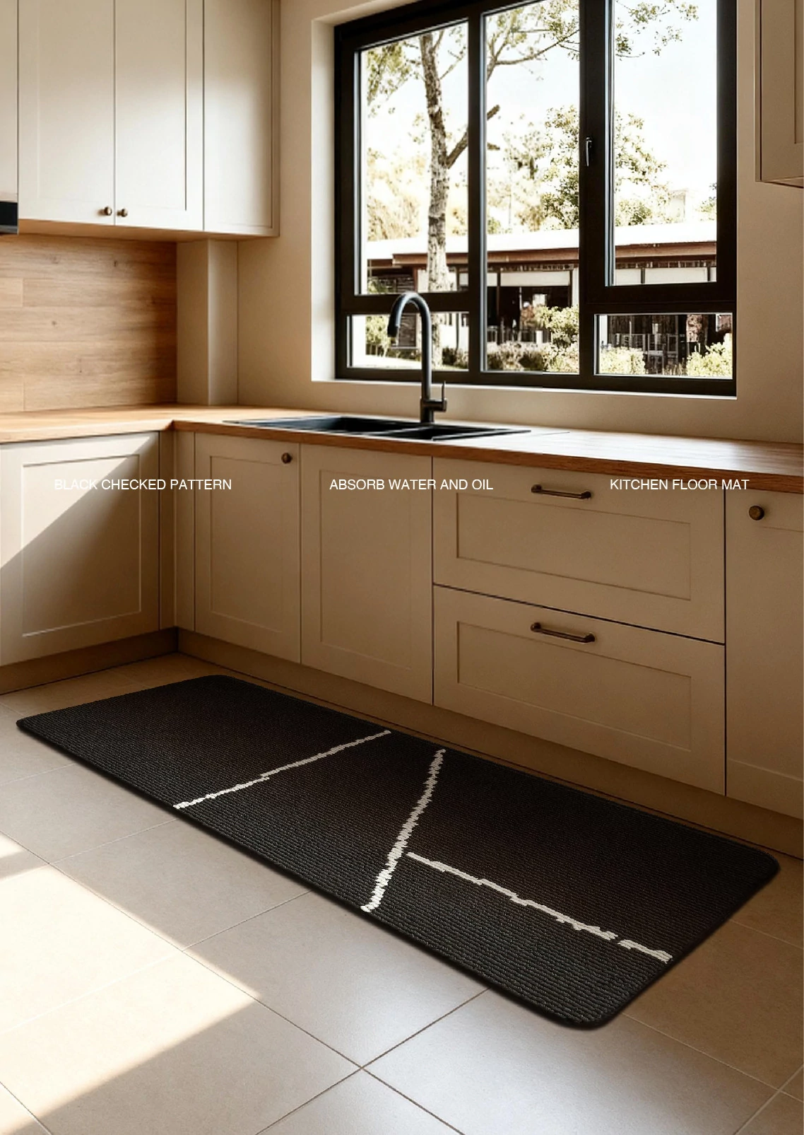 キッチンマット (黒白チェック)