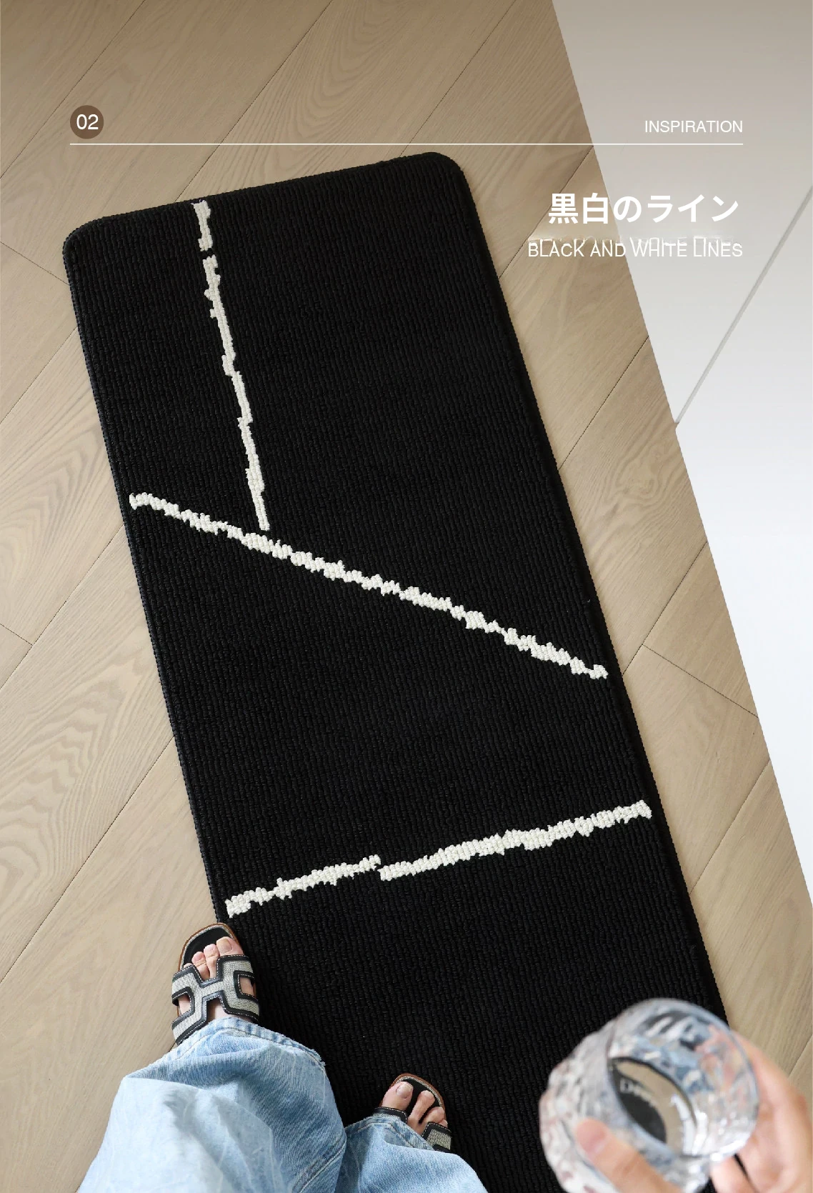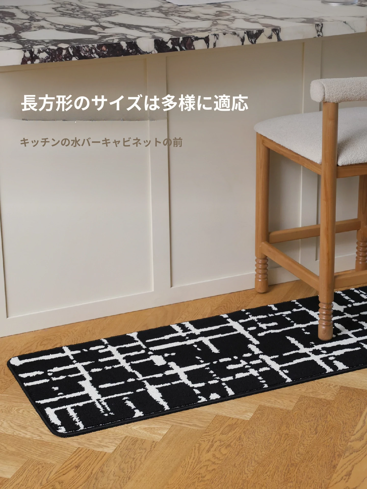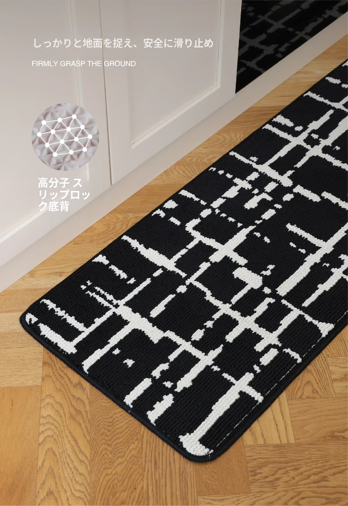 キッチンマット (黒白ストライプ)