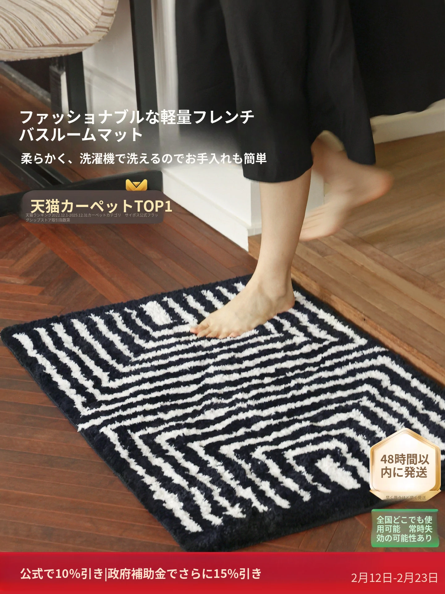 サイボス・キドリーム パリ バスルームマット 玄関マット 吸水・滑り止め機能付き 高級感あふれる家庭用ラグマット おしゃれなデザインで快適な空間を演出!