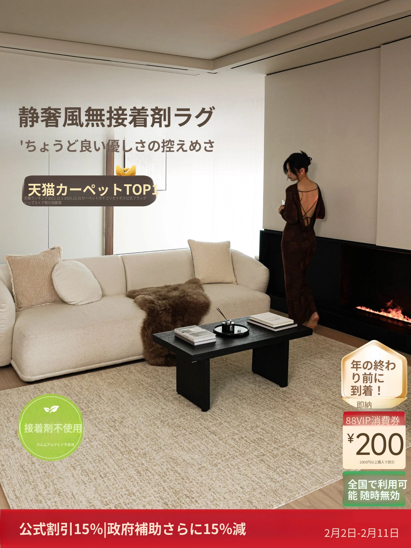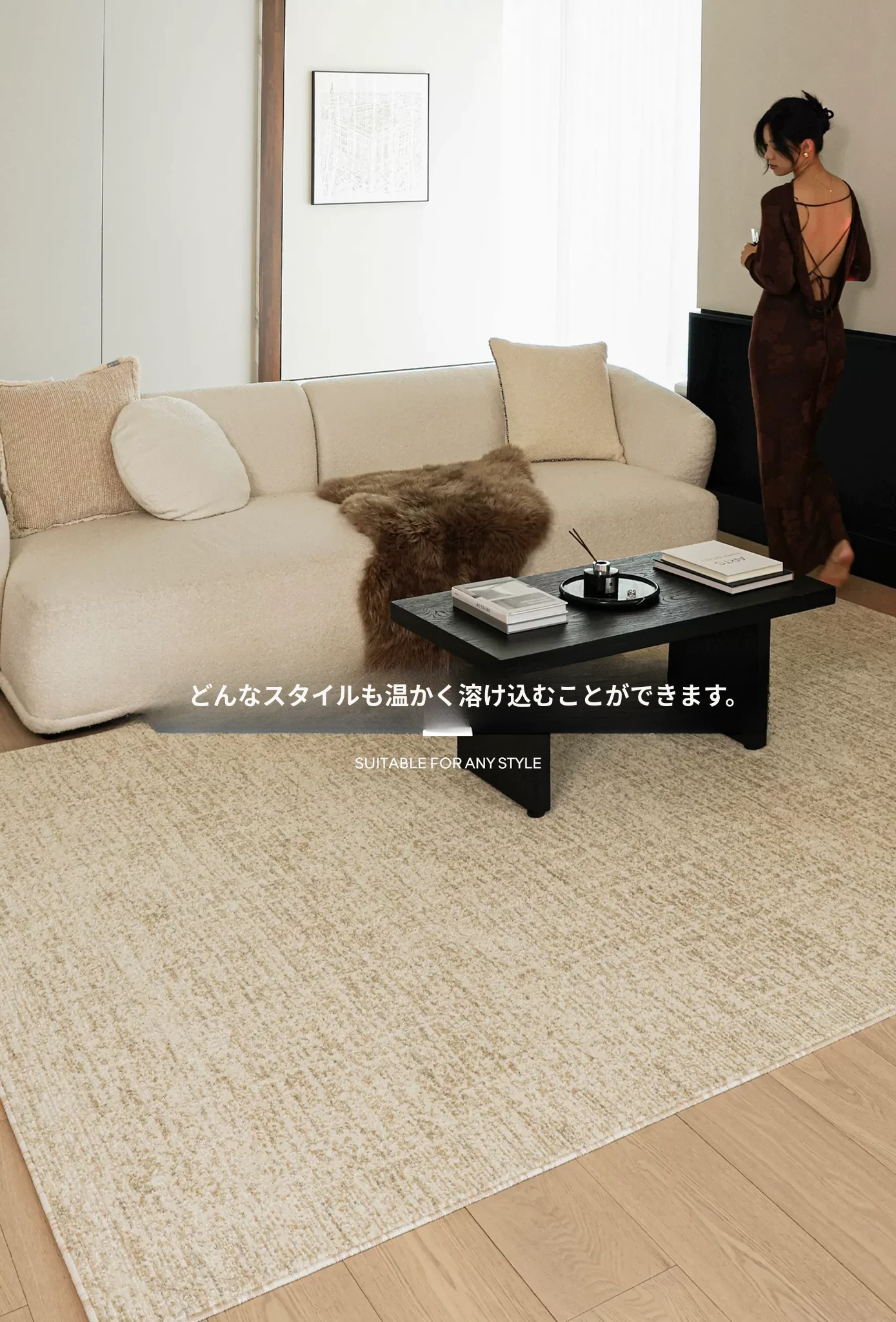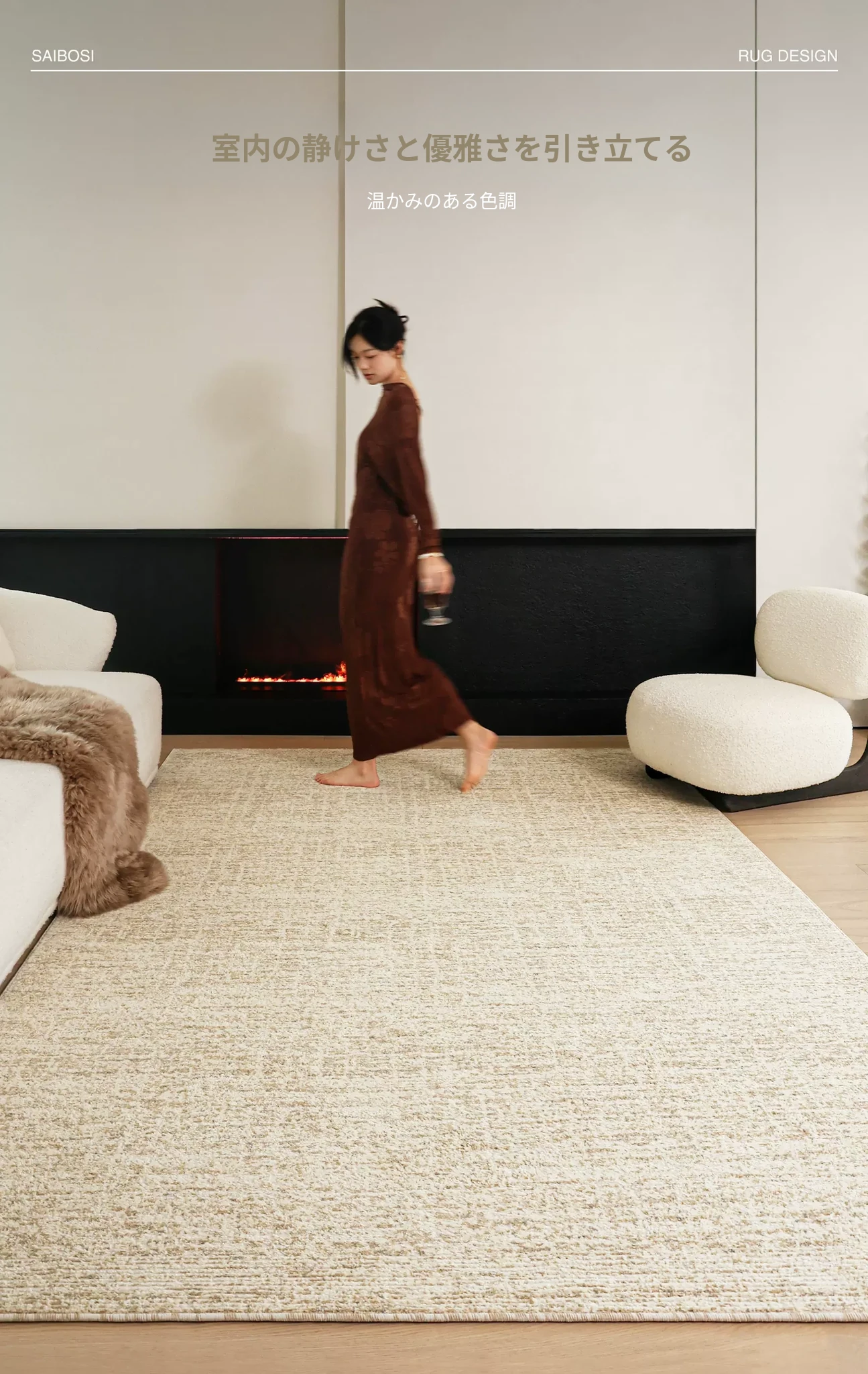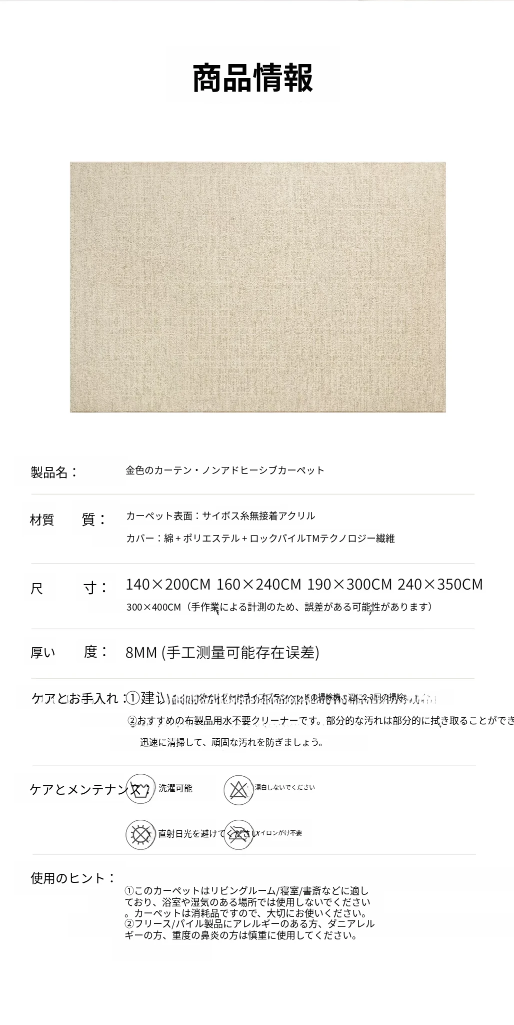 セイボス ゴールドカーテン雲 無接着剤カーペット フォルムなしホルムアルデヒド クリーム イタリアンミニマル ラグジュアリー 寝室・リビング・部屋にぴったり!