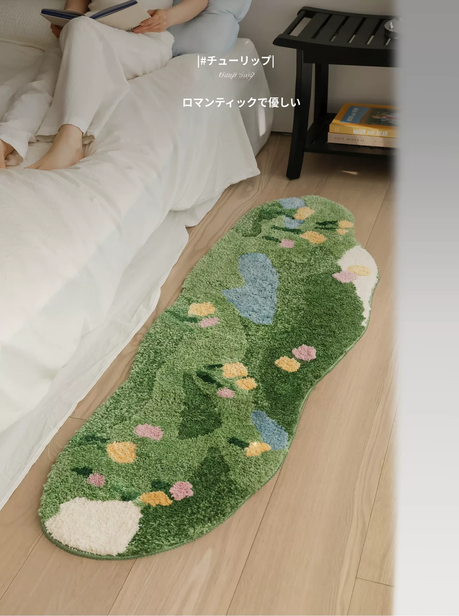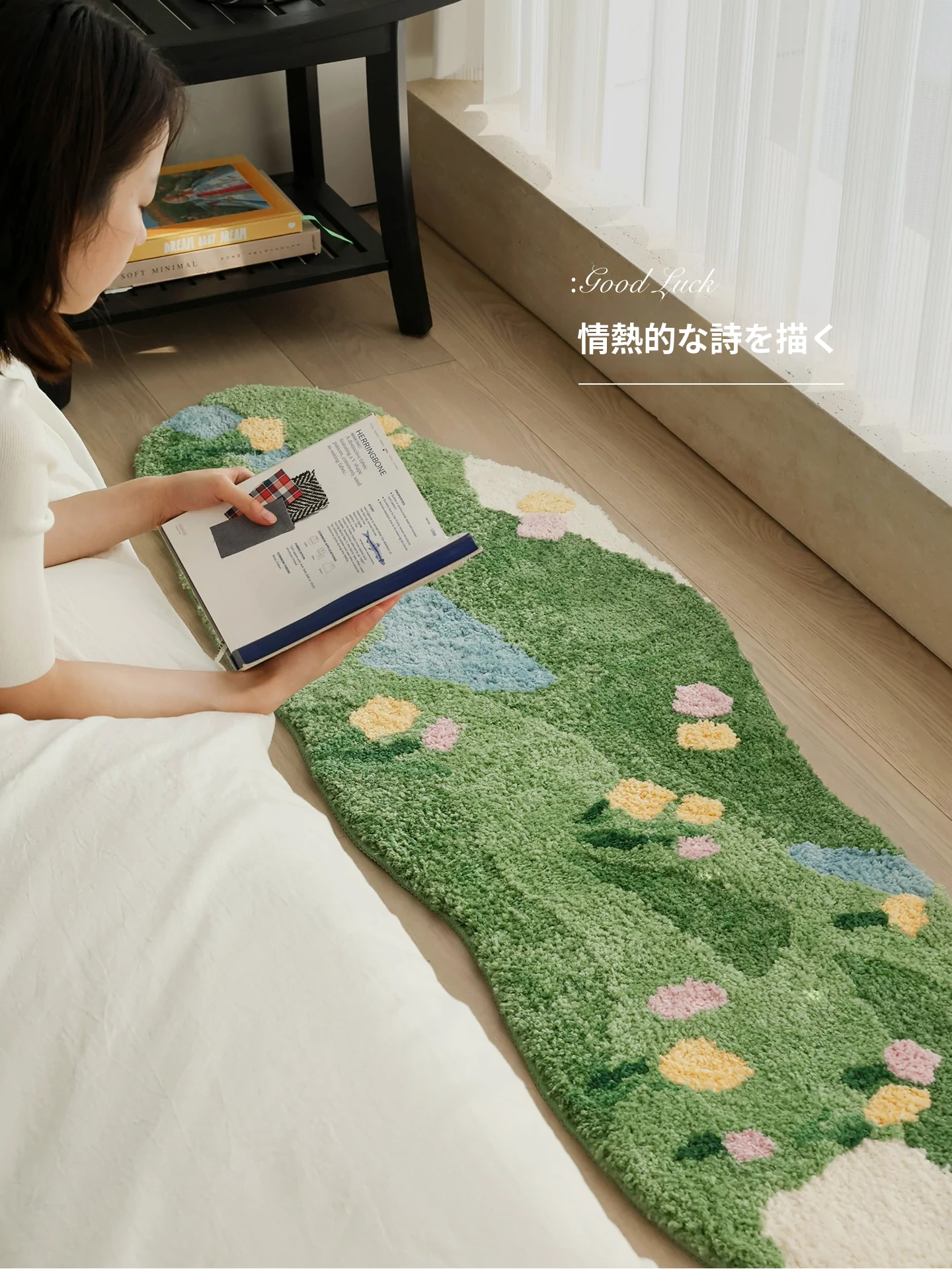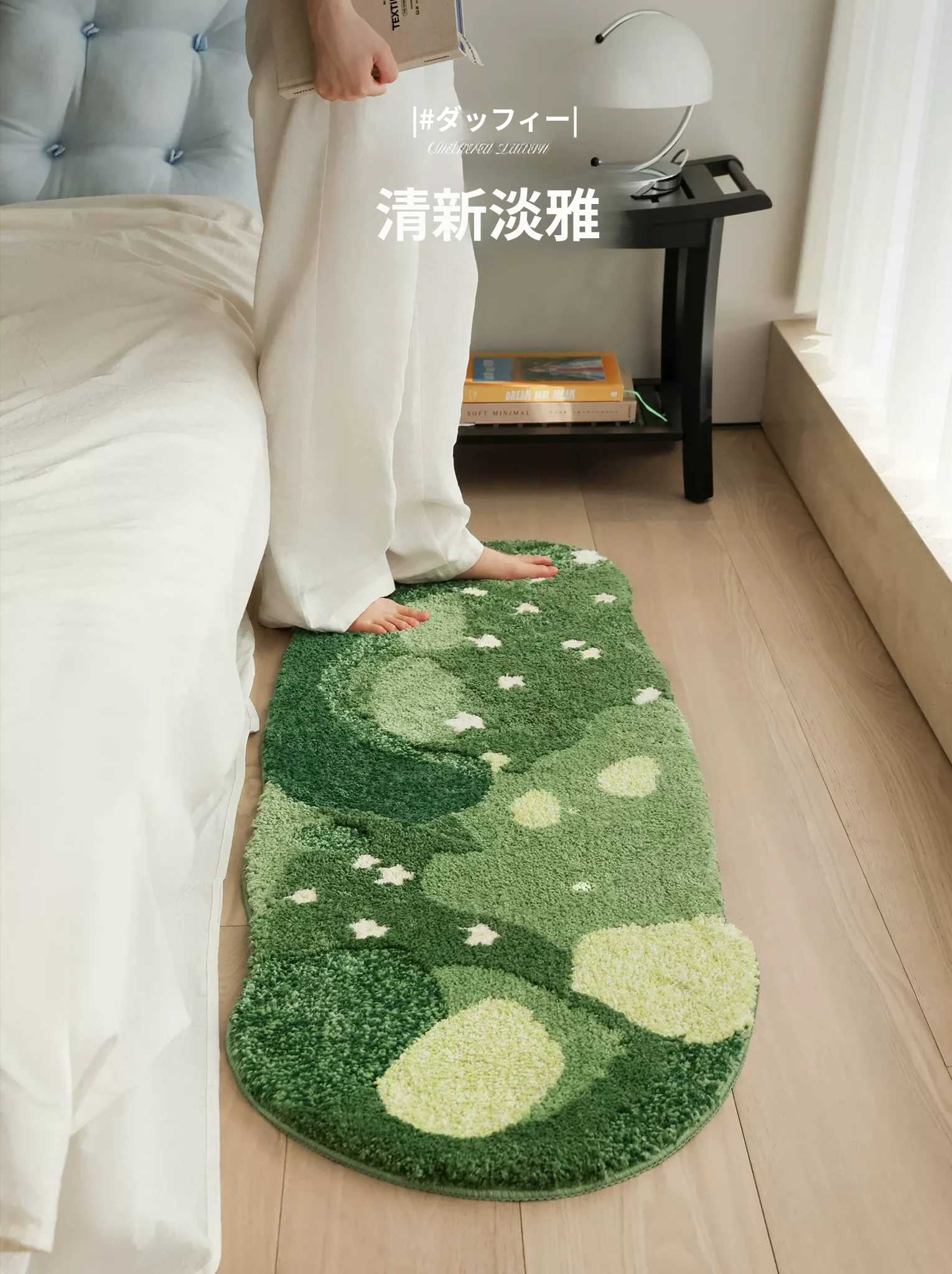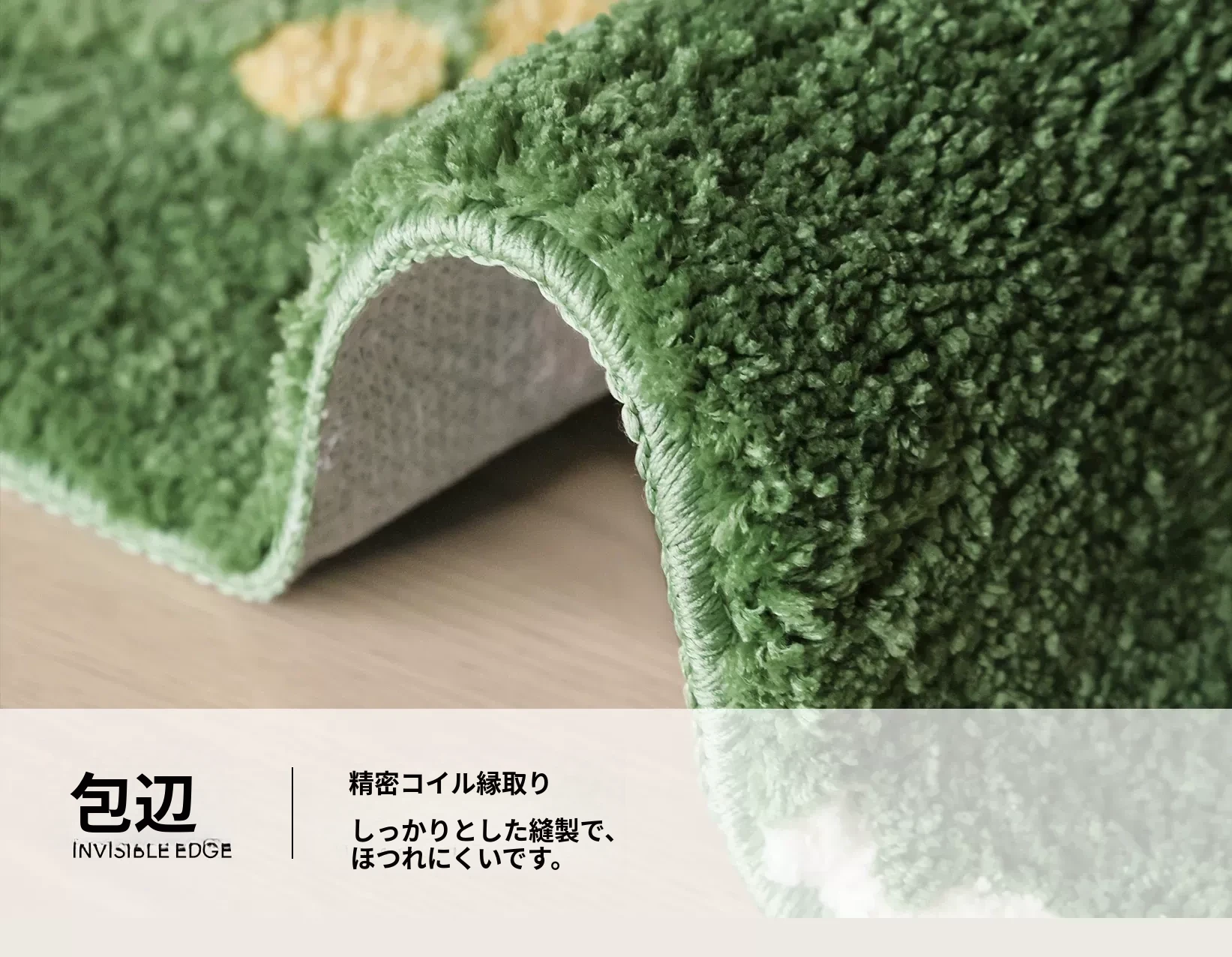 サイボス異形ベッドサイドカーペット 長方形 グリーン 柔らかい 滑り止め 高級感 漢字のデザインで おしゃれな寝室や窓辺、クローゼット、リビングに最適なカーペット!
