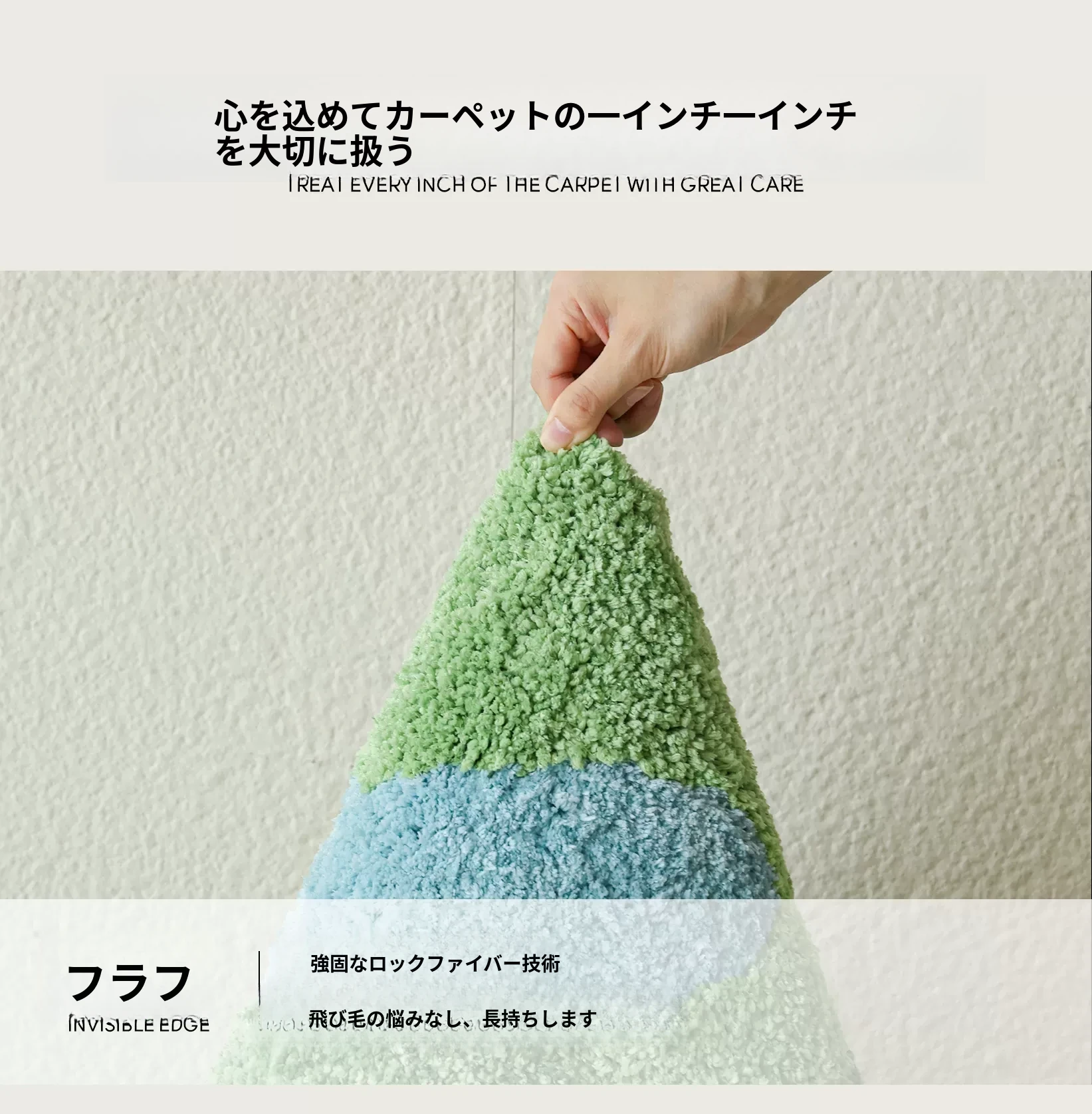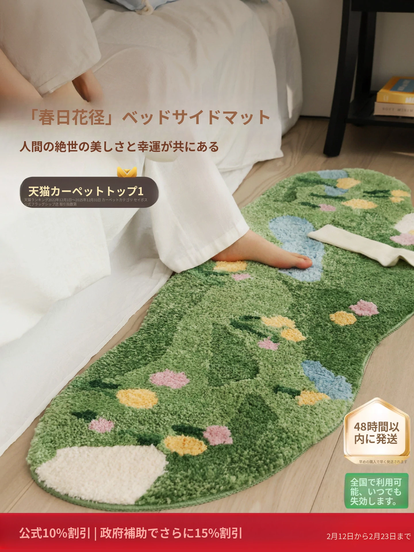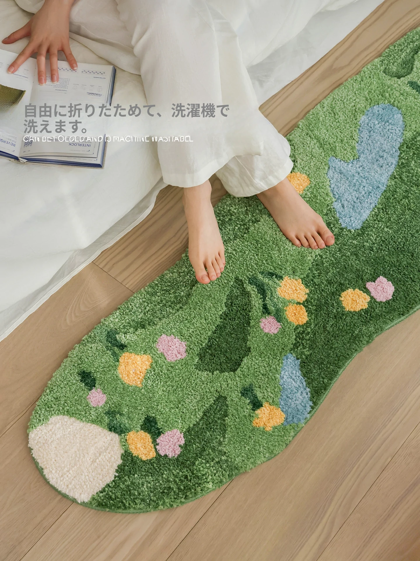サイボス異形ベッドサイドカーペット 長方形 グリーン 柔らかい 滑り止め 高級感 漢字のデザインで おしゃれな寝室や窓辺、クローゼット、リビングに最適なカーペット!