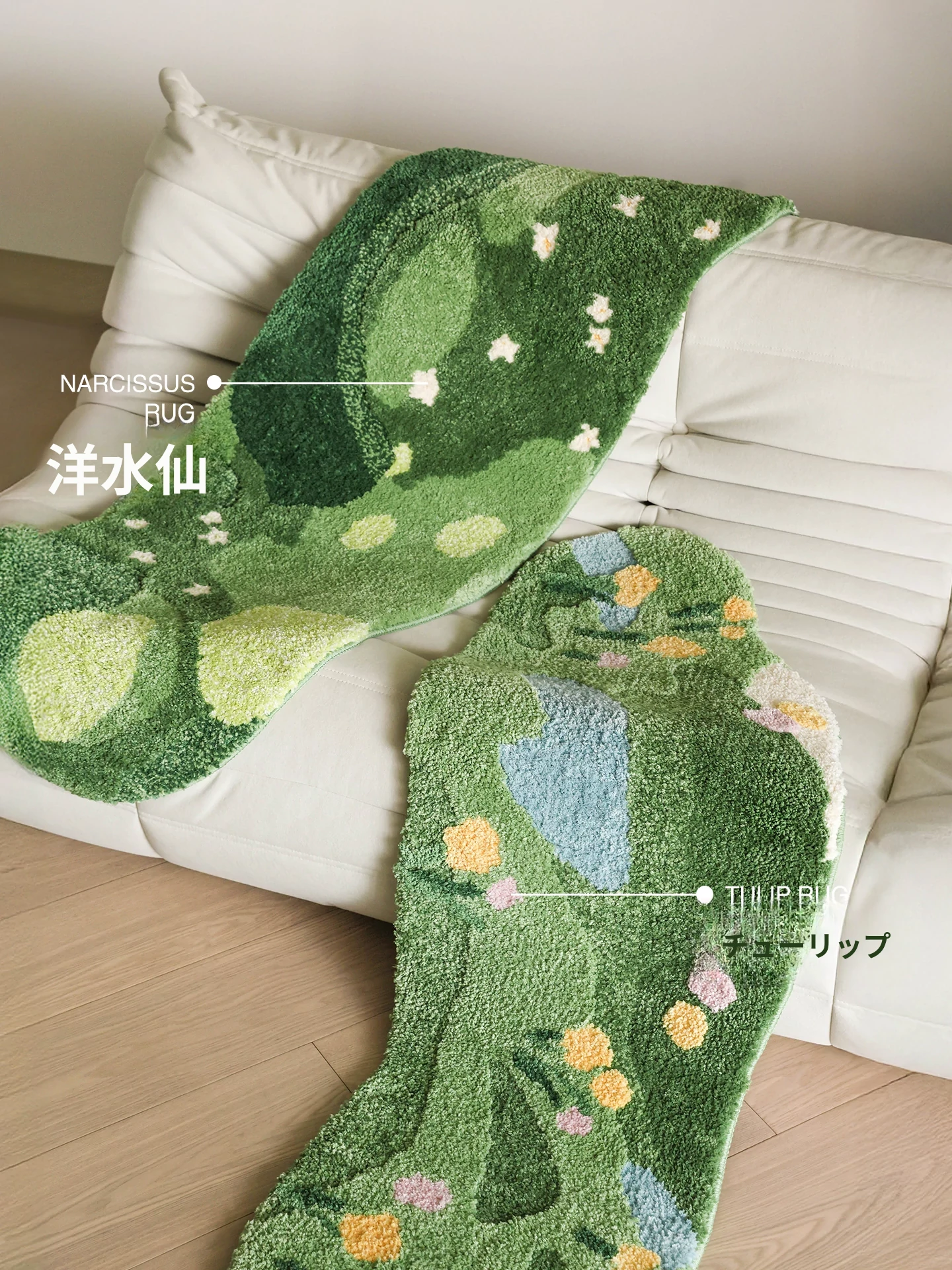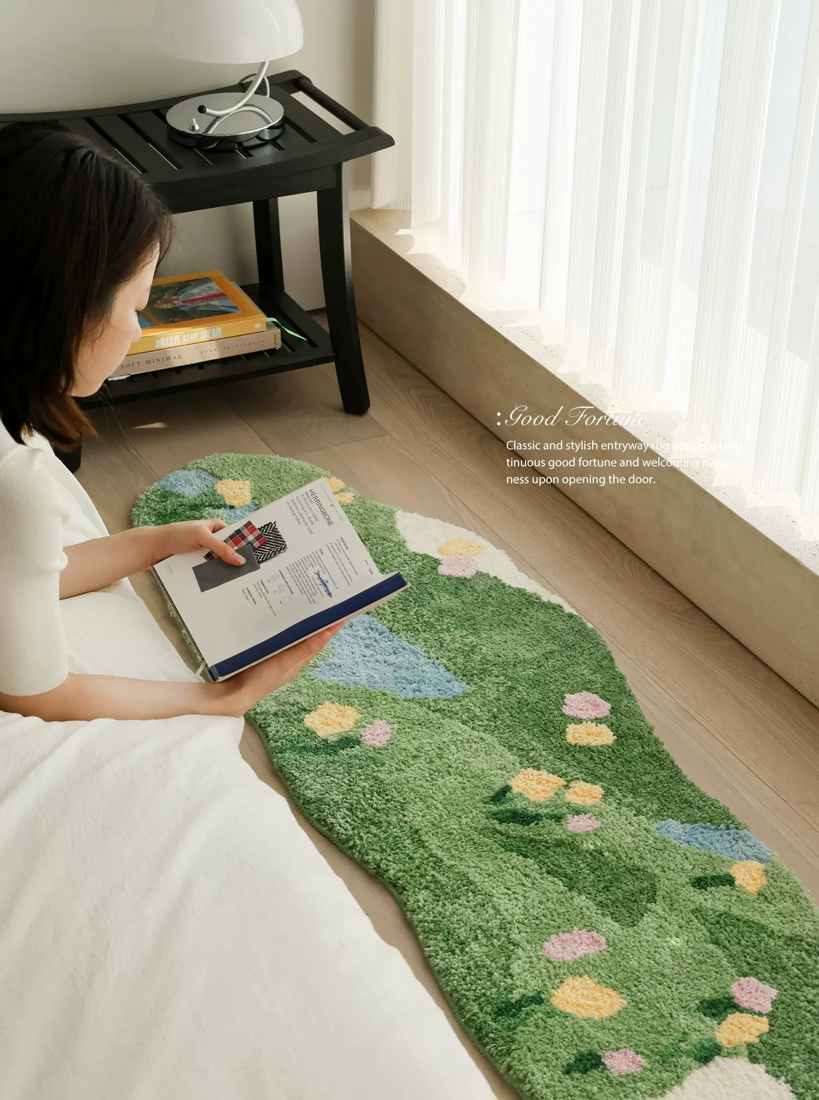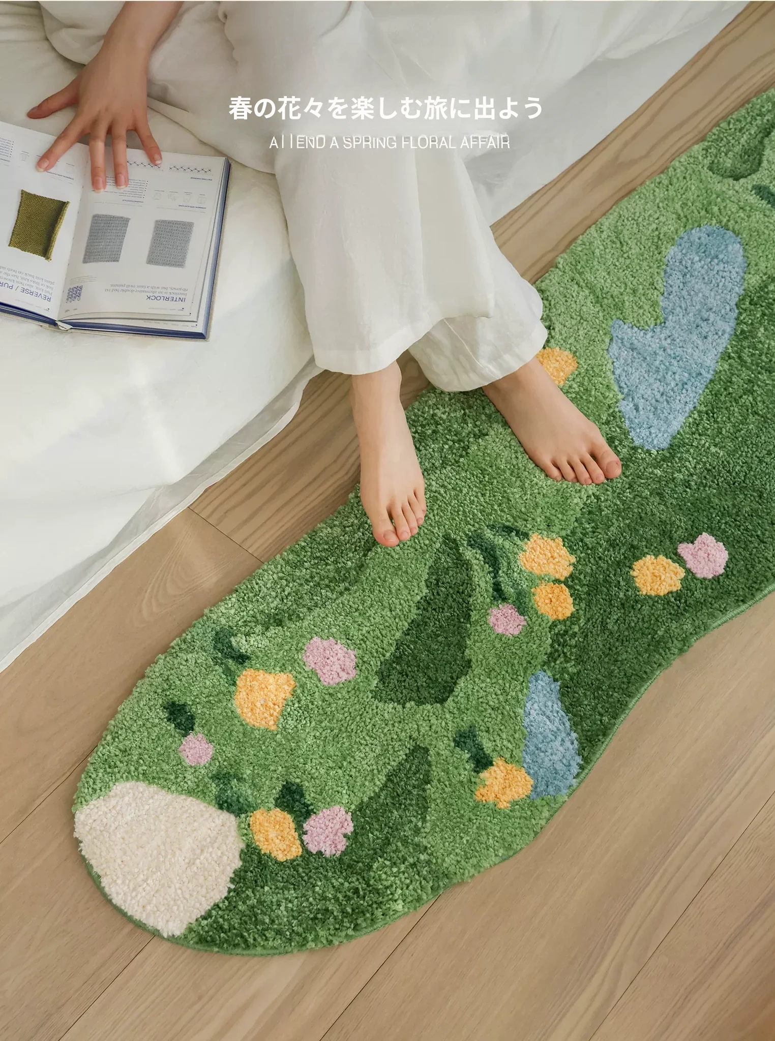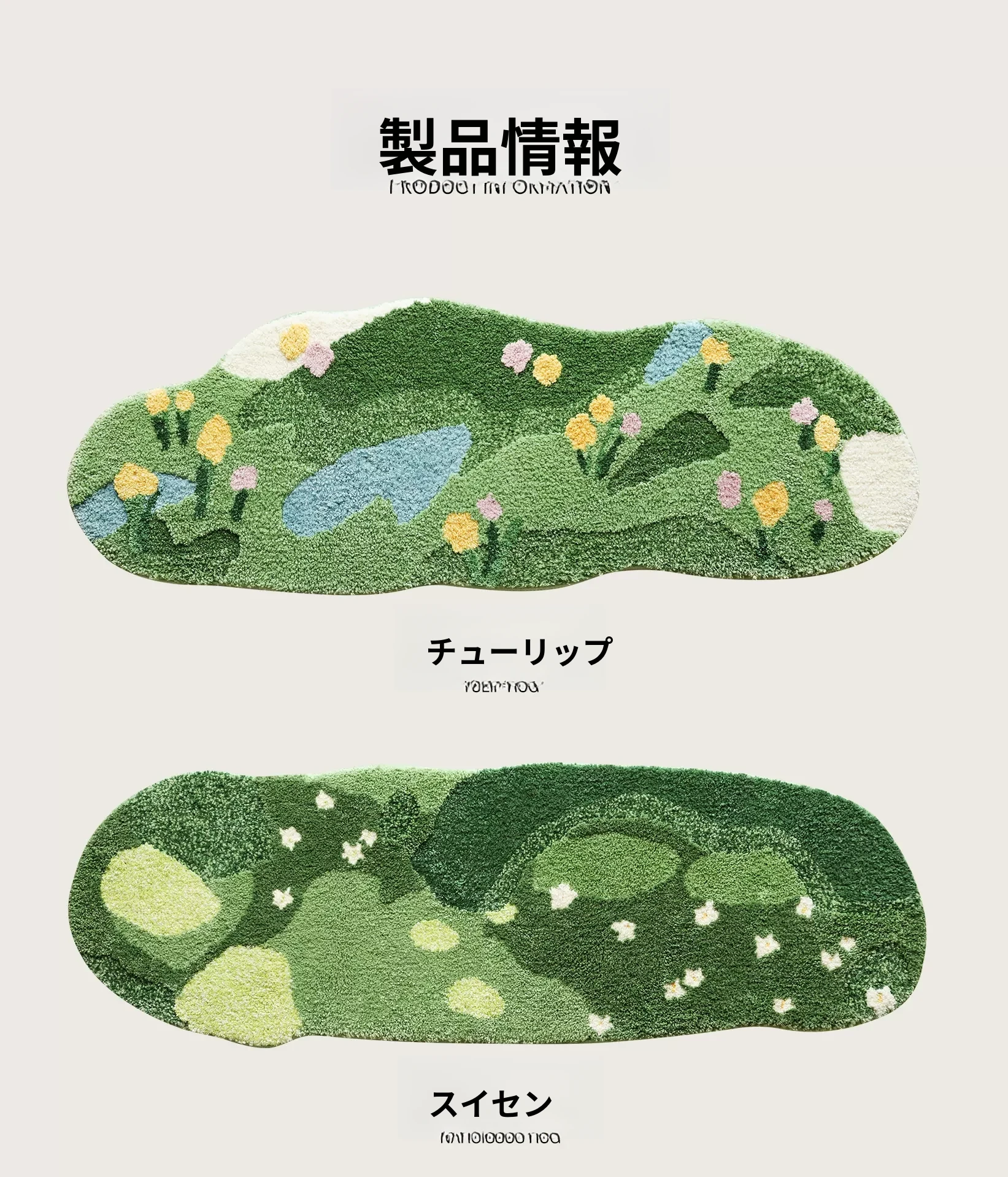 サイボス異形ベッドサイドカーペット 長方形 グリーン 柔らかい 滑り止め 高級感 漢字のデザインで おしゃれな寝室や窓辺、クローゼット、リビングに最適なカーペット!