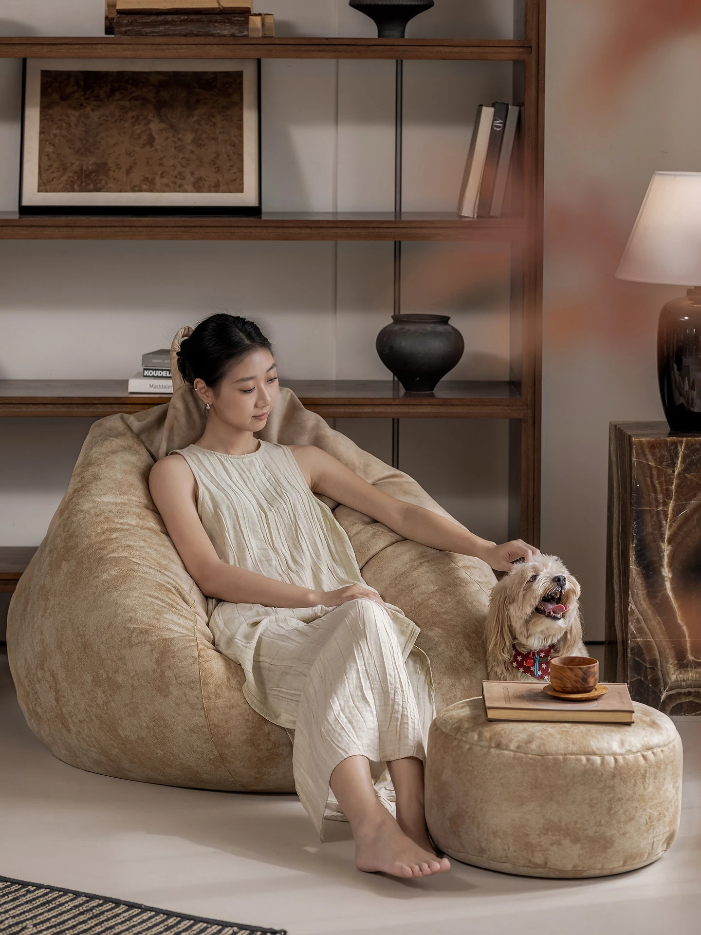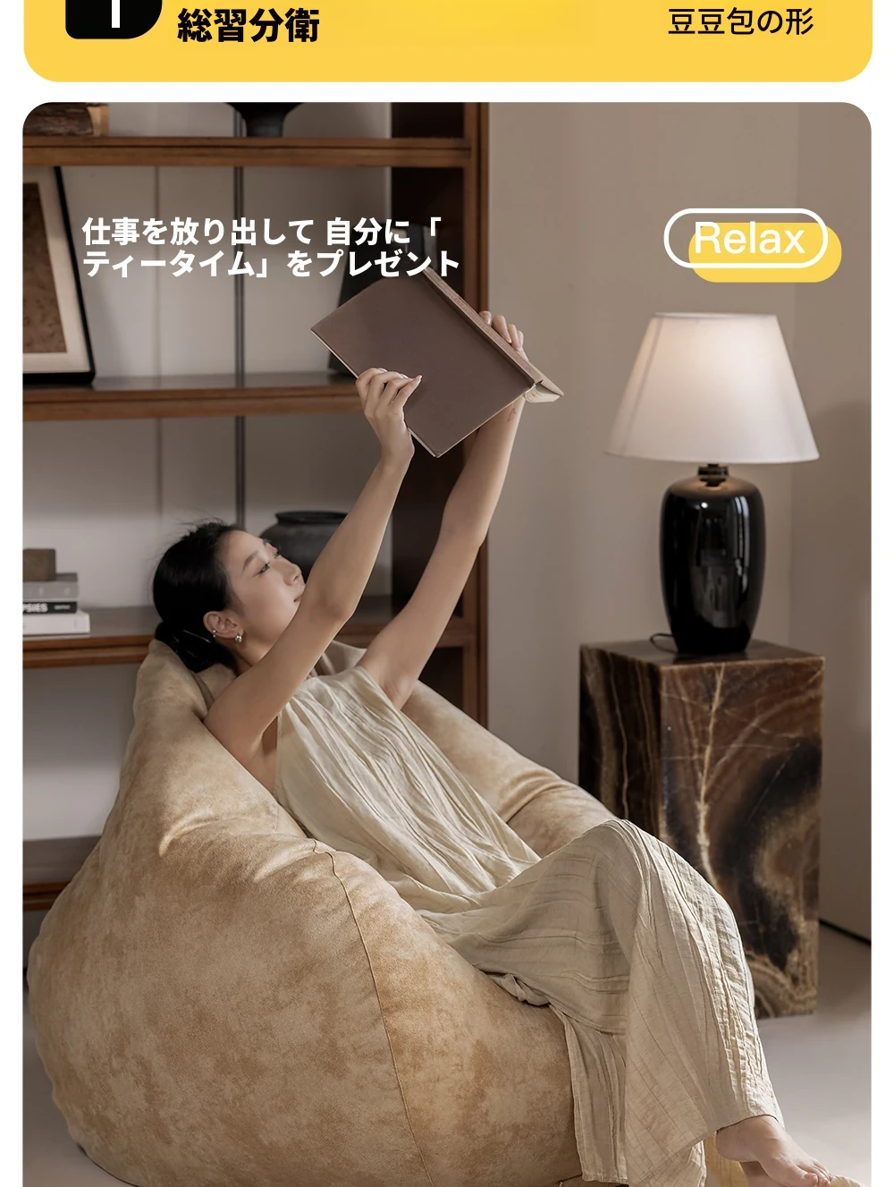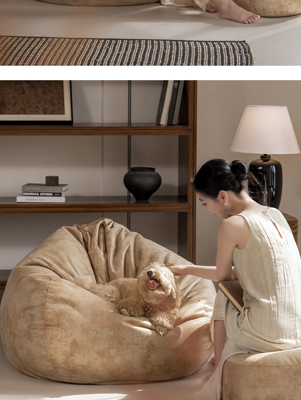 SILVER FROSTレトロノスタルジックなスエードラウンジソファ - 寝転びもできる!リラックスしたい時にぴったりのベッドソファ、寝室やリビングに最適なビーズクッションです。