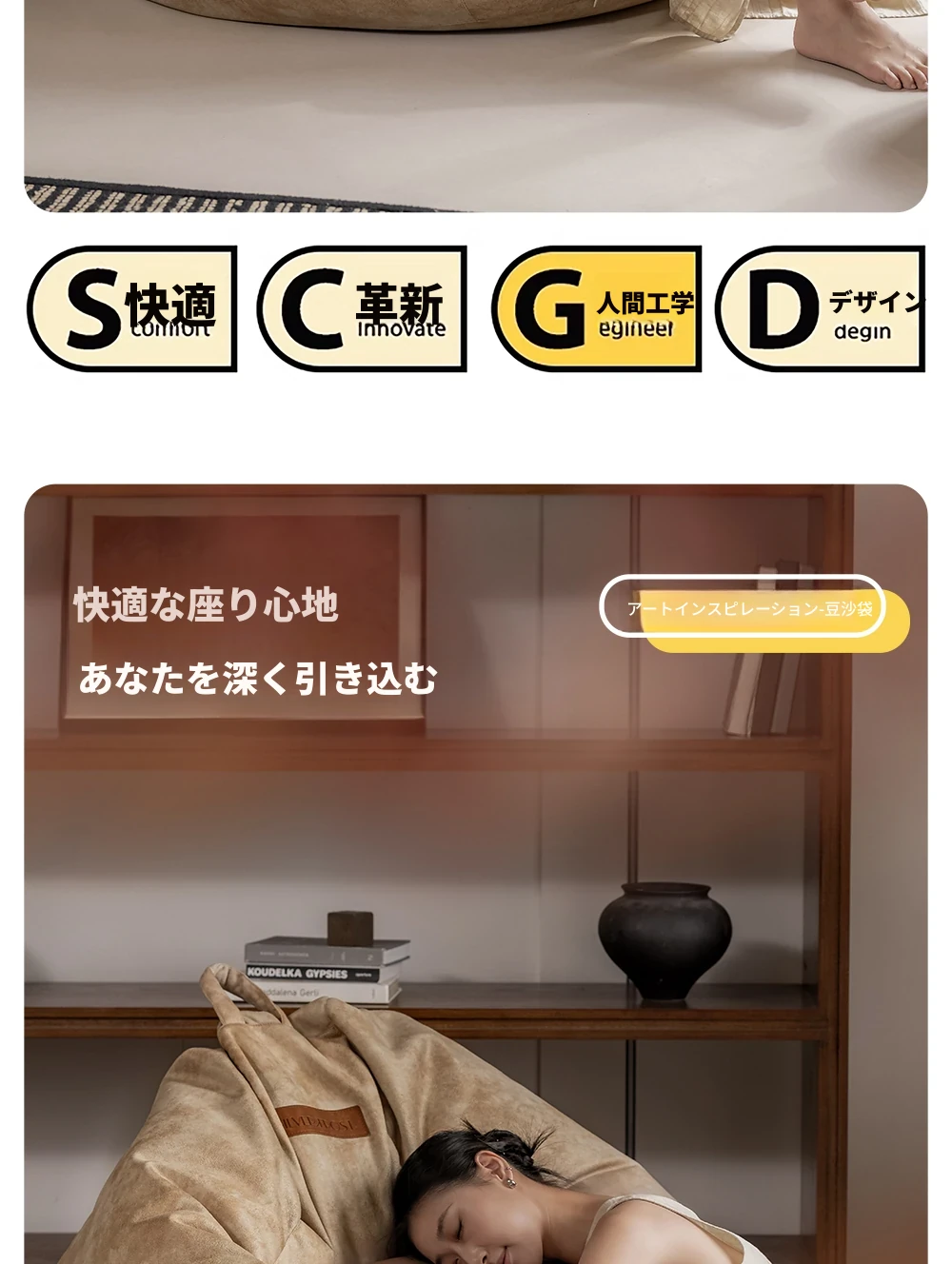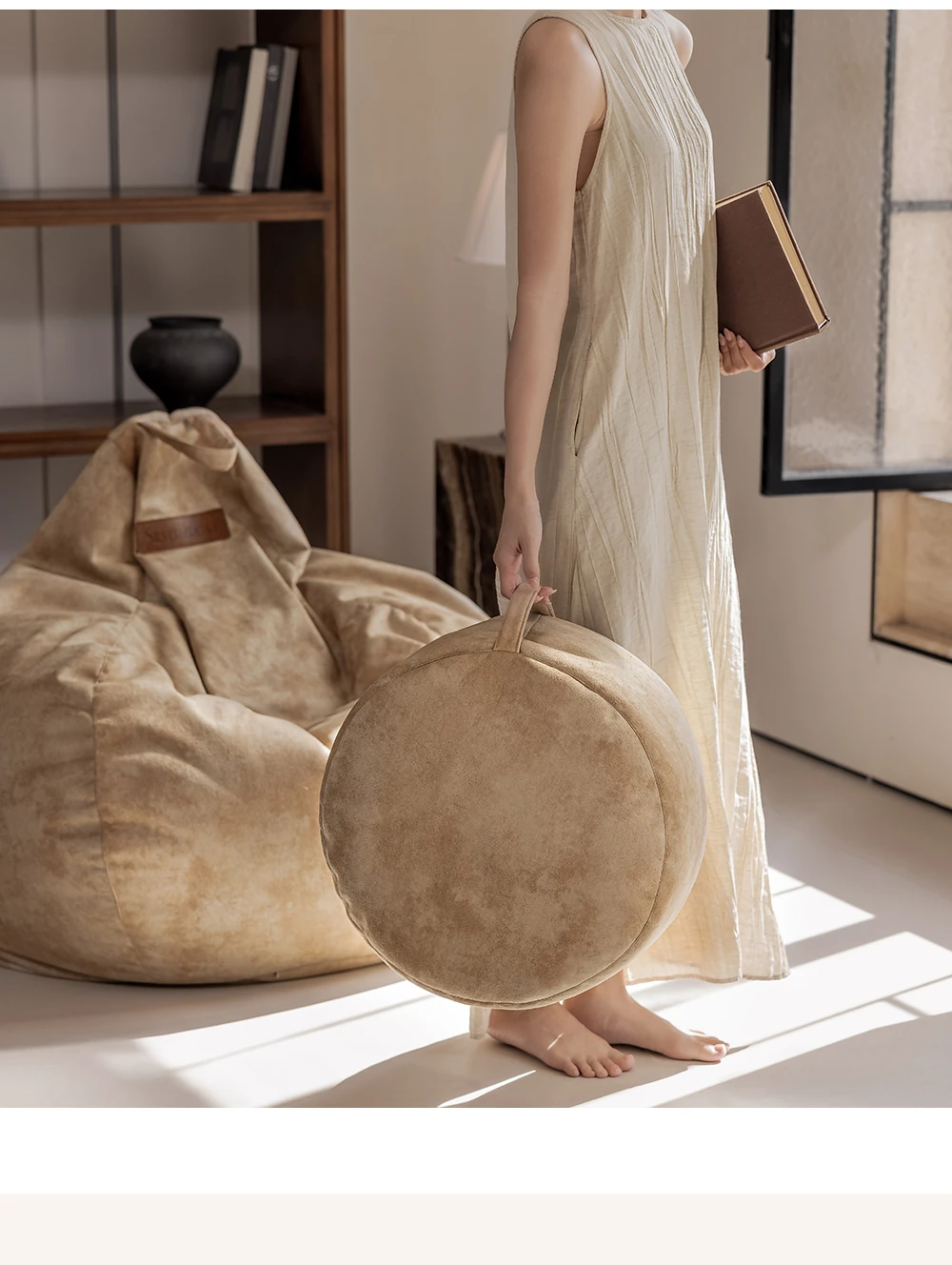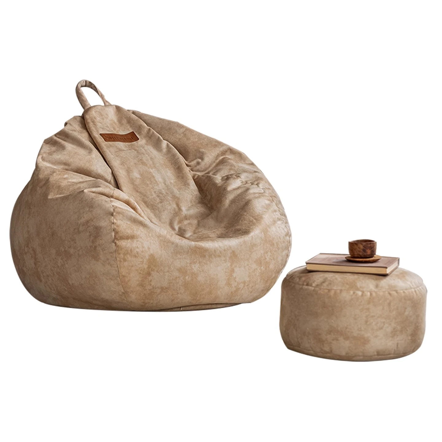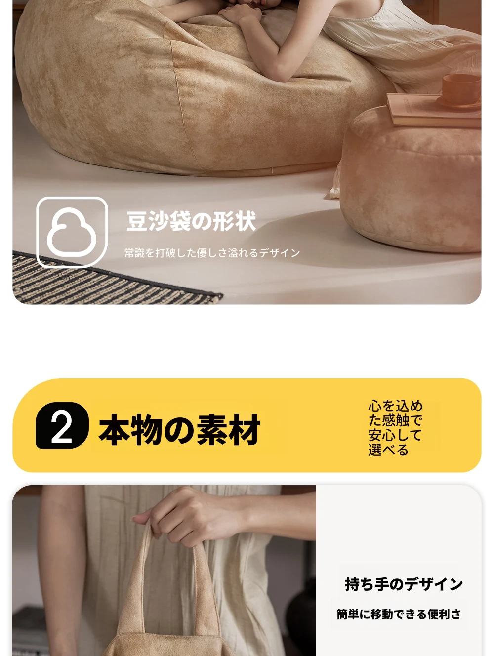 SILVER FROSTレトロノスタルジックなスエードラウンジソファ - 寝転びもできる!リラックスしたい時にぴったりのベッドソファ、寝室やリビングに最適なビーズクッションです。