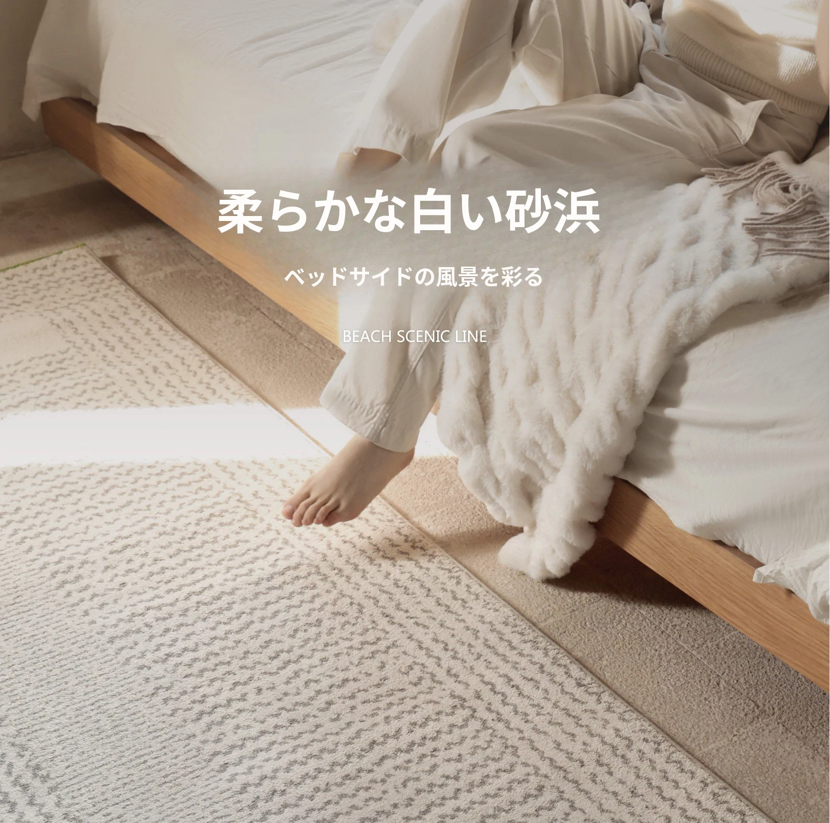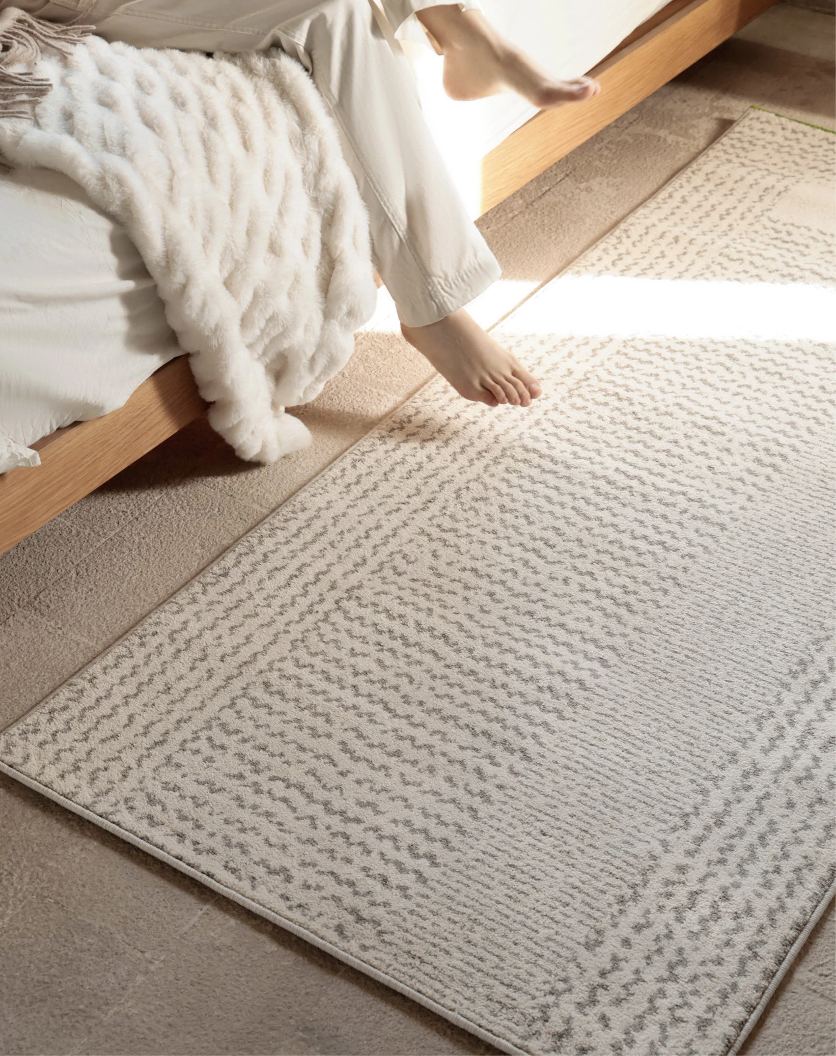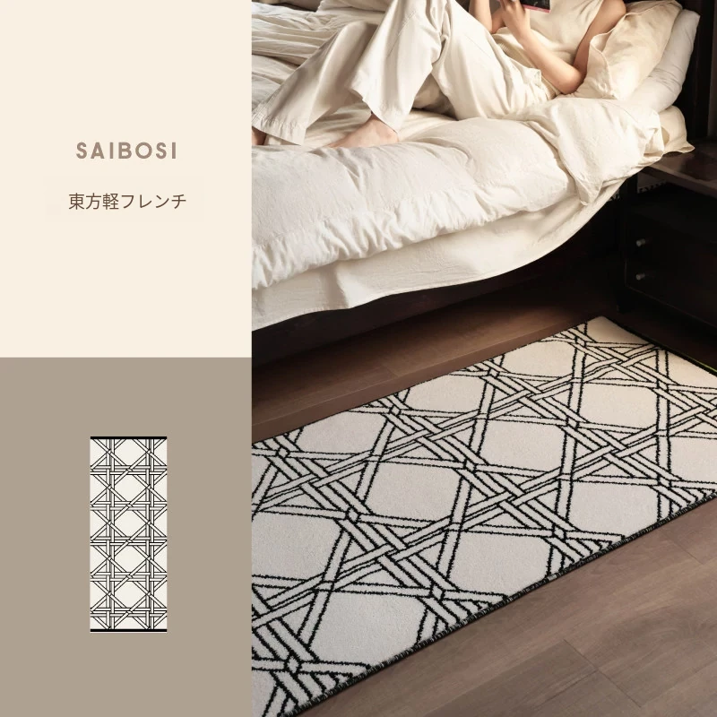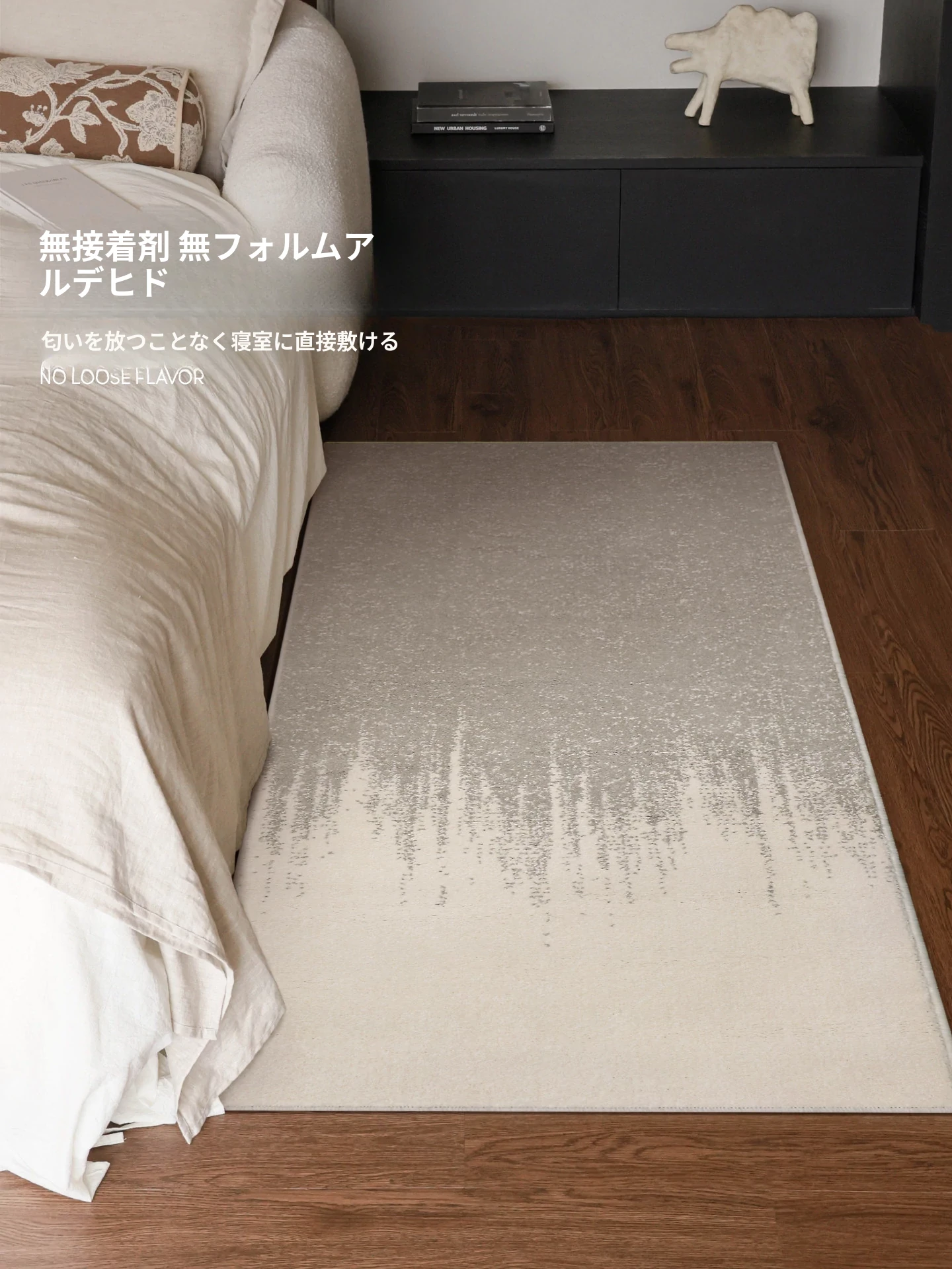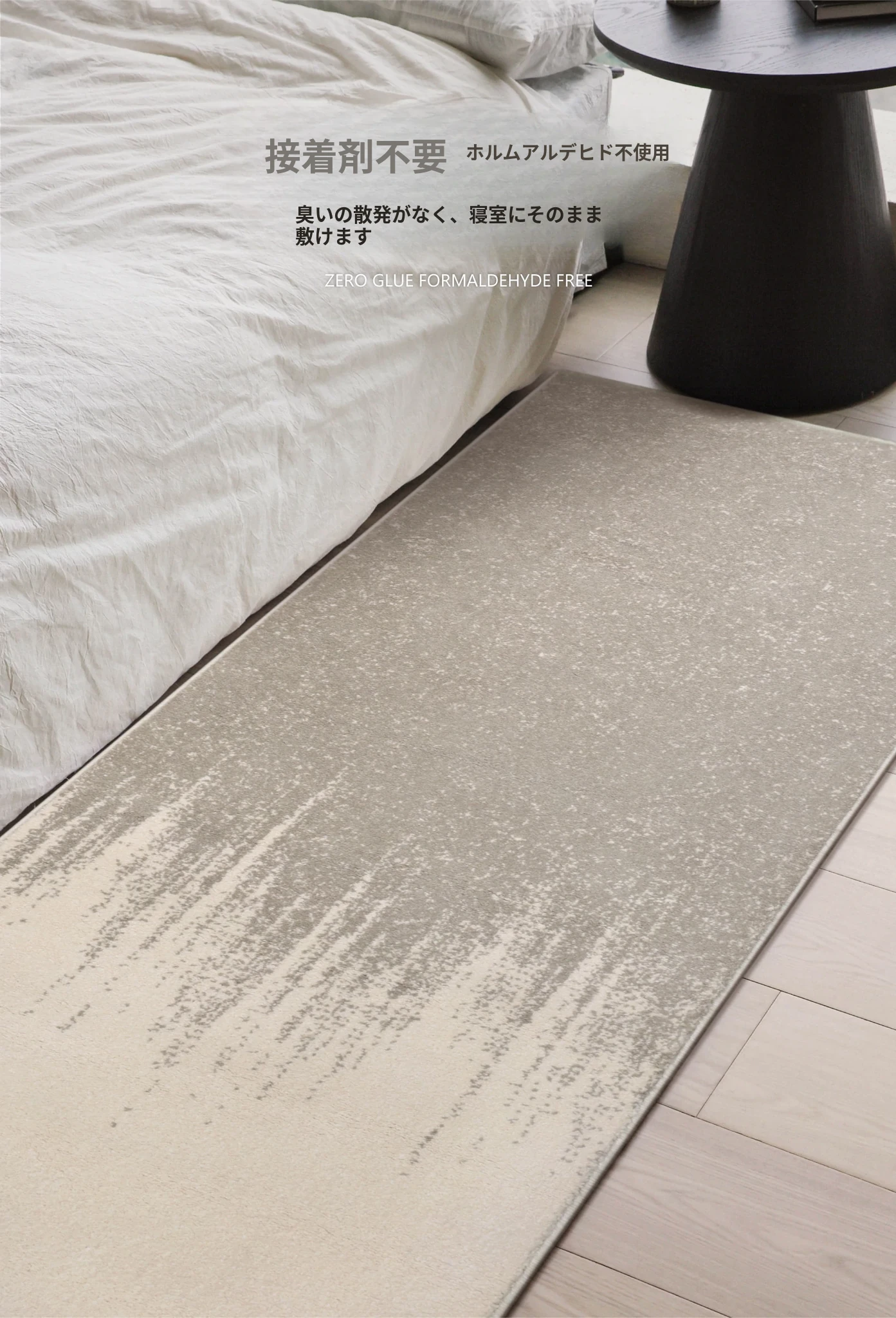 フォースフリーの無ホルムアルデヒド!接触感抜群のグラマラスなベッドサイドラグ、抗菌効果もあり、リビングや寝室にぴったりなスタイリッシュな長方形カーペットです。