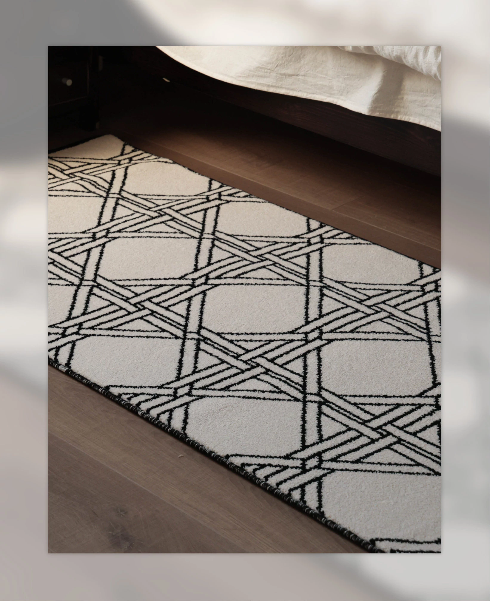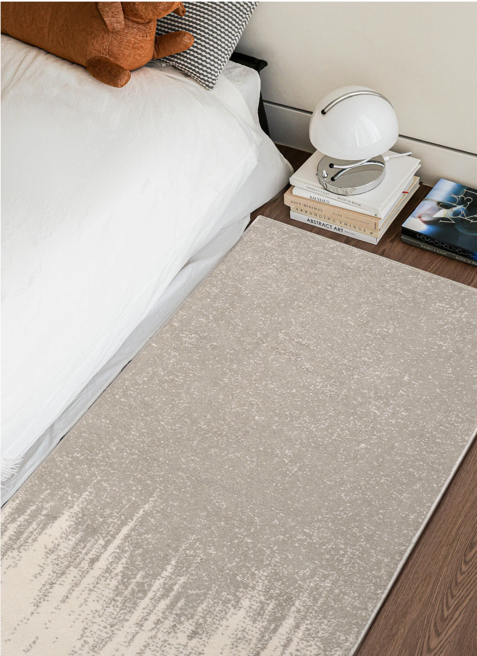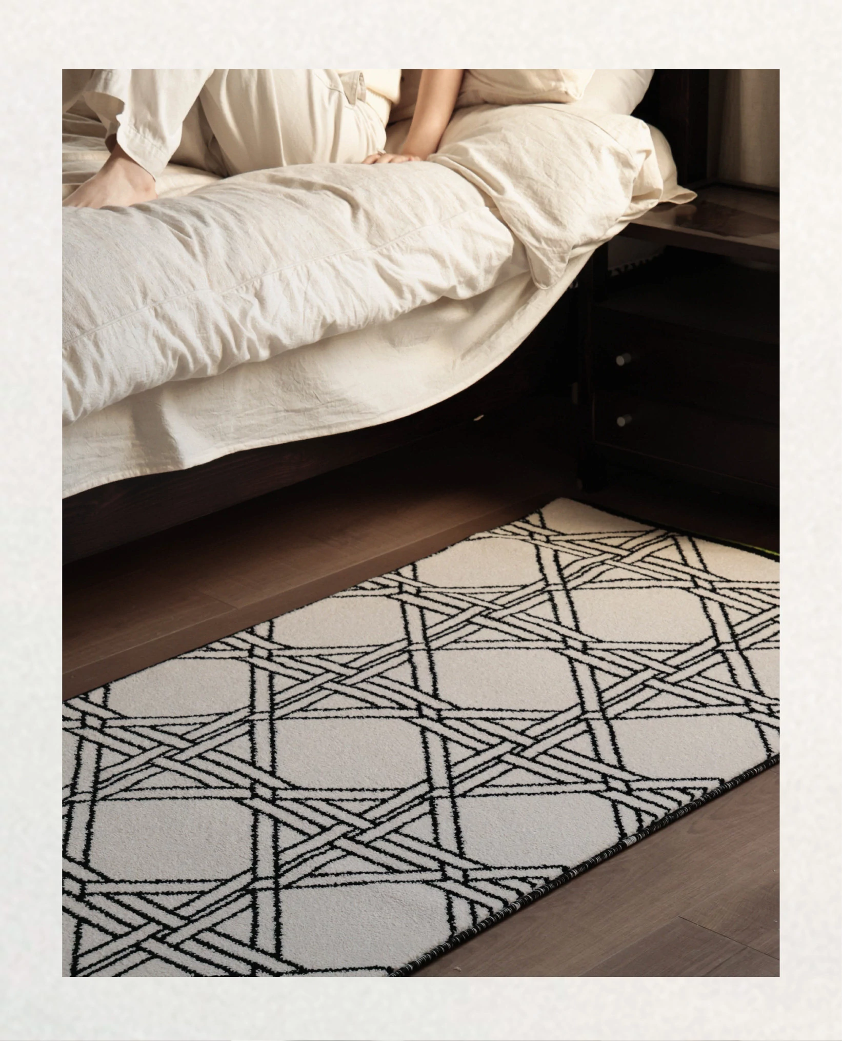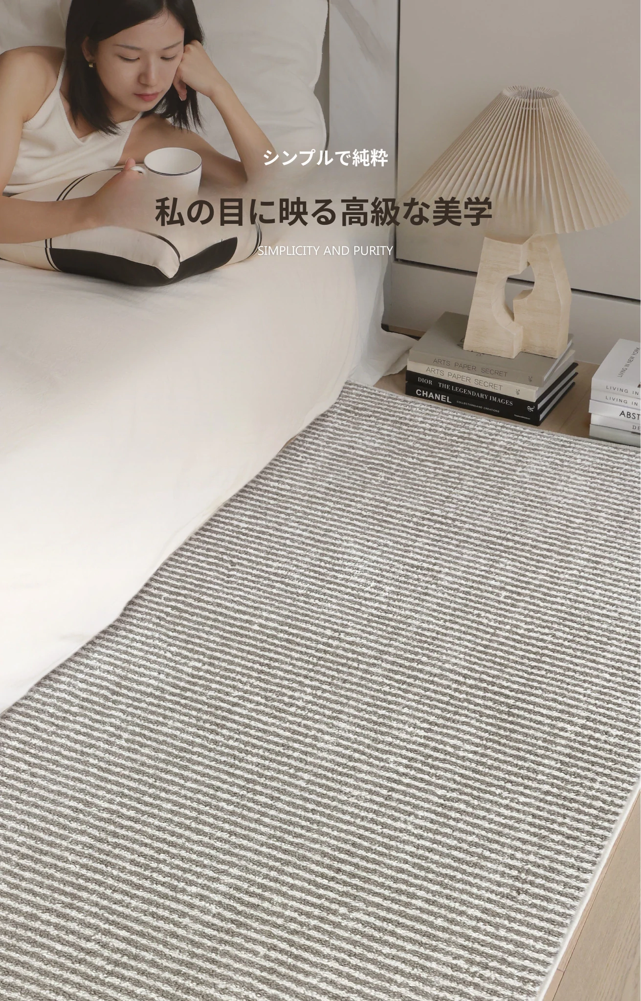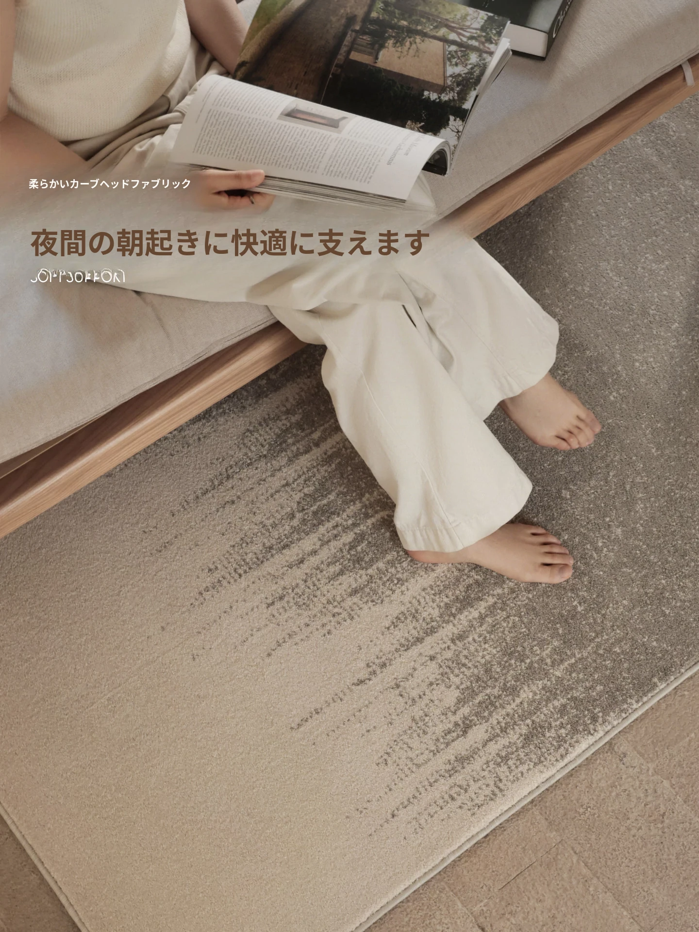 フォースフリーの無ホルムアルデヒド!接触感抜群のグラマラスなベッドサイドラグ、抗菌効果もあり、リビングや寝室にぴったりなスタイリッシュな長方形カーペットです。