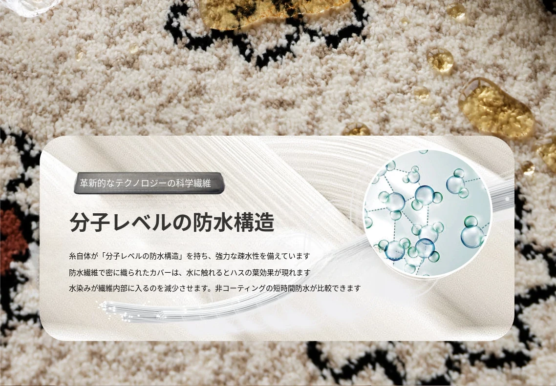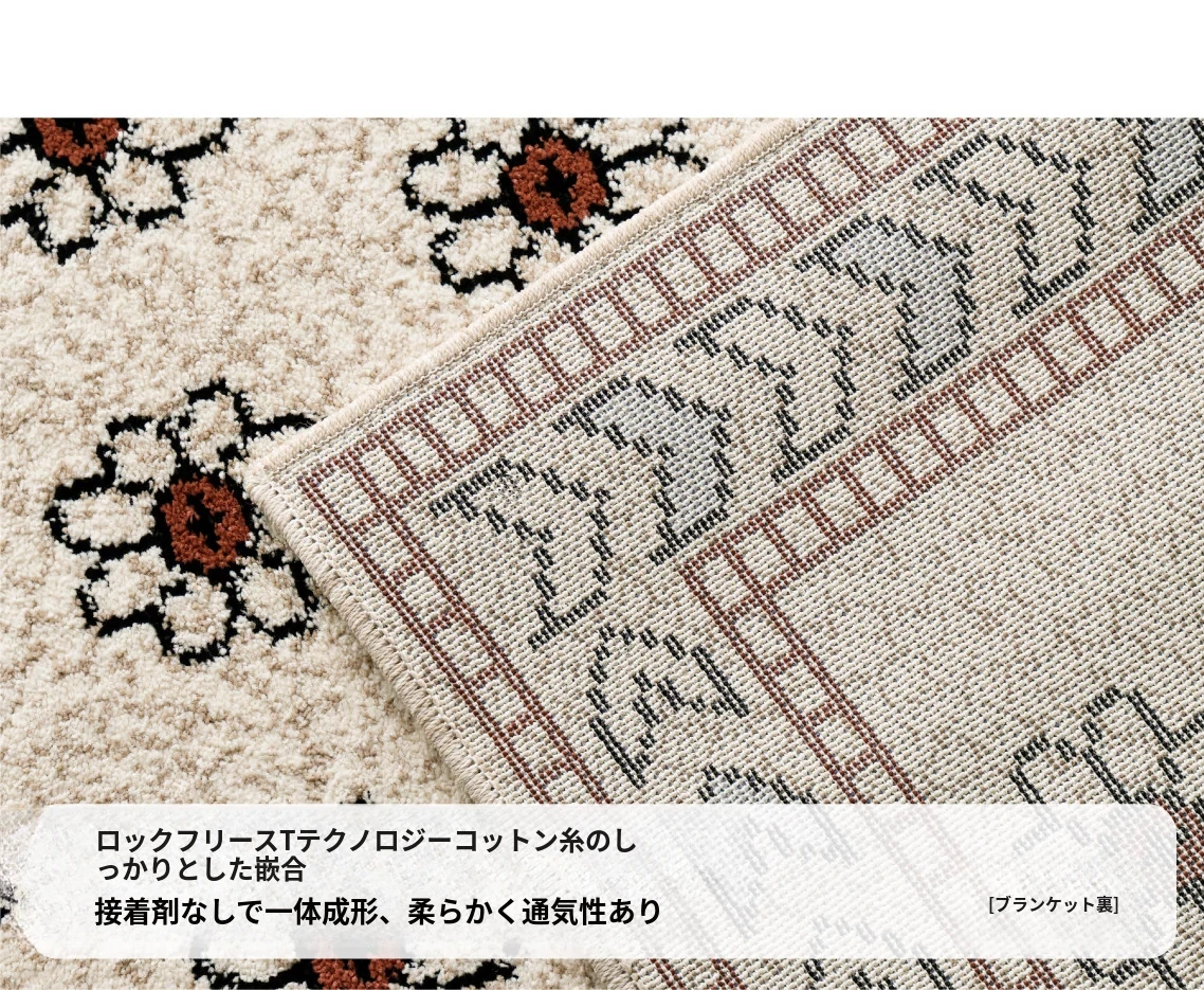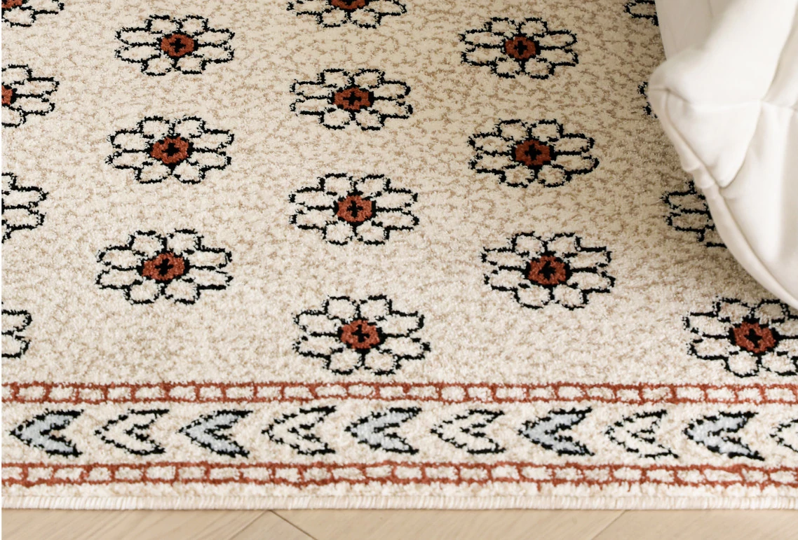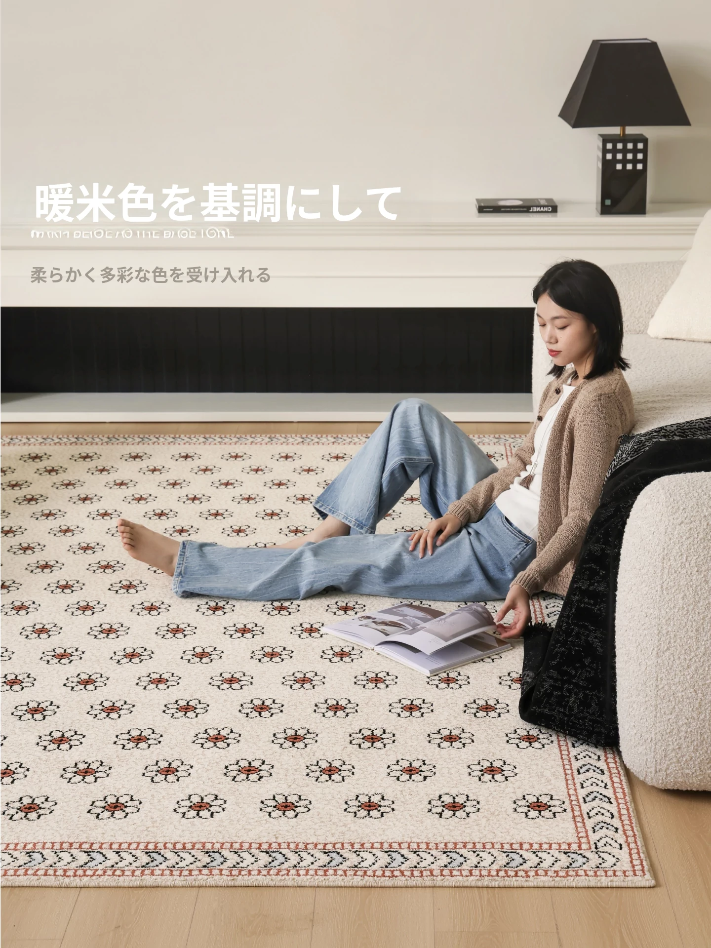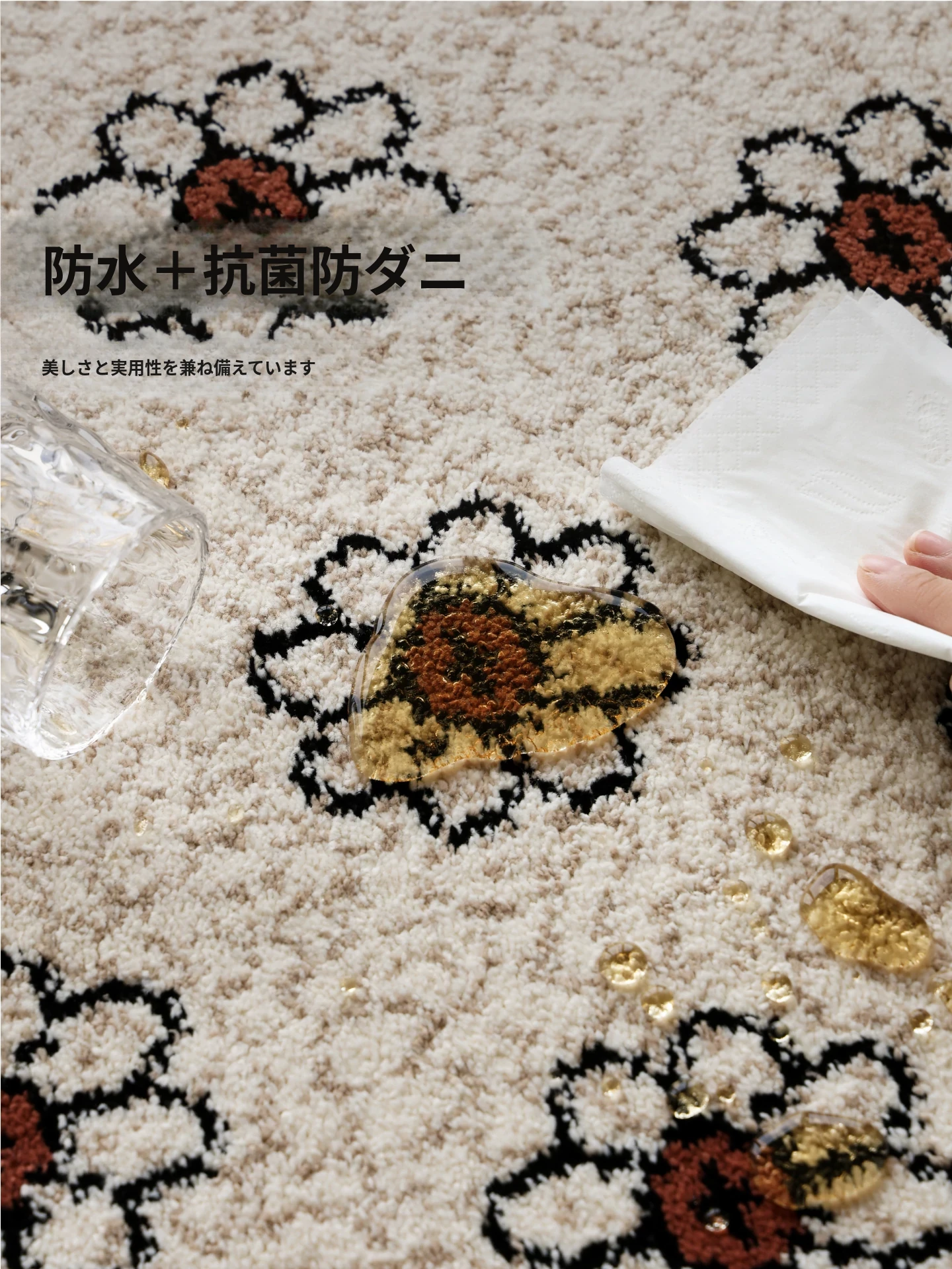 セイボスフラワーの無接着防水ラグ - モダンアメリカンスタイルのリビング&寝室にぴったり!上質な軽フレンチテイストで高級感を演出。