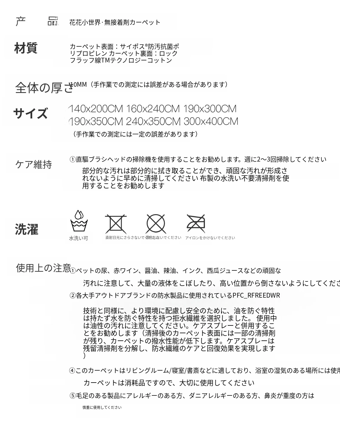 花花小世界・接着剤不使用のカーペット