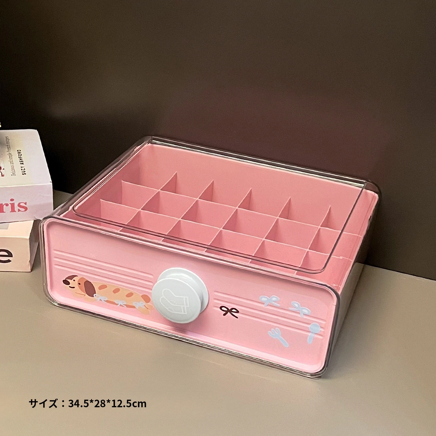 【24格-靴下ボックス】ピンク+パン犬ステッカー