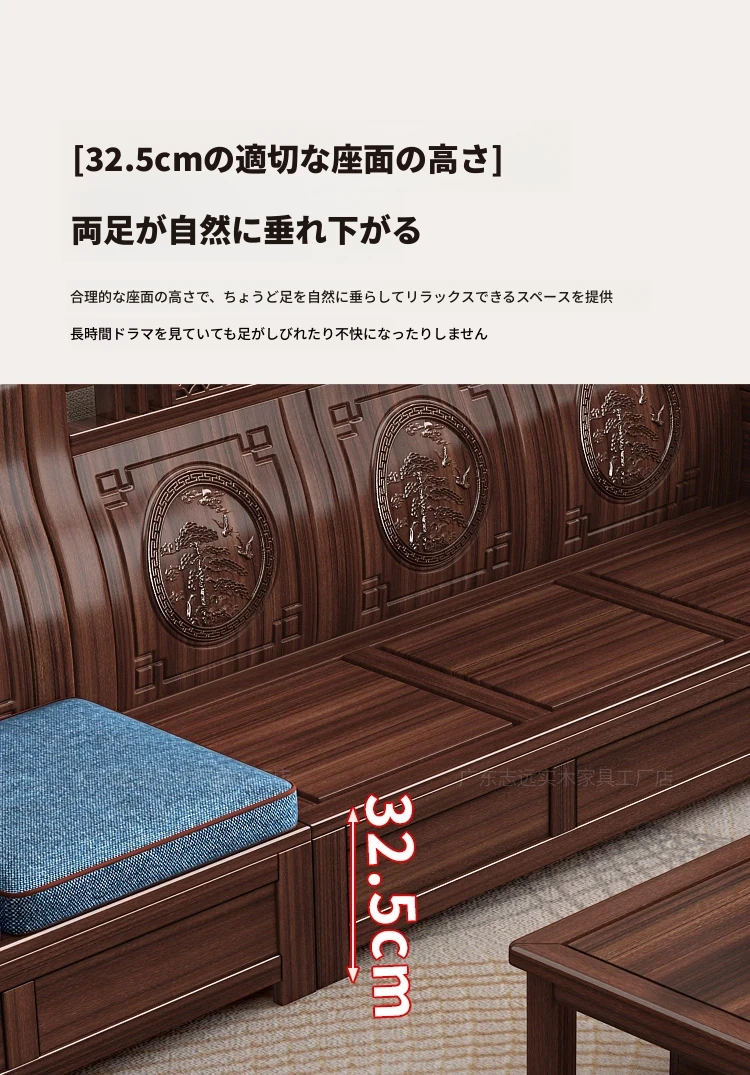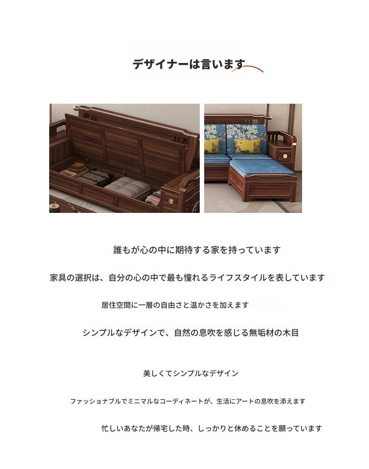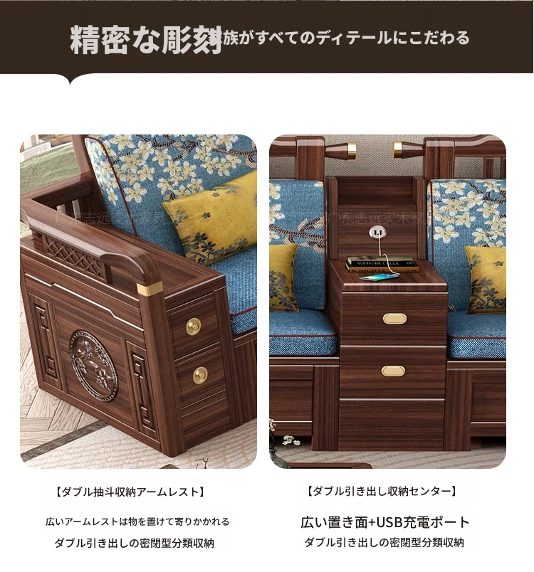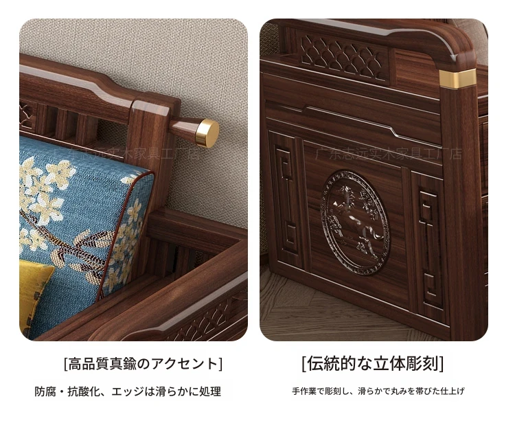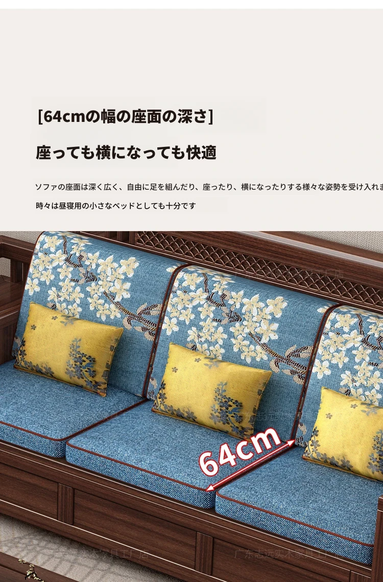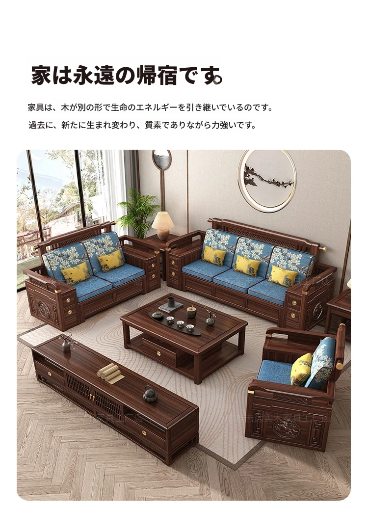 黒ウォールナット無垢材ソファ|全無垢・コーナー付き・デザイン性抜群|冬夏兼用・収納機能付き|新中式スタイルのリビングソファで、優雅な空間を演出!