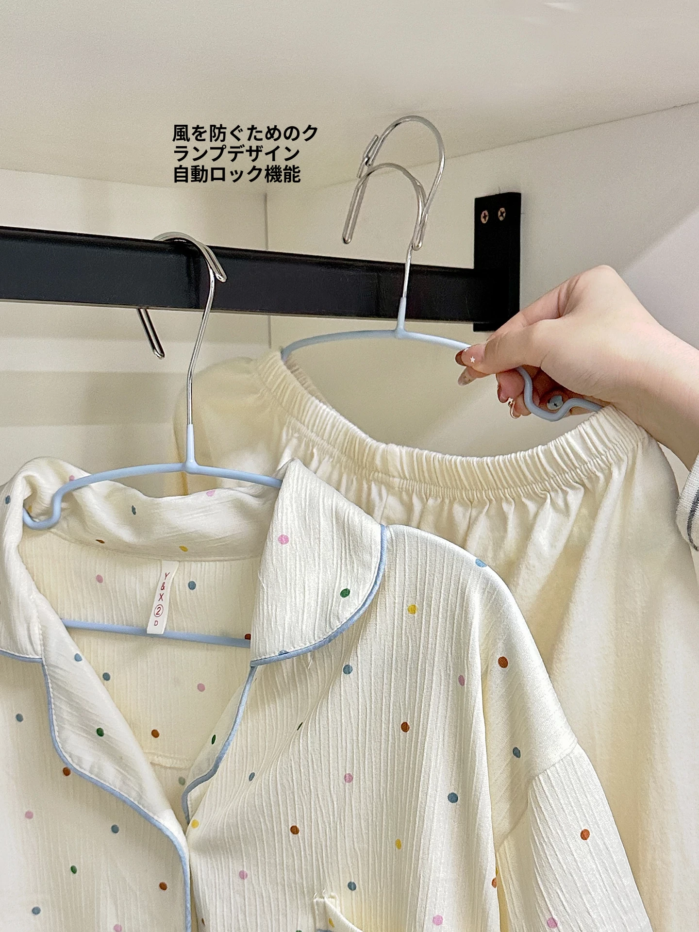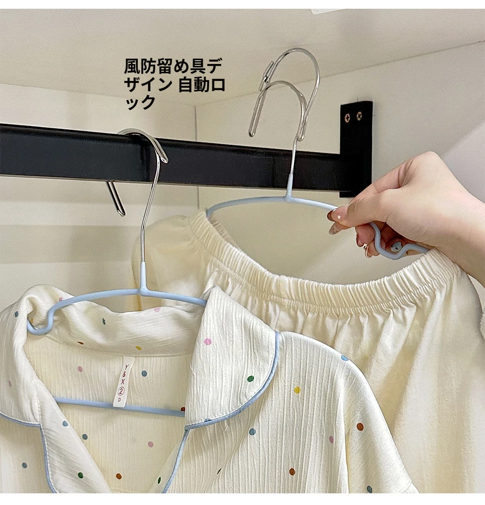 風を防ぐ!不锈鋼製自動クリンチ付き衣類ハンガー - 洗濯物が落ちない、安心の宿舎・家庭用ハンガー!