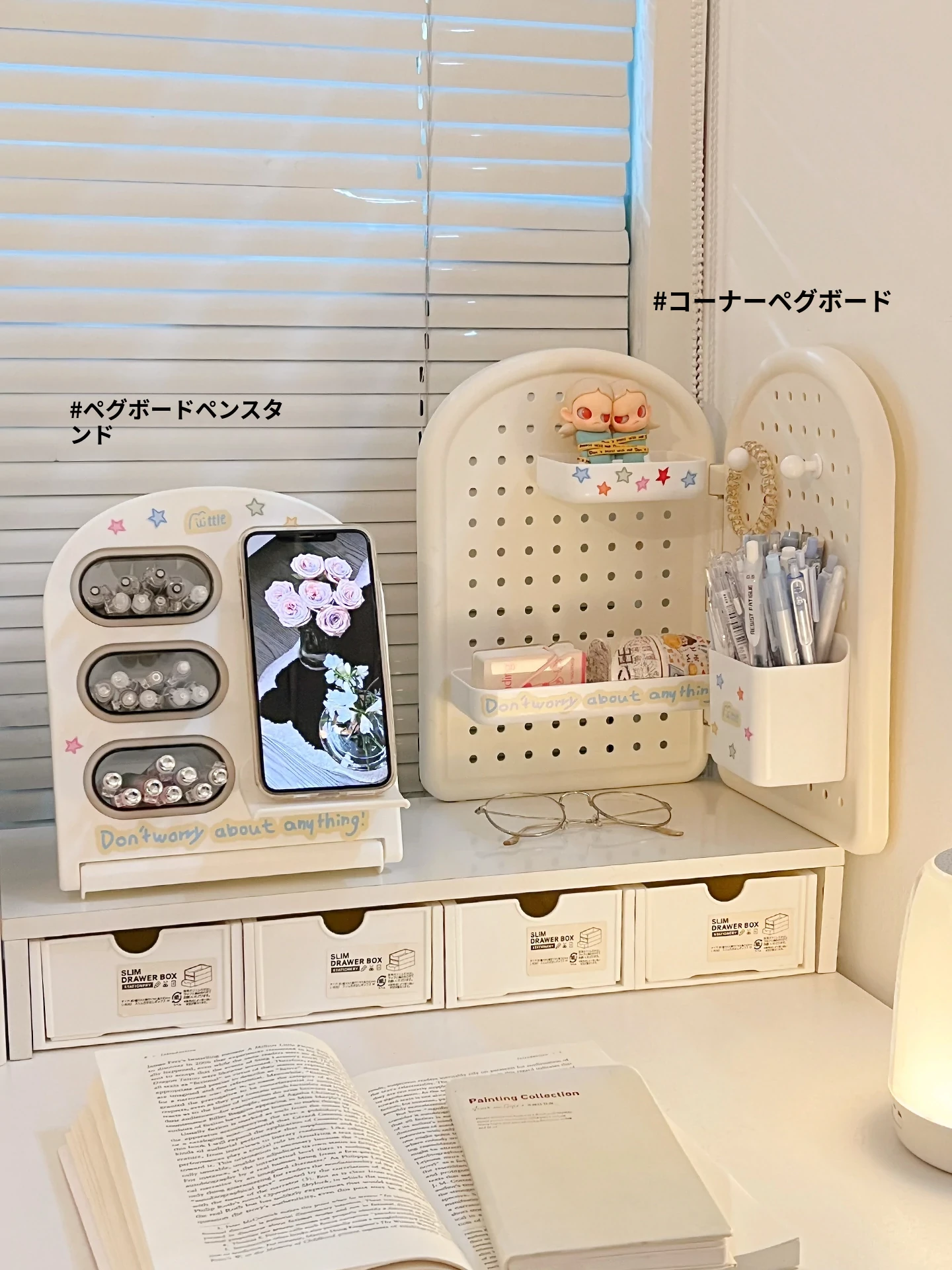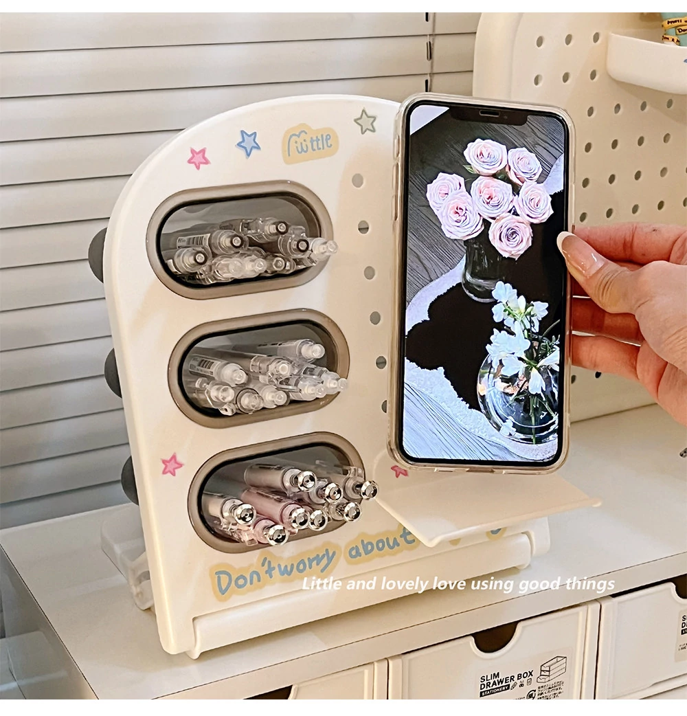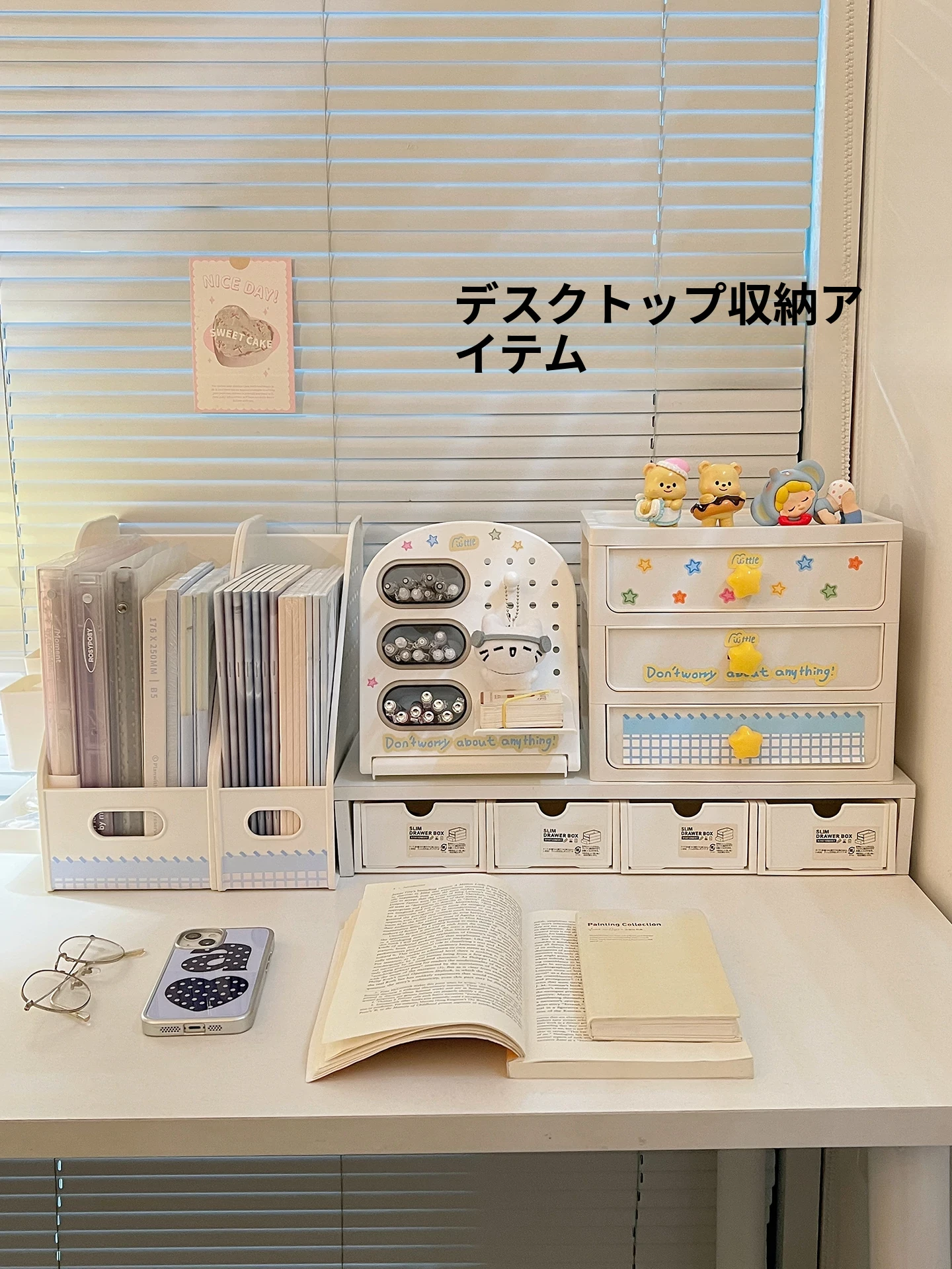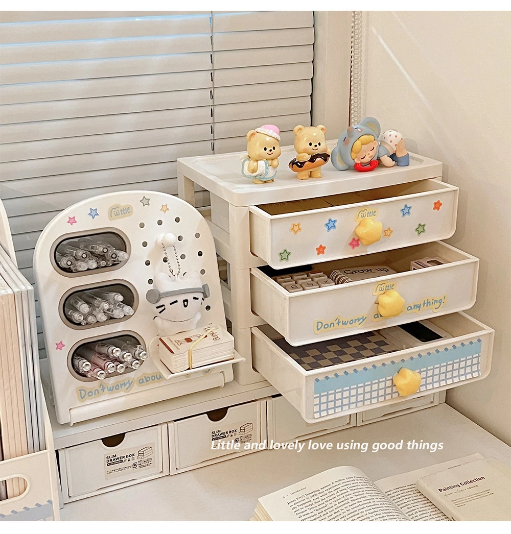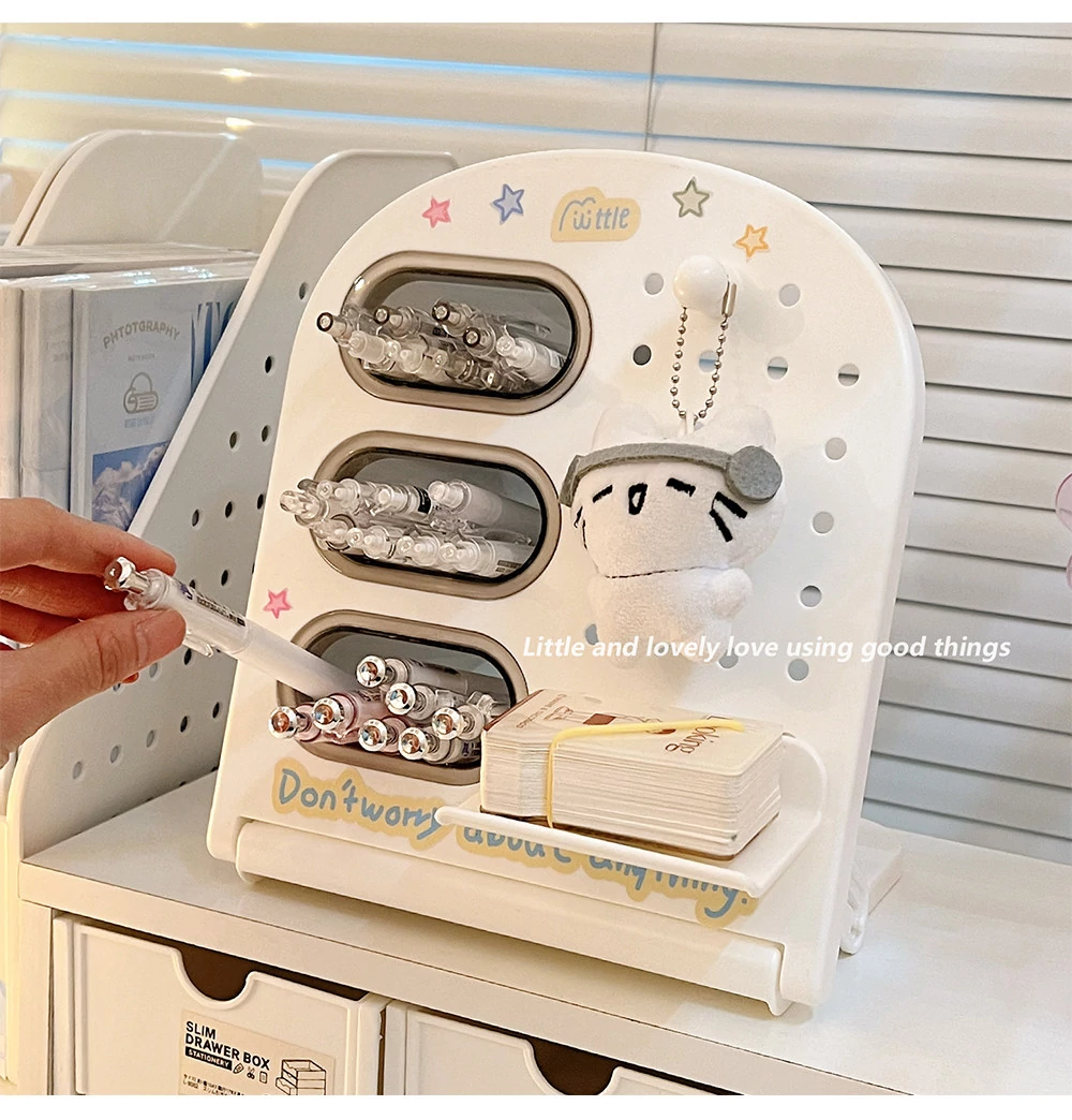学生寮に最適!デスク上の収納ボックスセット - 書類や文具を整頓できるスタイリッシュなデザイン。引き出しや机上での斜め挿しが可能な仕切り付きペン立てで、オフィスや学習スペースをスッキリ整理!
