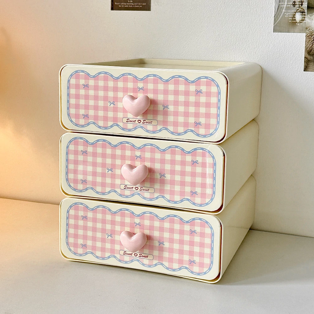 ピンク【収納ボックス3段+ペン立て*2】