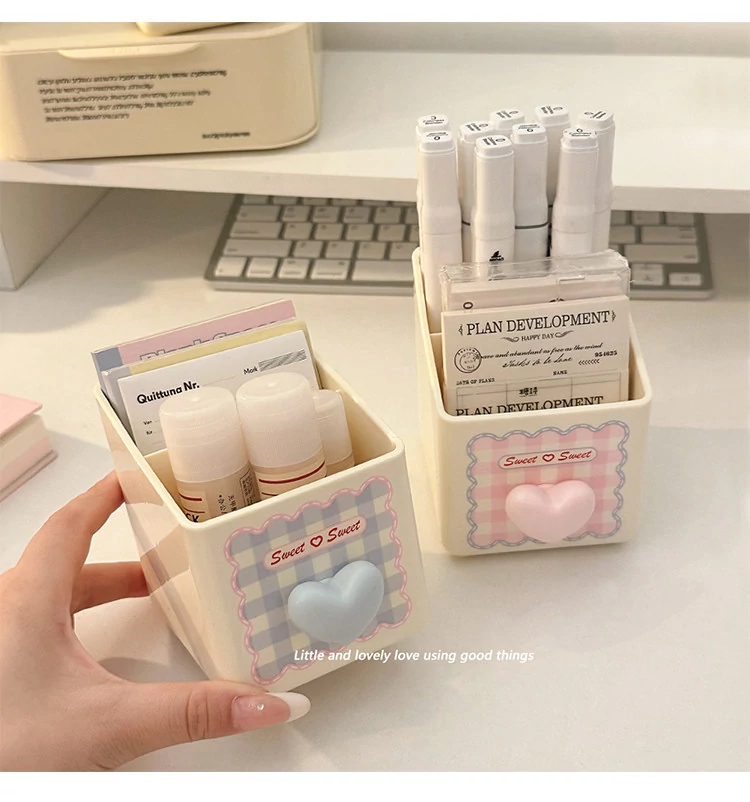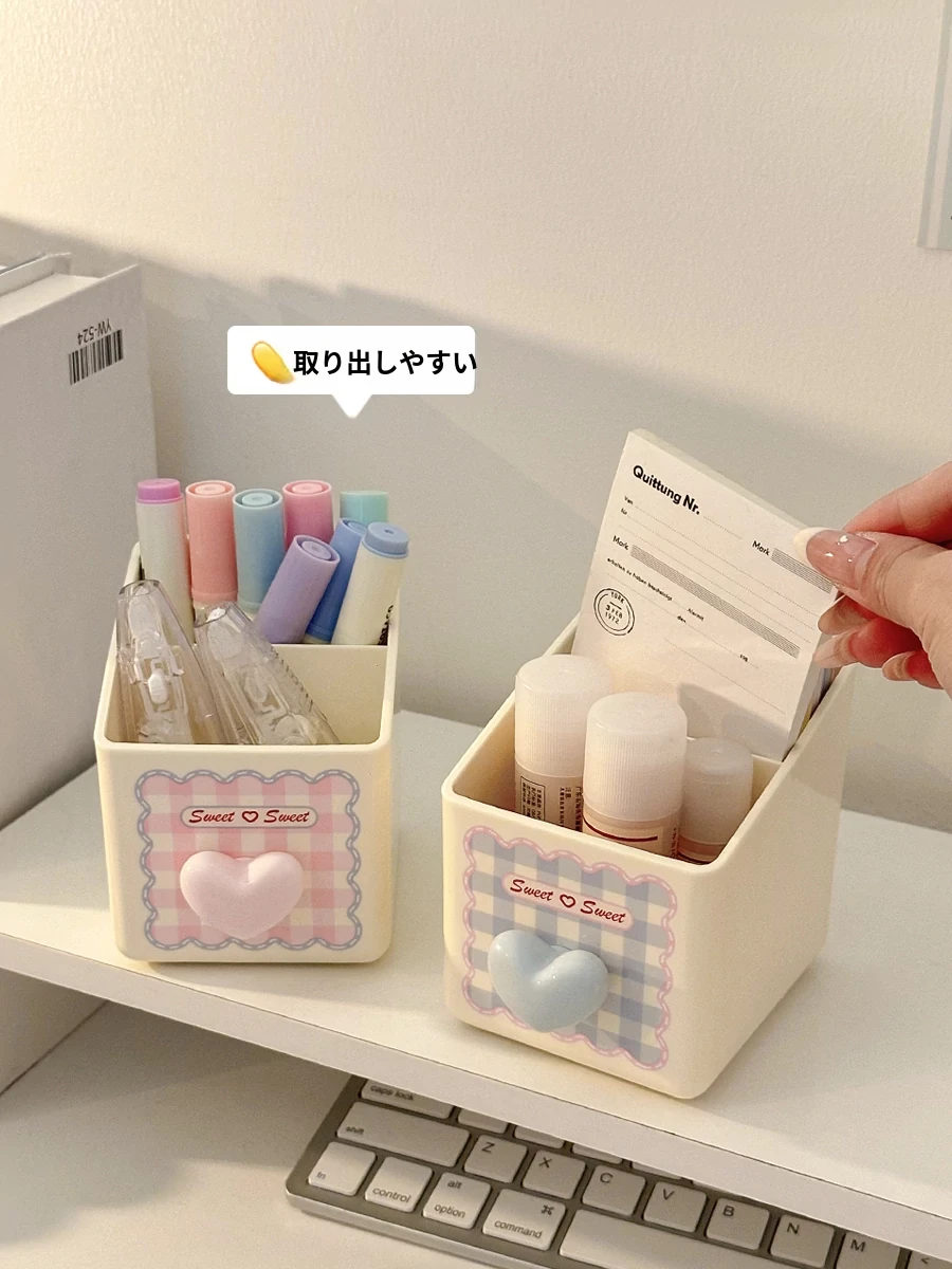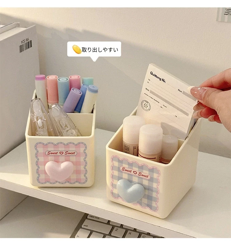 ペン立て-ハート型ピンク+シール