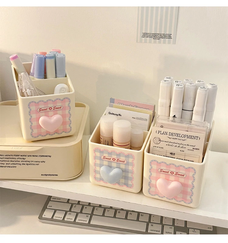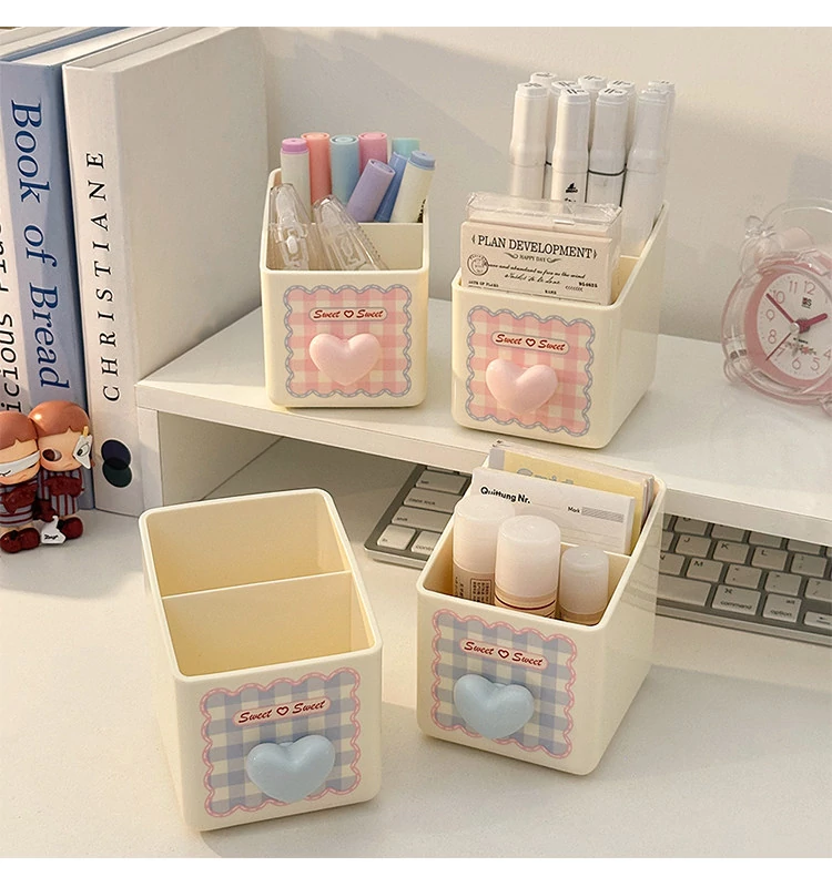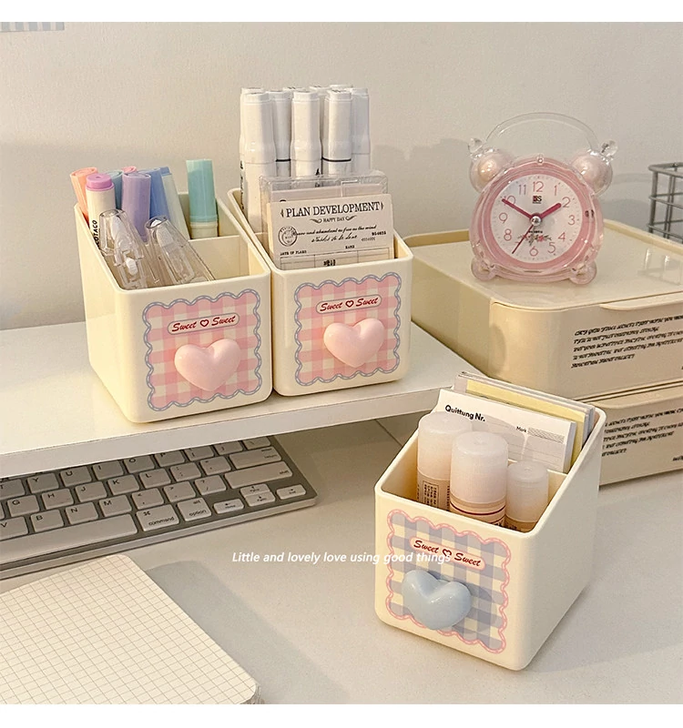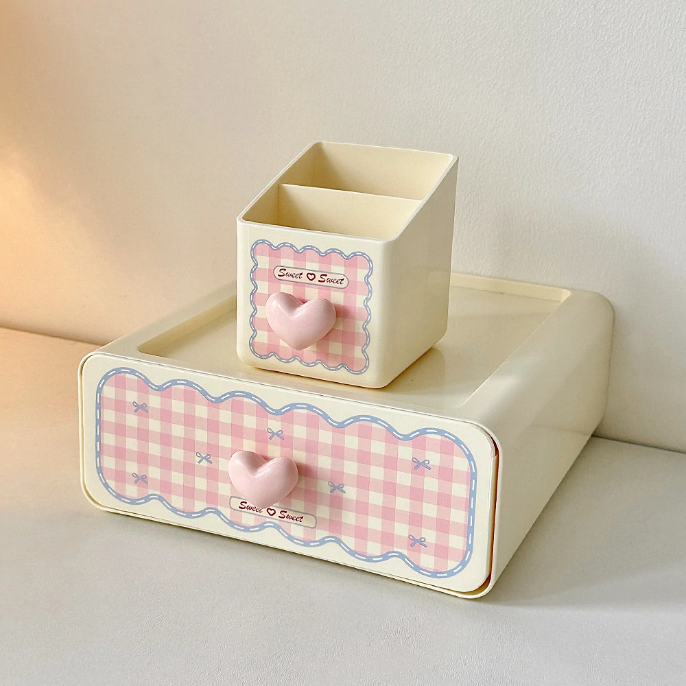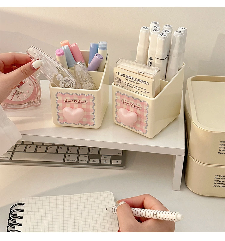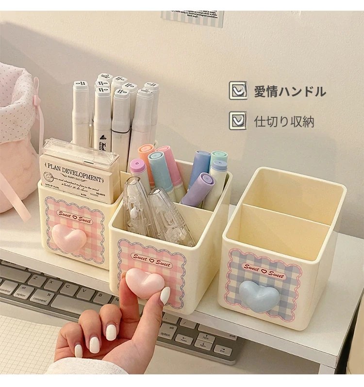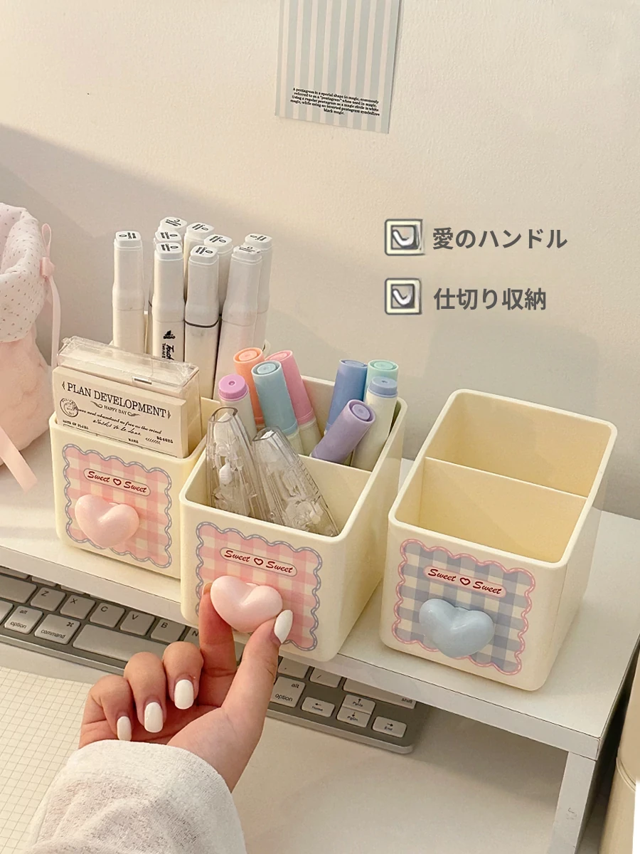 ピンク【収納ボックス1段+ペン立て*1】