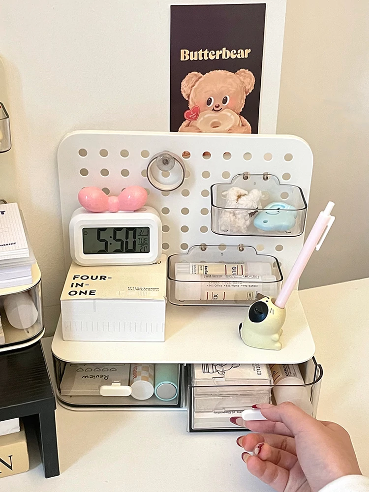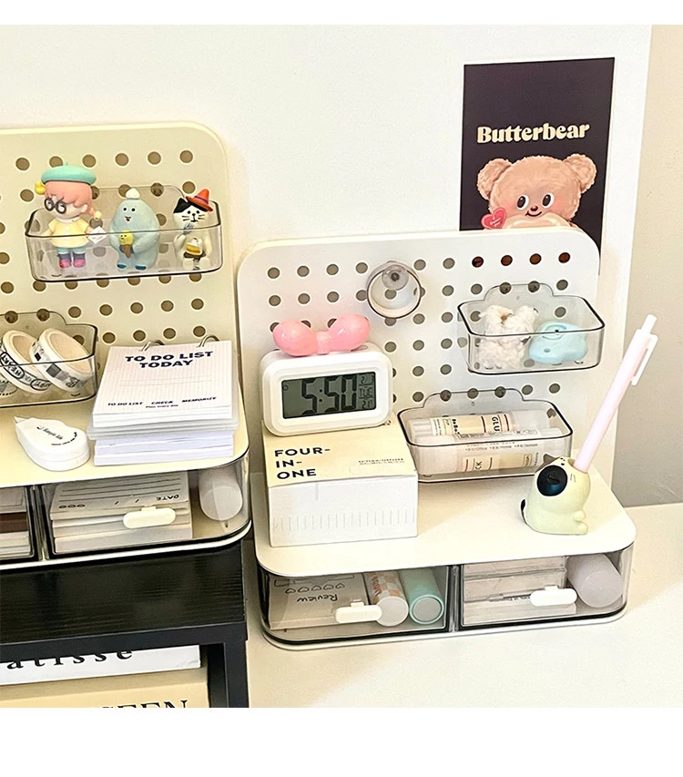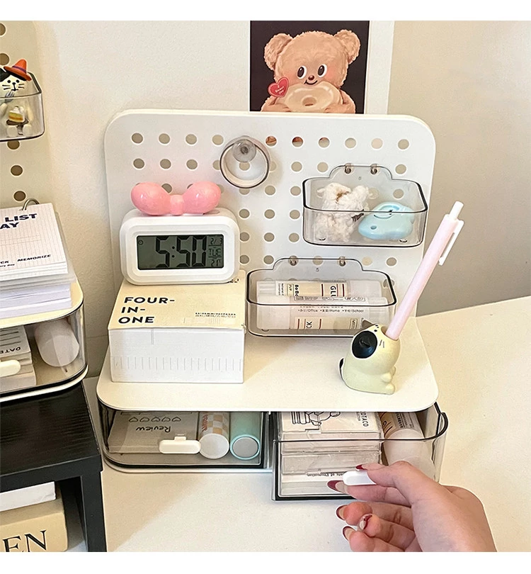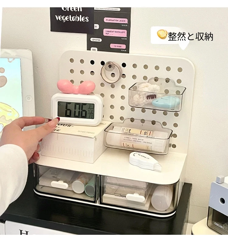 デスク収納ボックス 抽斗式オーガナイザー オフィスで活躍する便利アイテム! デスク周りをスッキリ整理できる穴あき板デザインの魔法のような収納ソリューション!