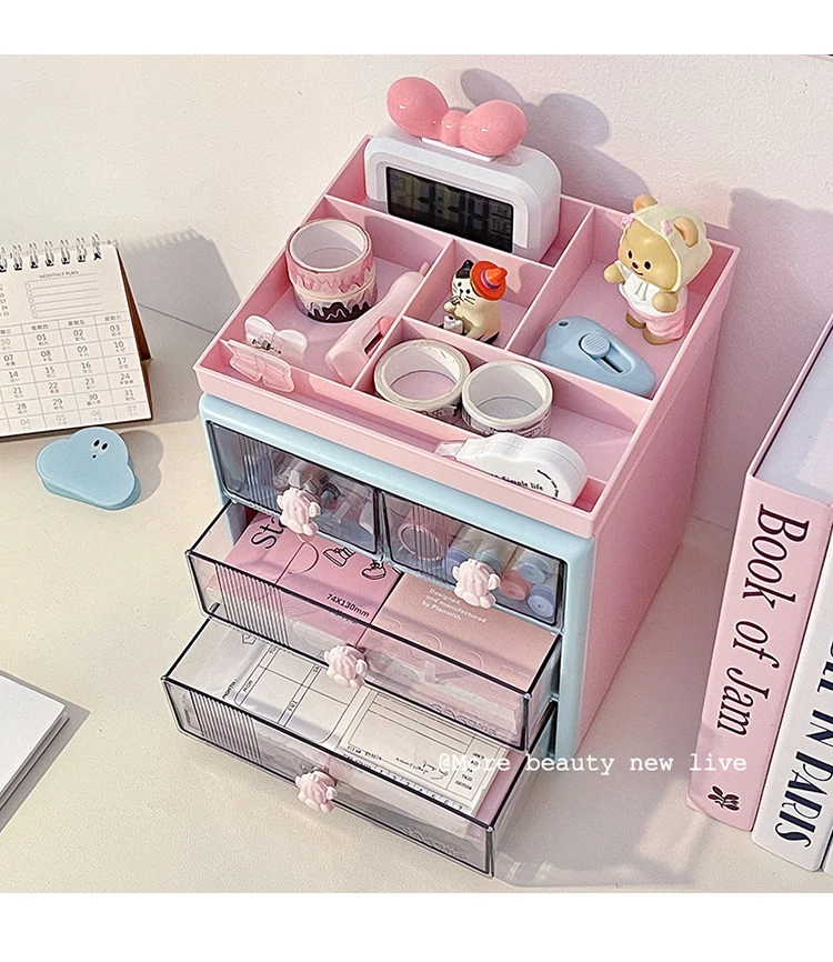 インスタ風デスク収納ボックス 多層仕切り付き 引き出しタイプ オフィスデスク上の小物整理 学生文房具スタンド おしゃれで機能的な収納アイテム!デスクをスッキリ整頓して、作業効率をアップさせましょう!