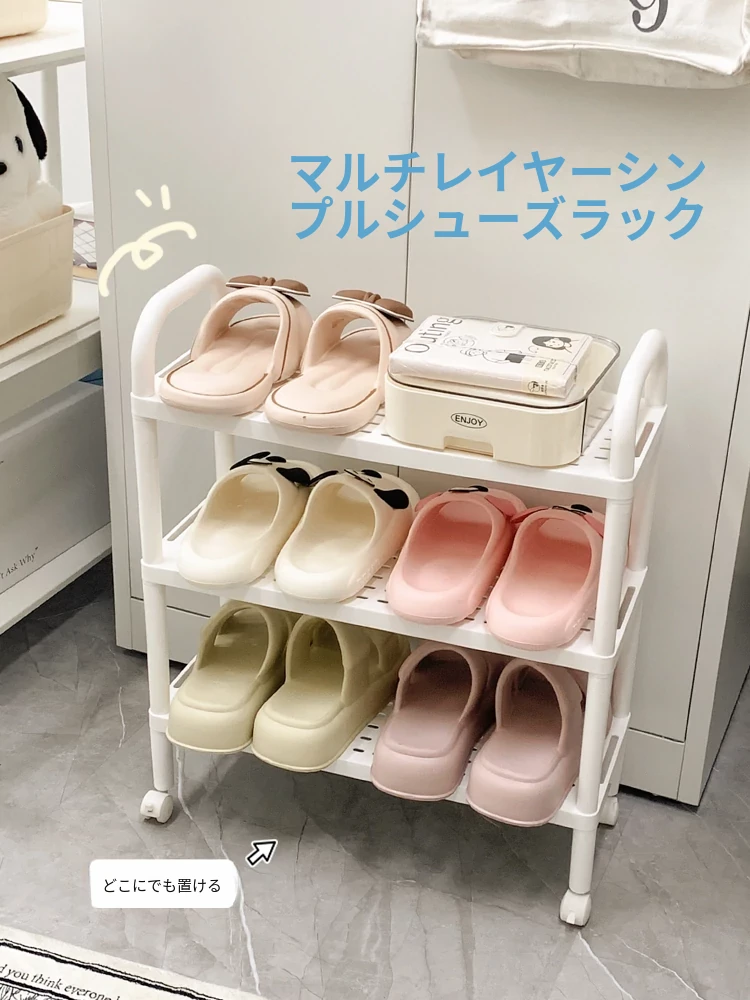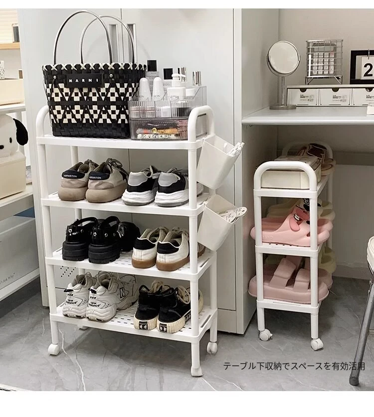 玄関用シューズラック - おしゃれで機能的な多層収納棚!寮や家庭に最適、デスク下にもぴったりな靴収納で、スッキリとした空間を実現。お部屋を美しく整理整頓しましょう!