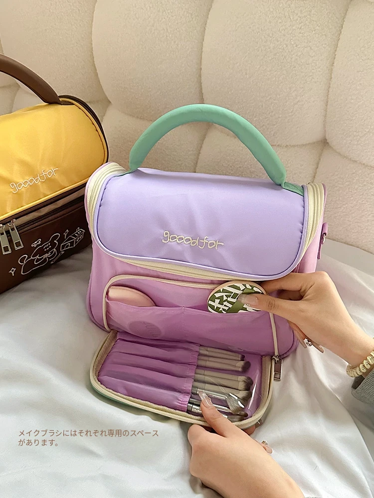 高級感漂う女性用手提げ化粧ポーチ - 大容量・分層収納で旅や洗面に最適!持ち運び便利なデザインで、あなたの美をサポートします。