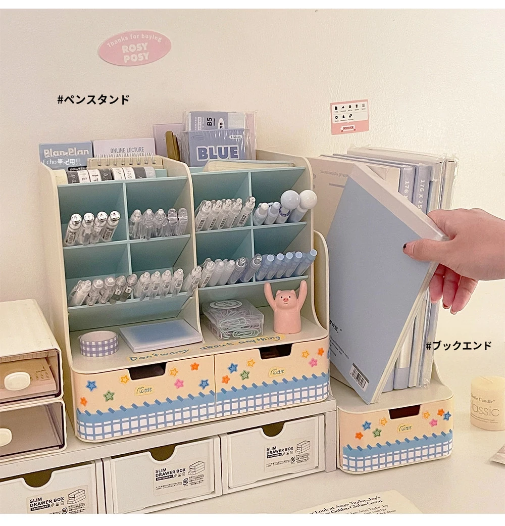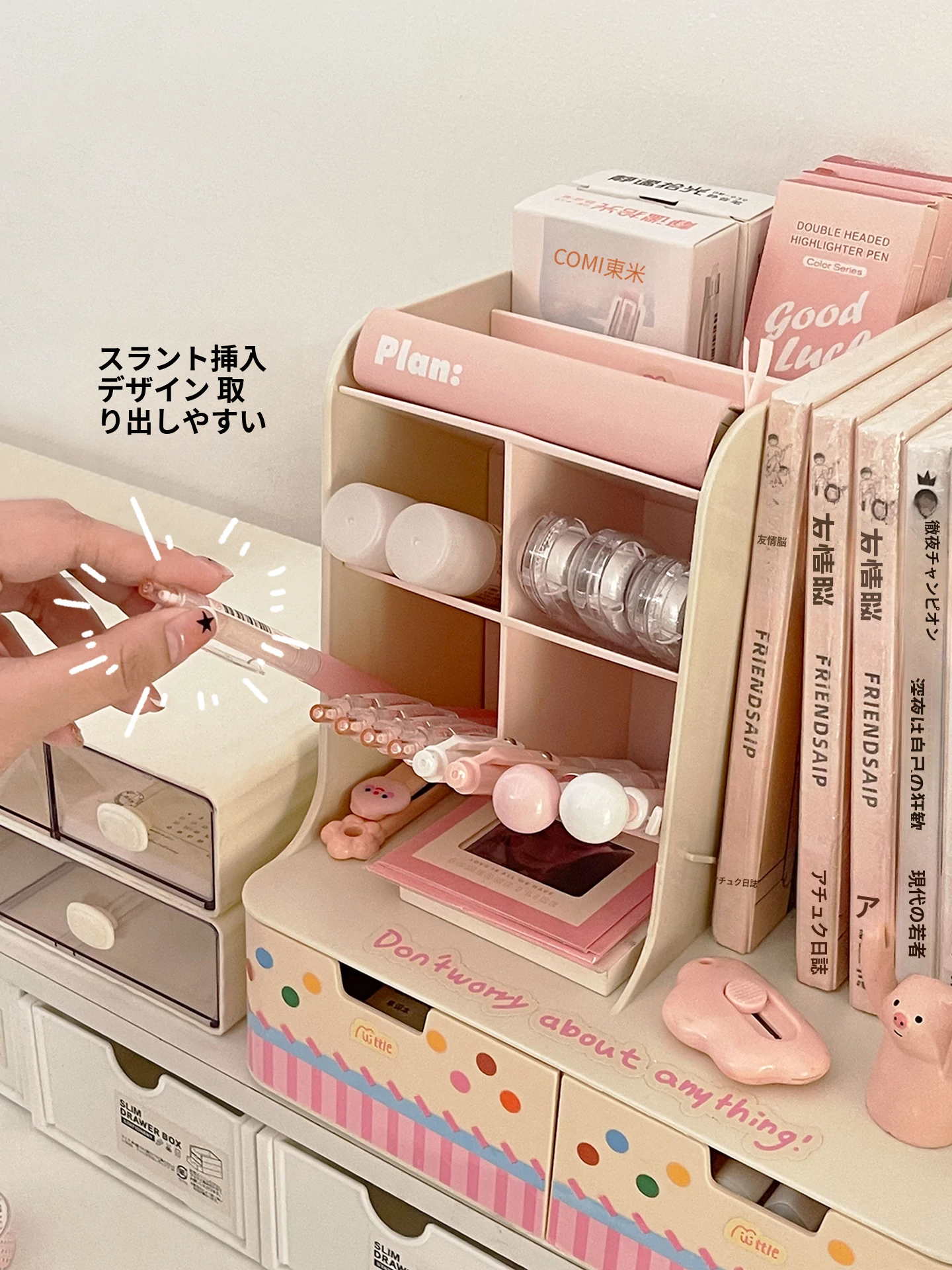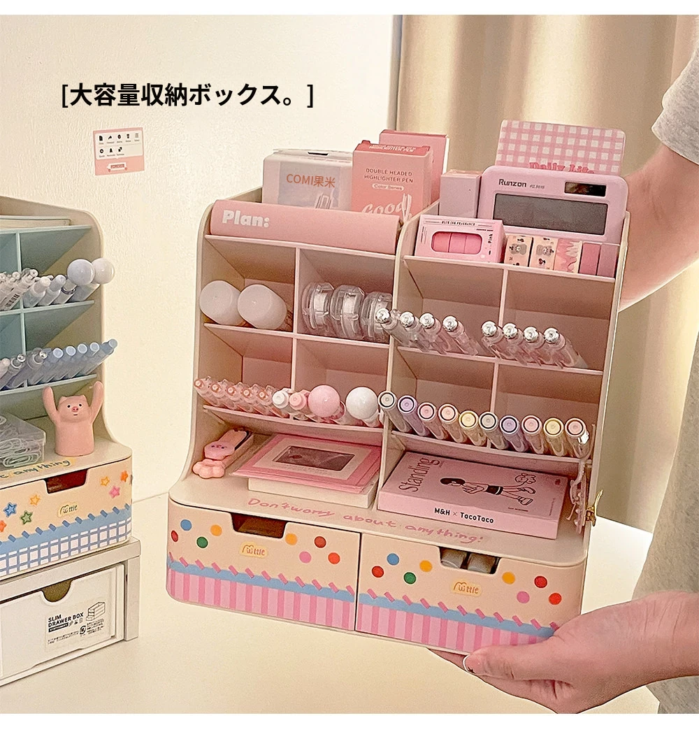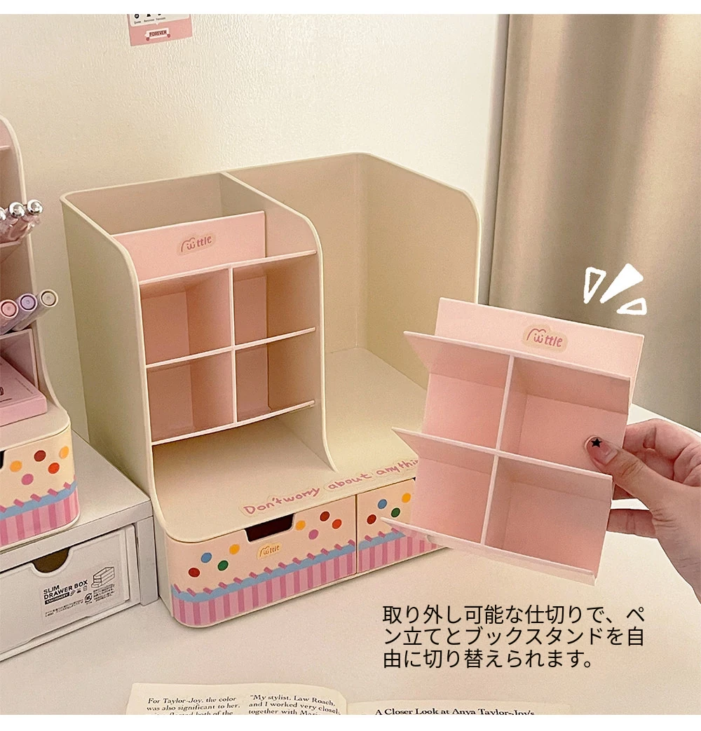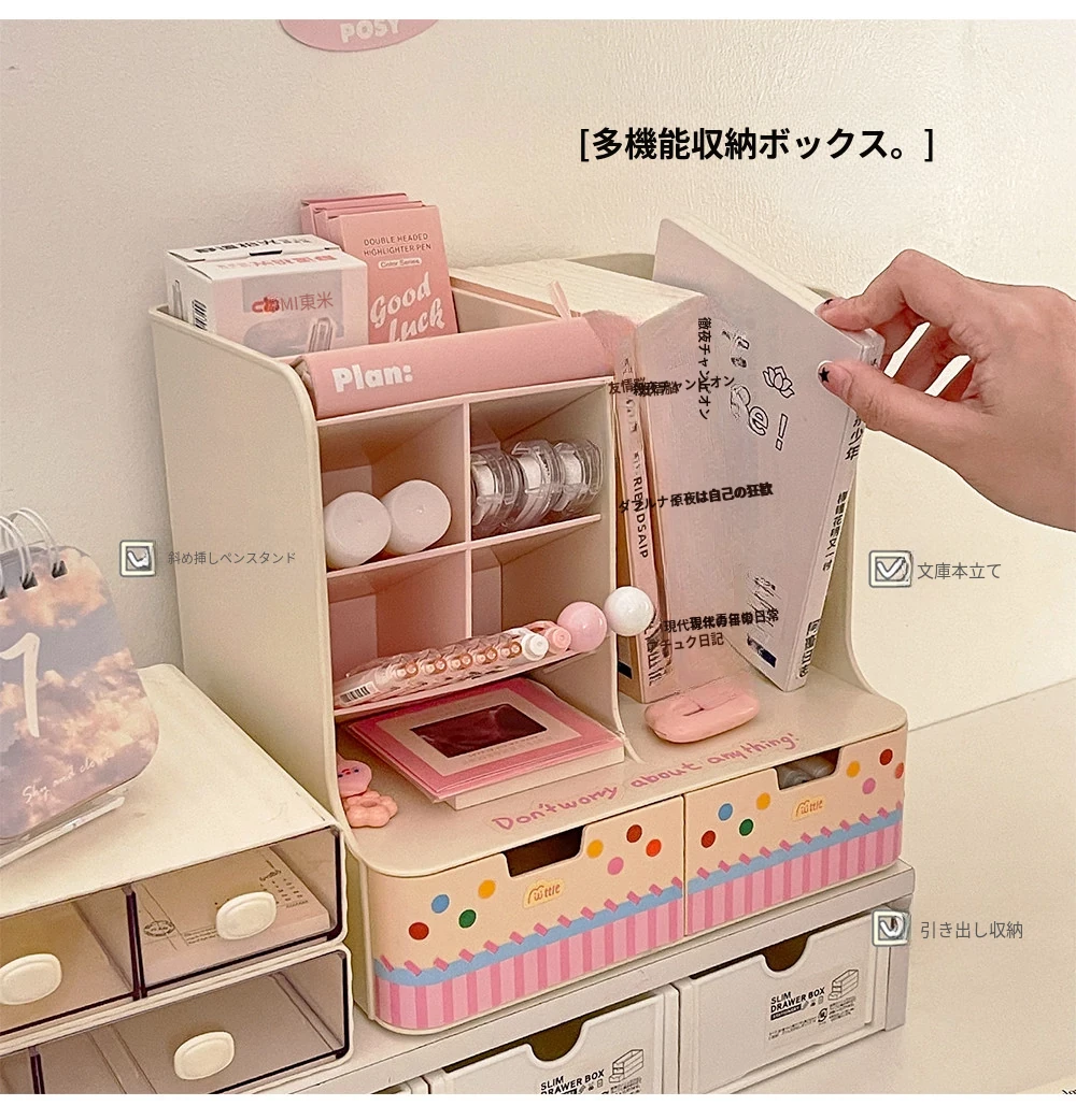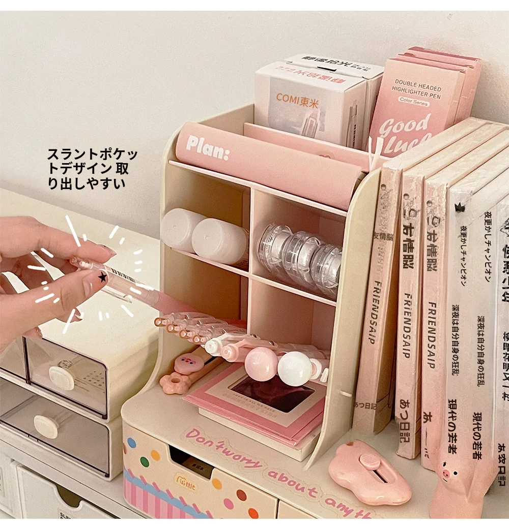 斜め差し式ペンスタンドデスク収納ボックス|本立て・デスク周りの小物整理に最適!オフィスデスクの引き出しをスッキリ整頓する仕切り付き収納ラック