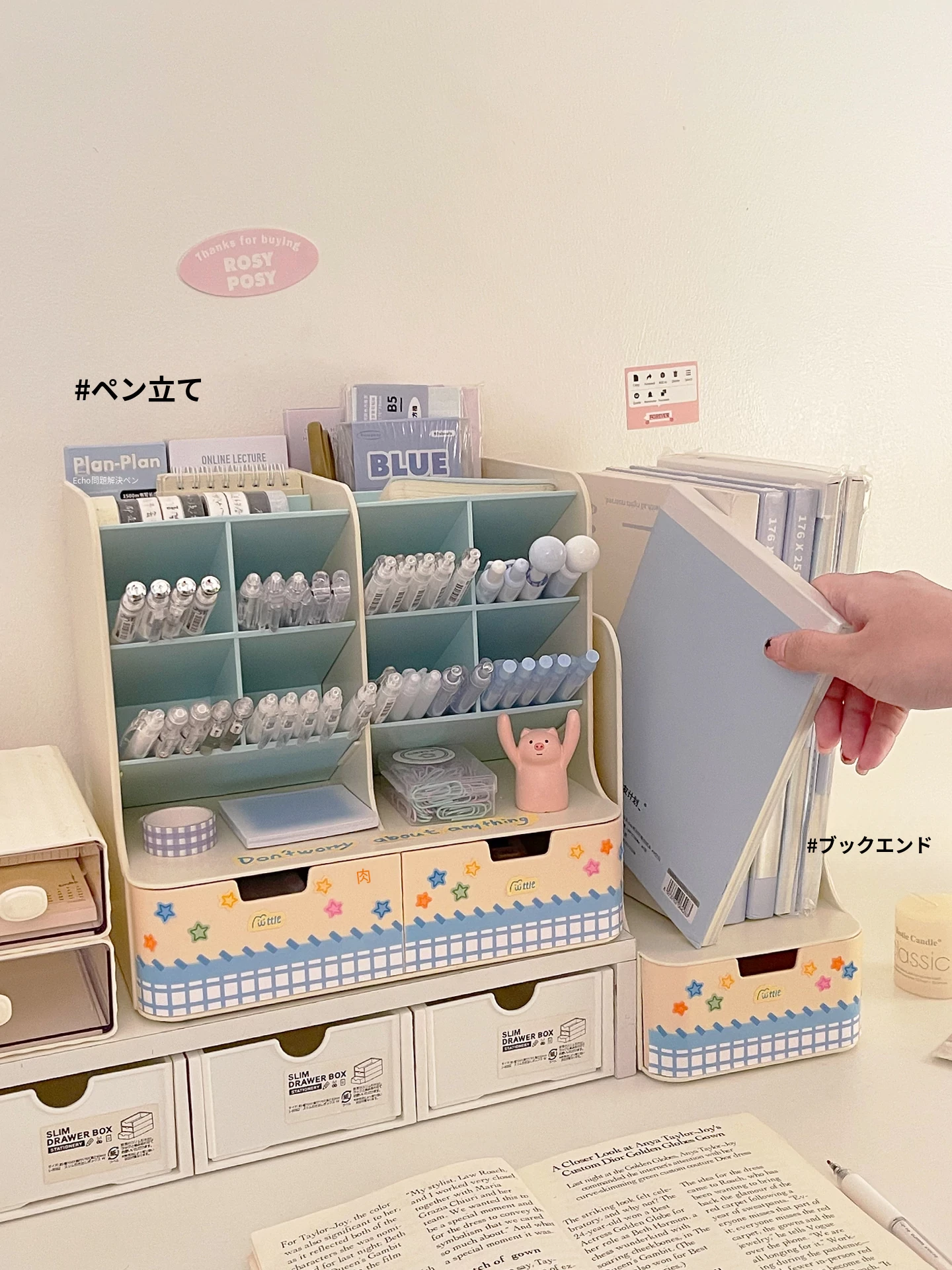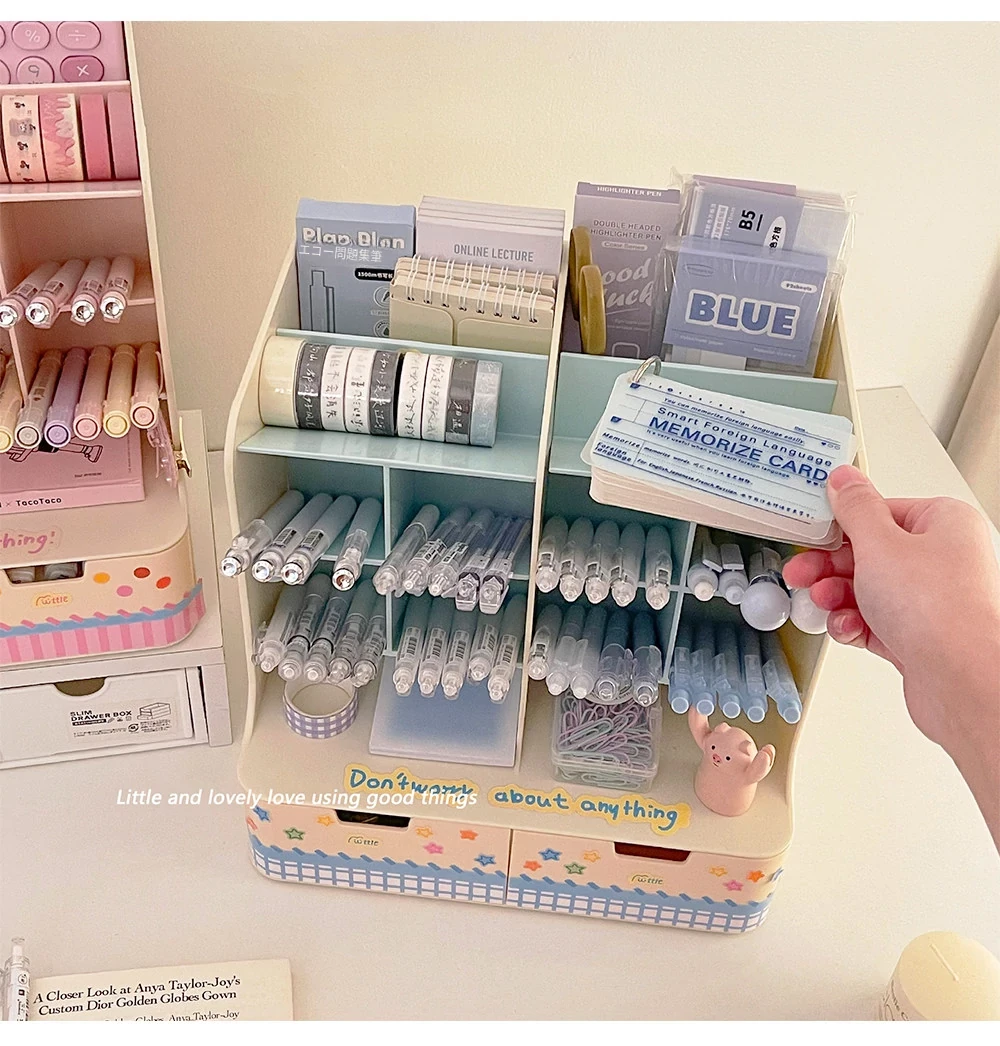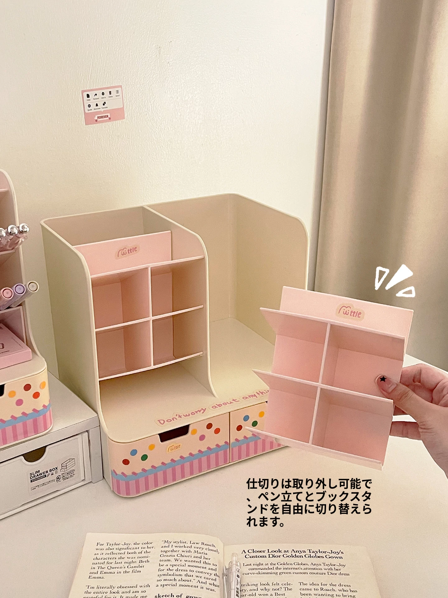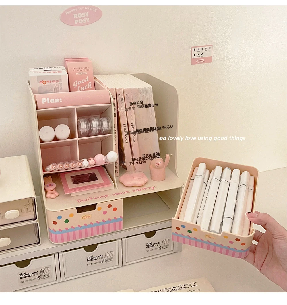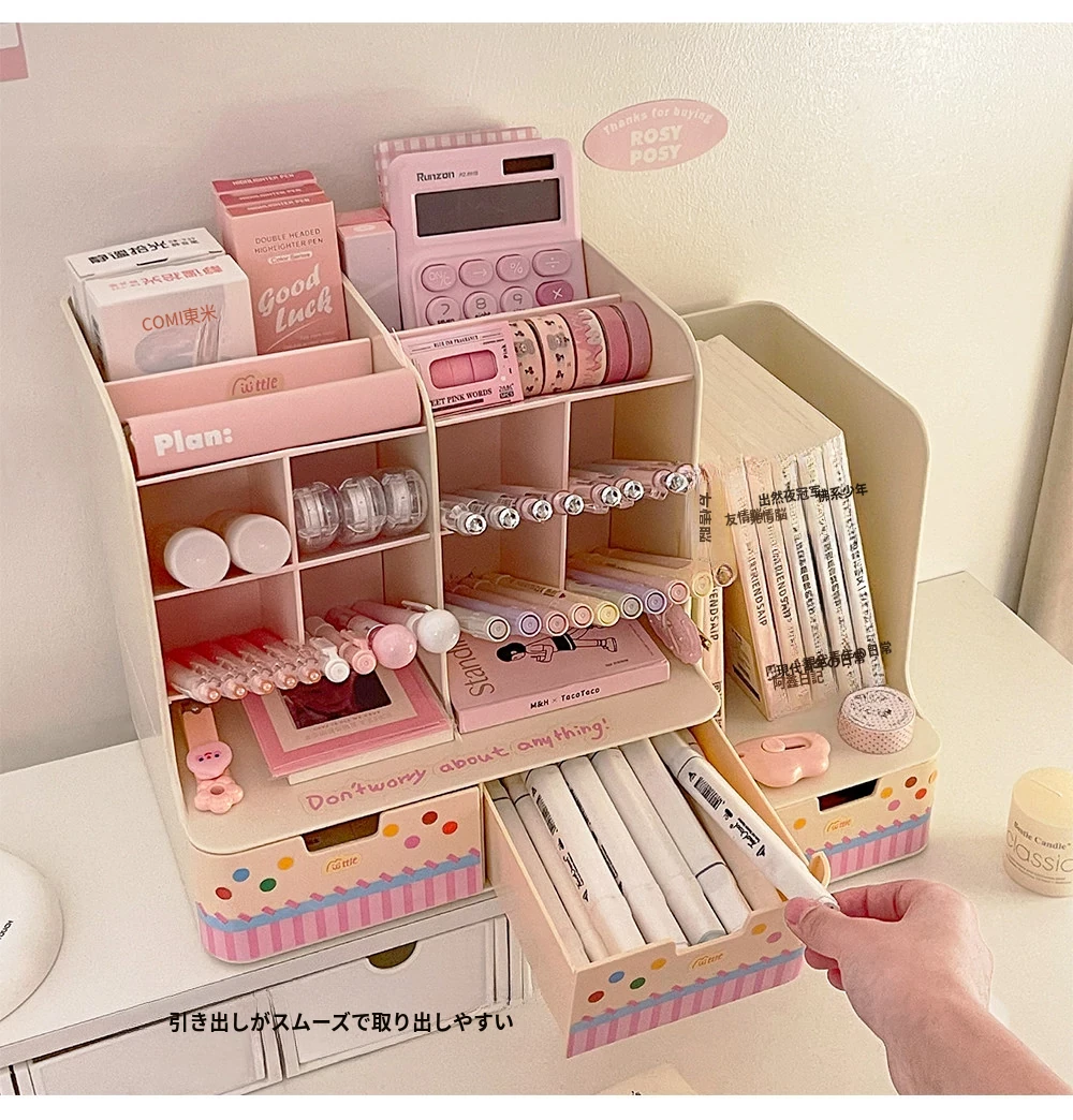 斜め差し式ペンスタンドデスク収納ボックス|本立て・デスク周りの小物整理に最適!オフィスデスクの引き出しをスッキリ整頓する仕切り付き収納ラック