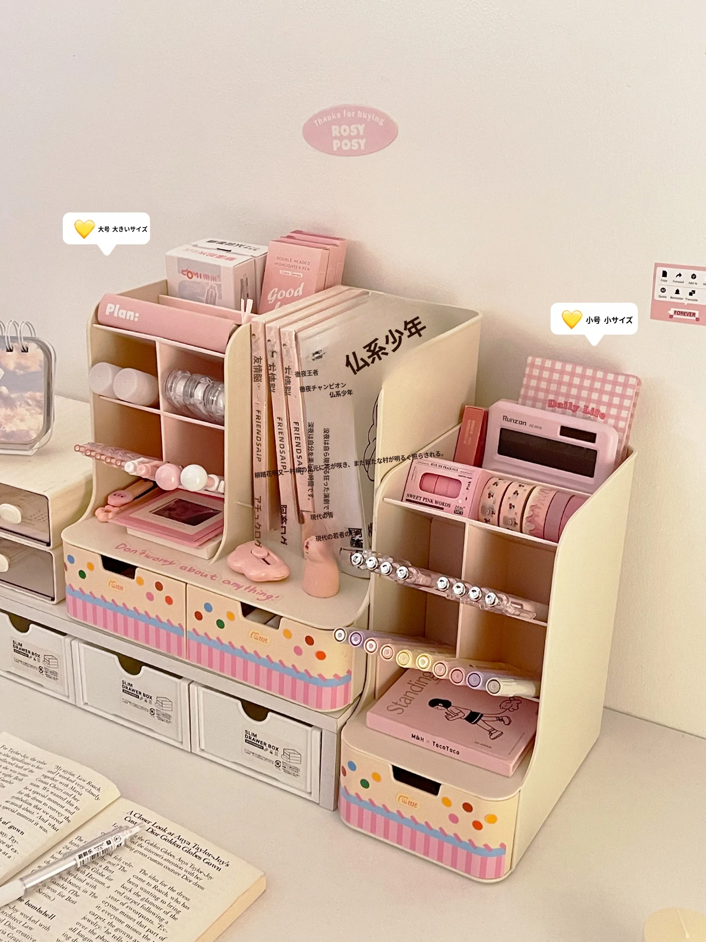 大号 - ピンクチェックブックスタンド