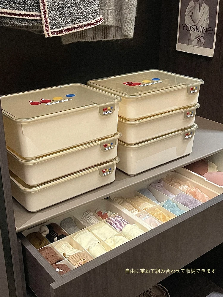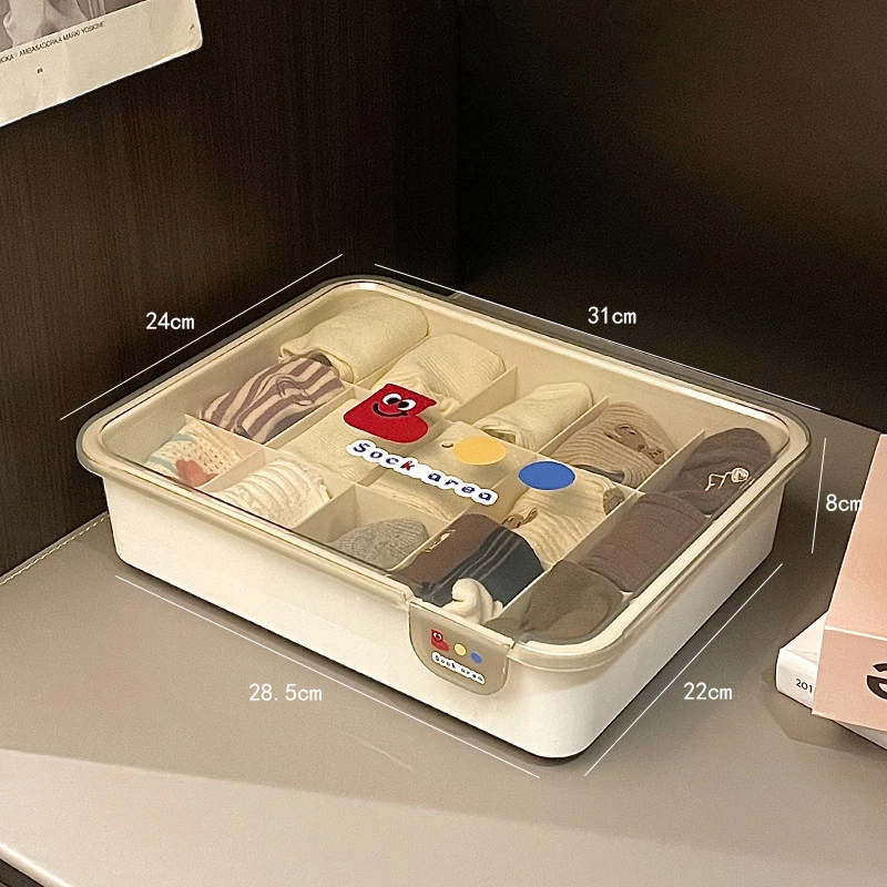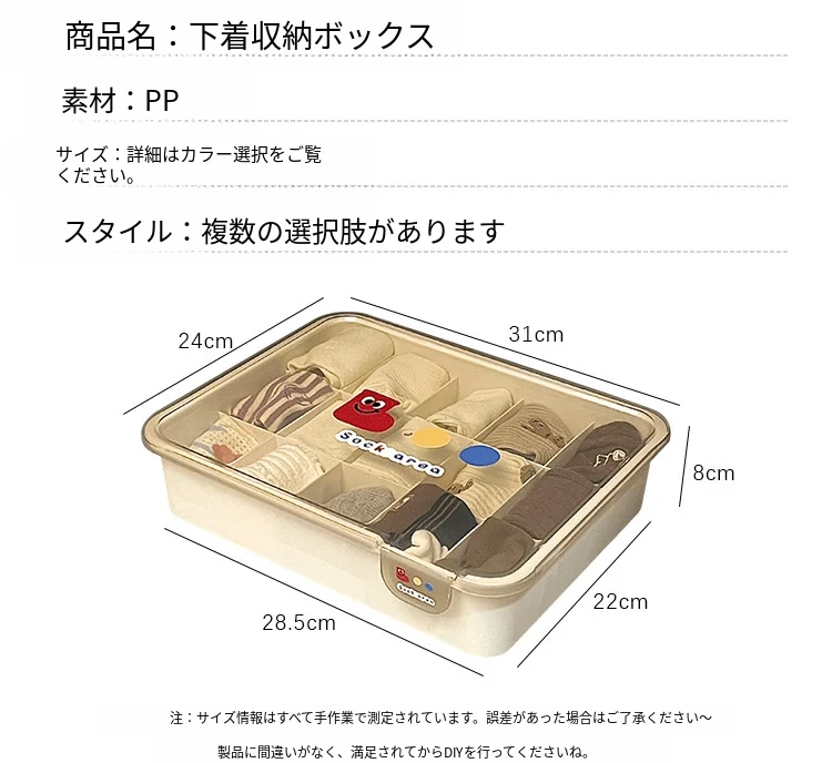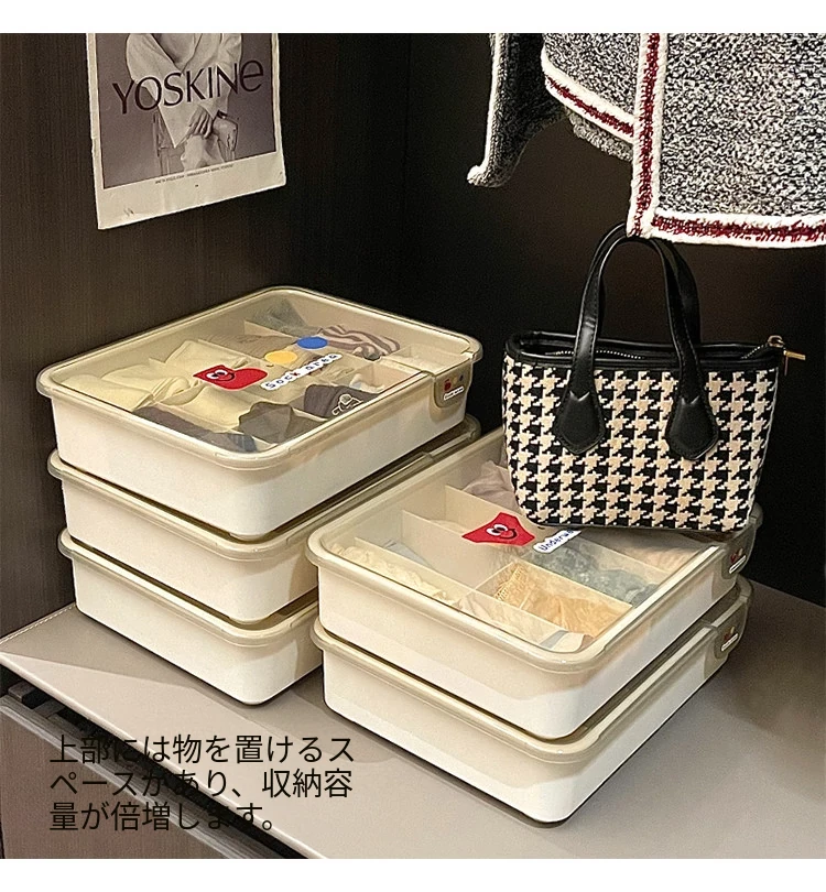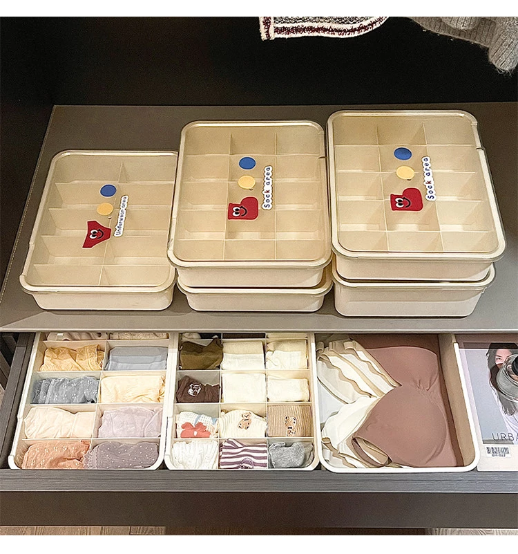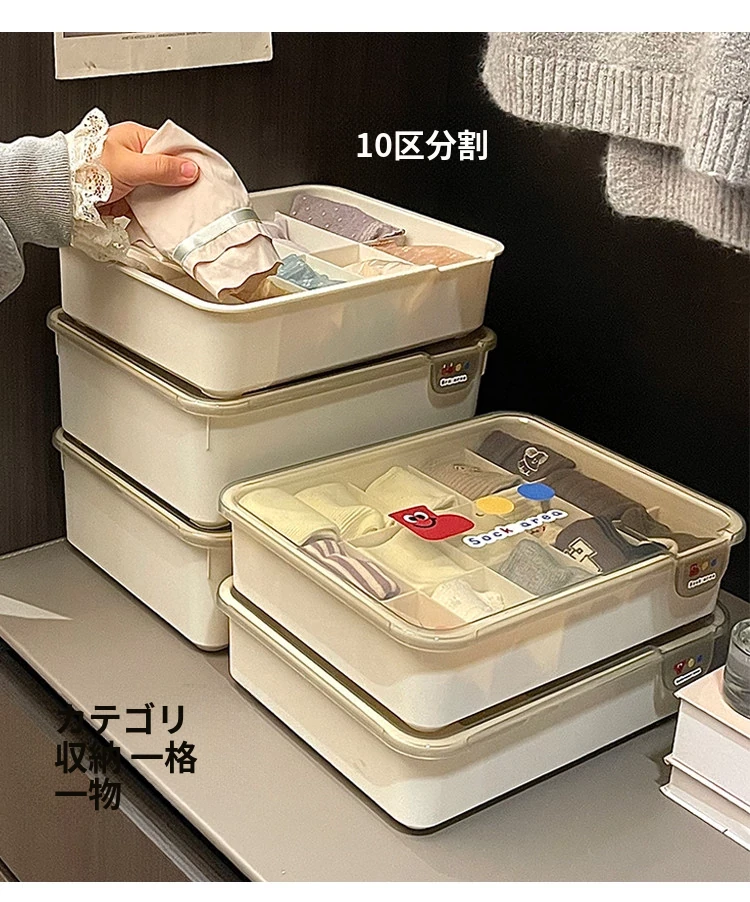 シンプルな下着収納ボックス|家庭用クローゼットや引き出しに最適!多仕切りでブラや靴下をすっきり整理|ほこりから守るフタ付きデザイン。