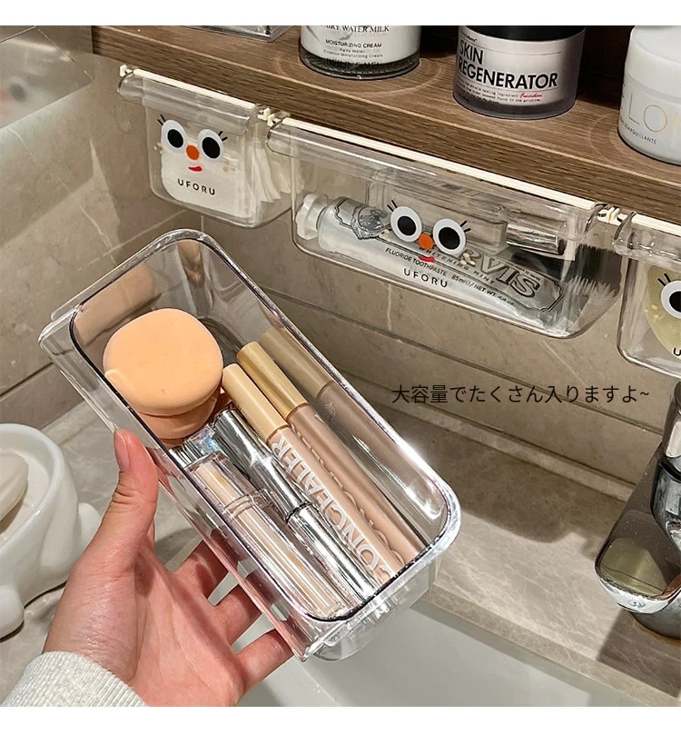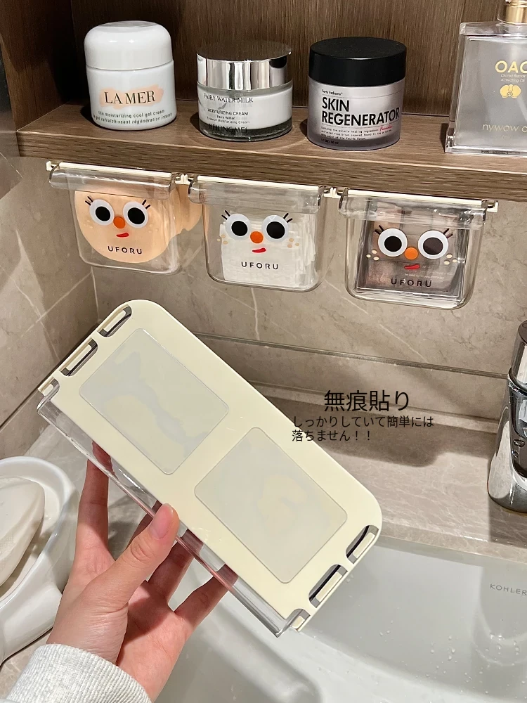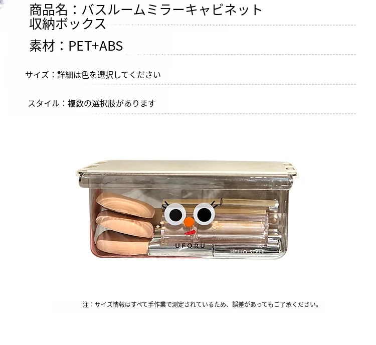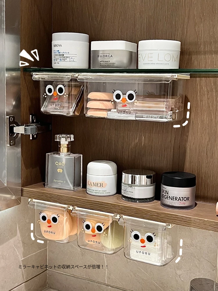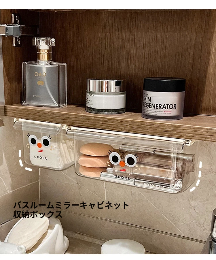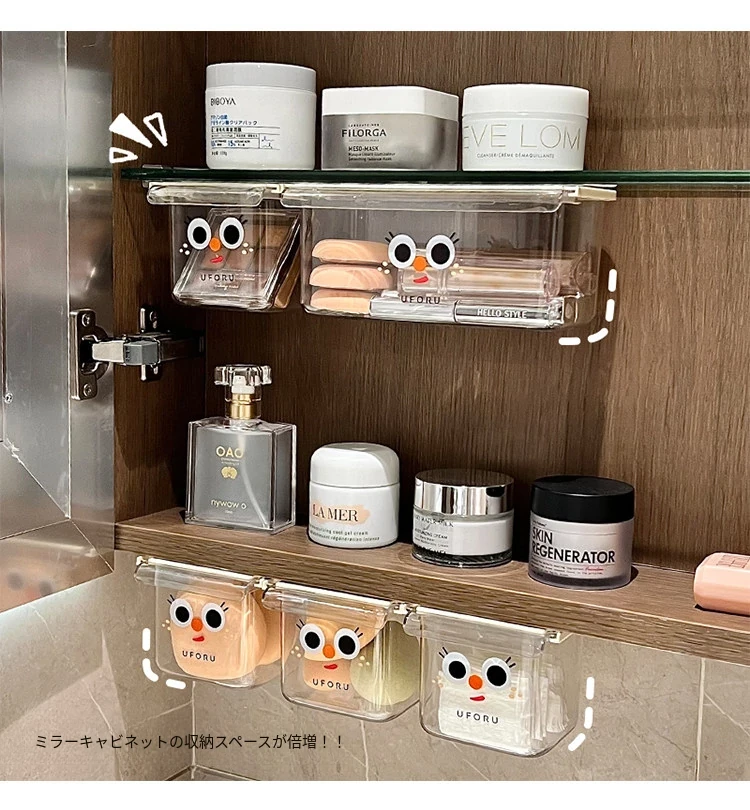 美しいデザインのバスルームミラーキャビネット下収納ボックス!壁掛けタイプで、化粧品やクレンジングコットン、リップスティックをスマートに整理。おしゃれで機能的な収納で、あなたのバスルームをもっと素敵に!
