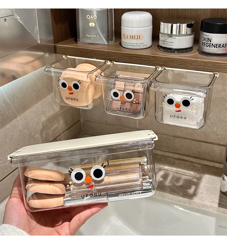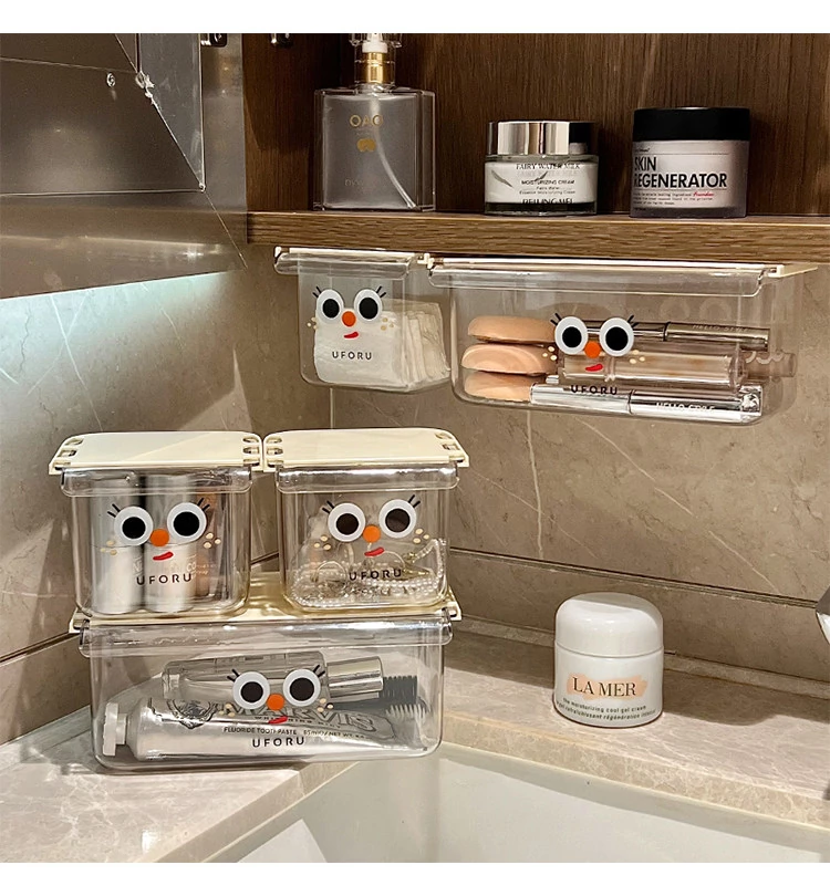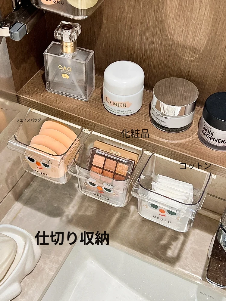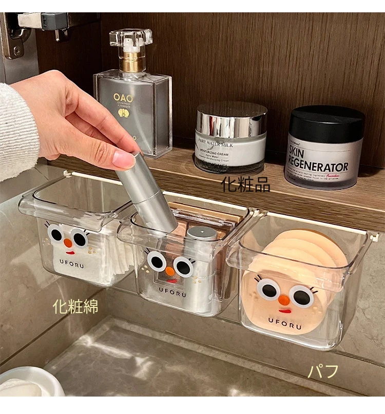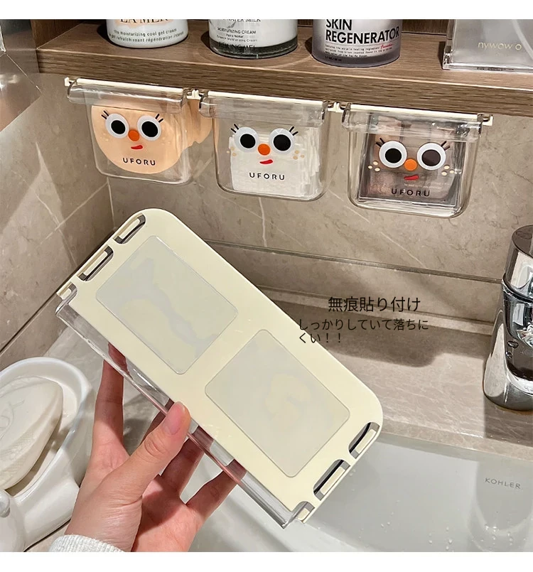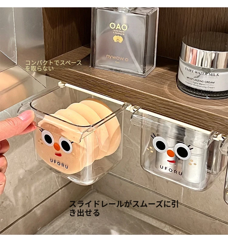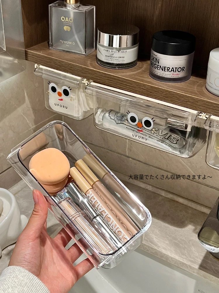 美しいデザインのバスルームミラーキャビネット下収納ボックス!壁掛けタイプで、化粧品やクレンジングコットン、リップスティックをスマートに整理。おしゃれで機能的な収納で、あなたのバスルームをもっと素敵に!