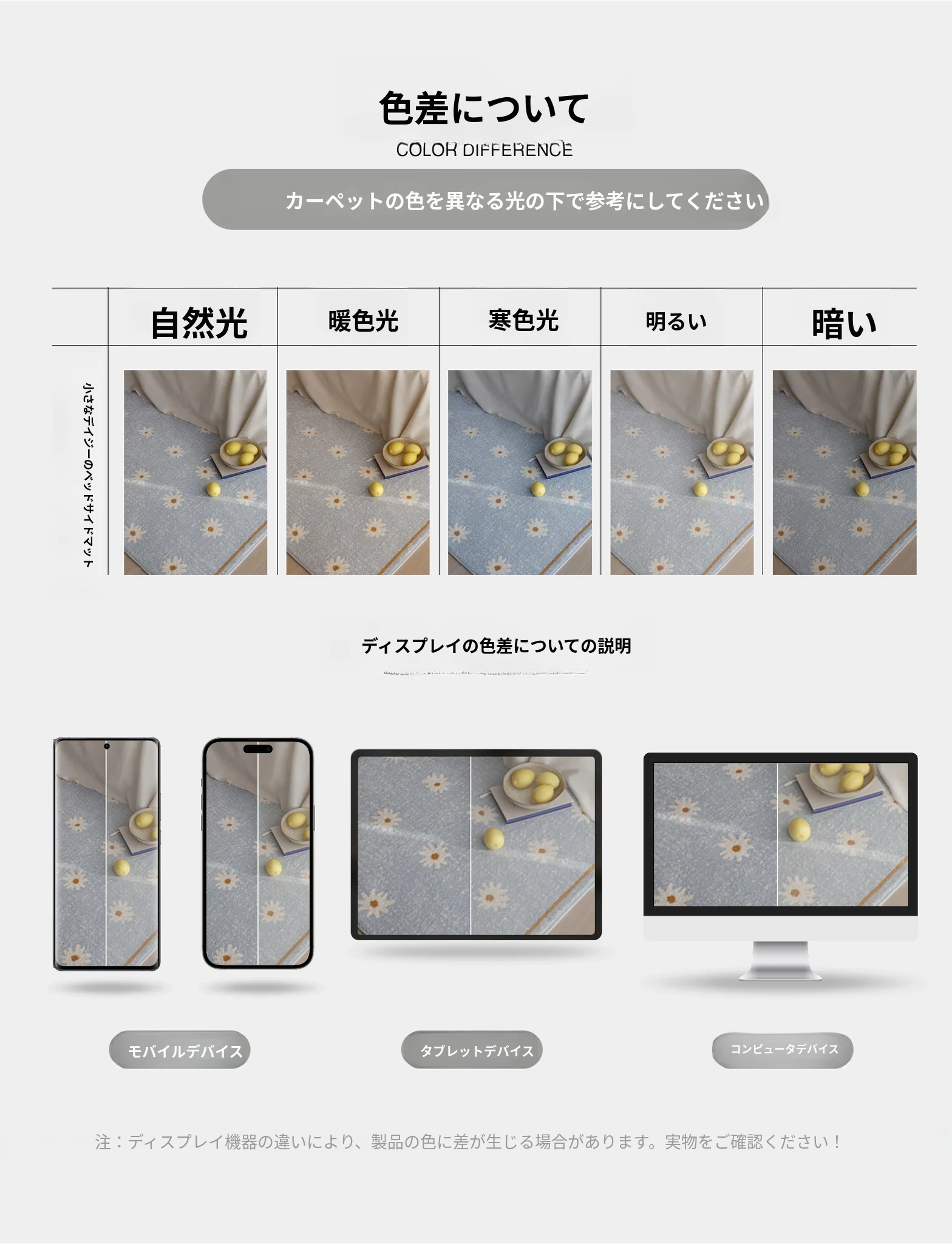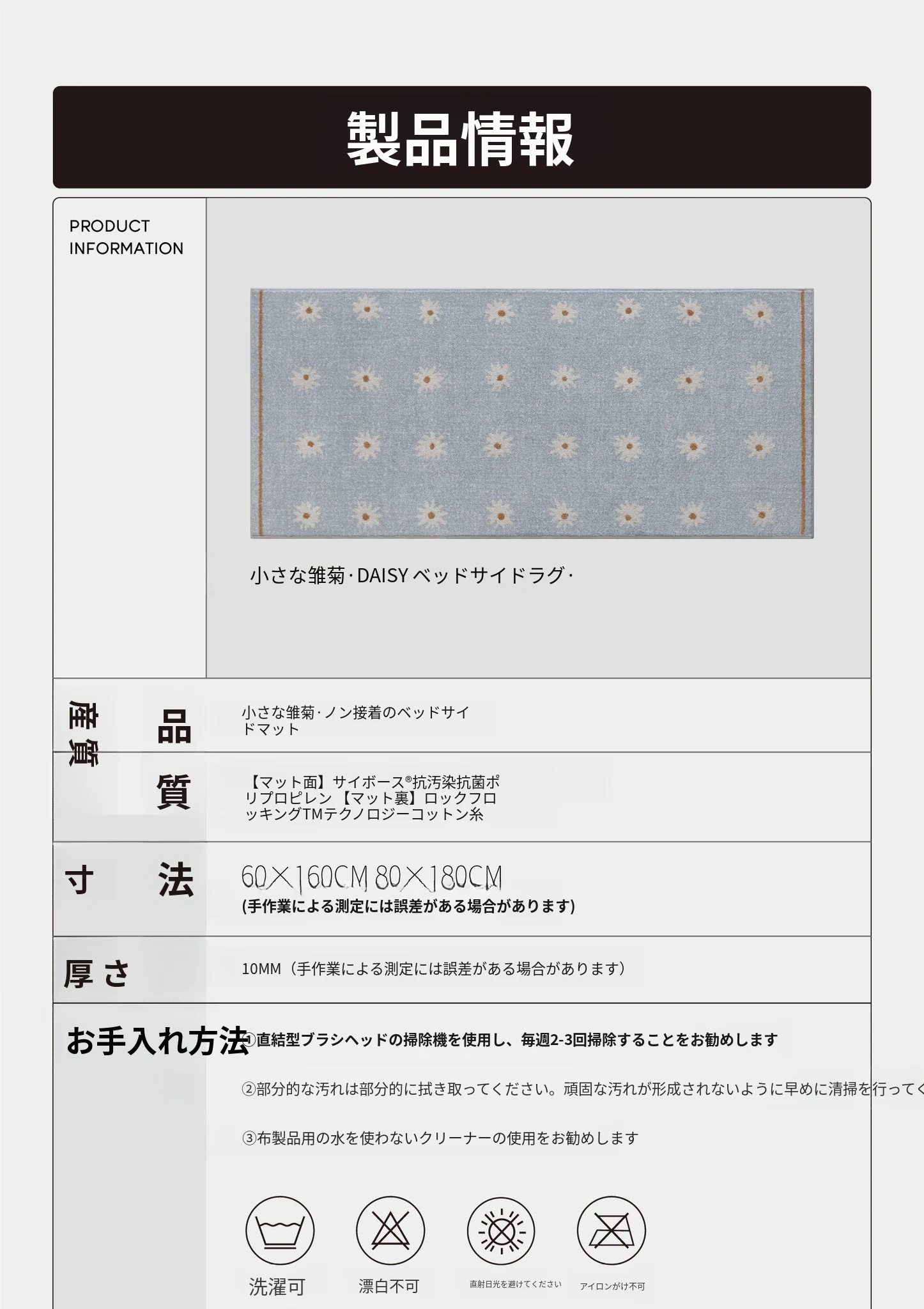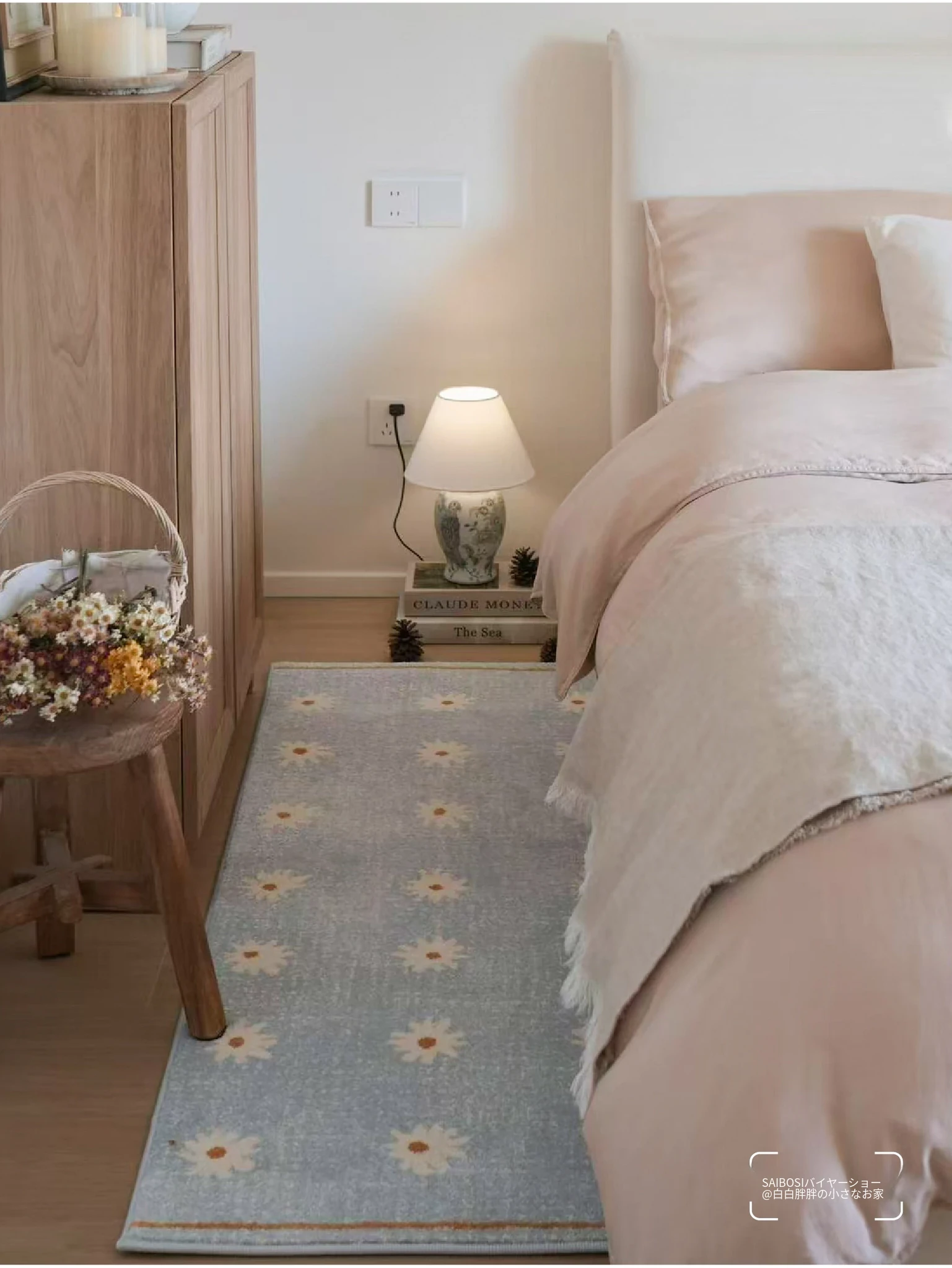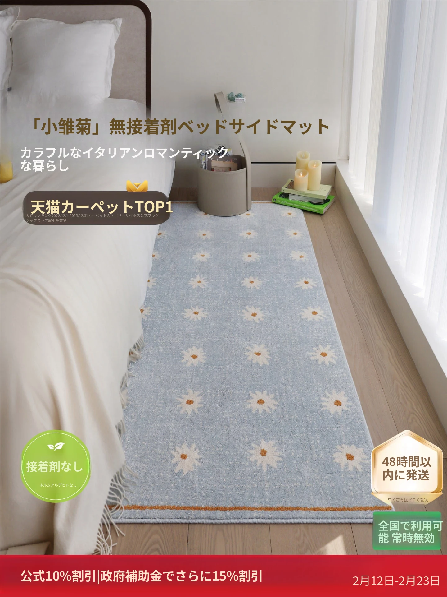 サイボス小さなデイジー カラフル イタリア製ノーグルー ベッドサイドマット フォーマルな空間に最適 フォーマルで高級感あふれるベッドフットカバー、ホルムアルデヒドフリーの安心設計!