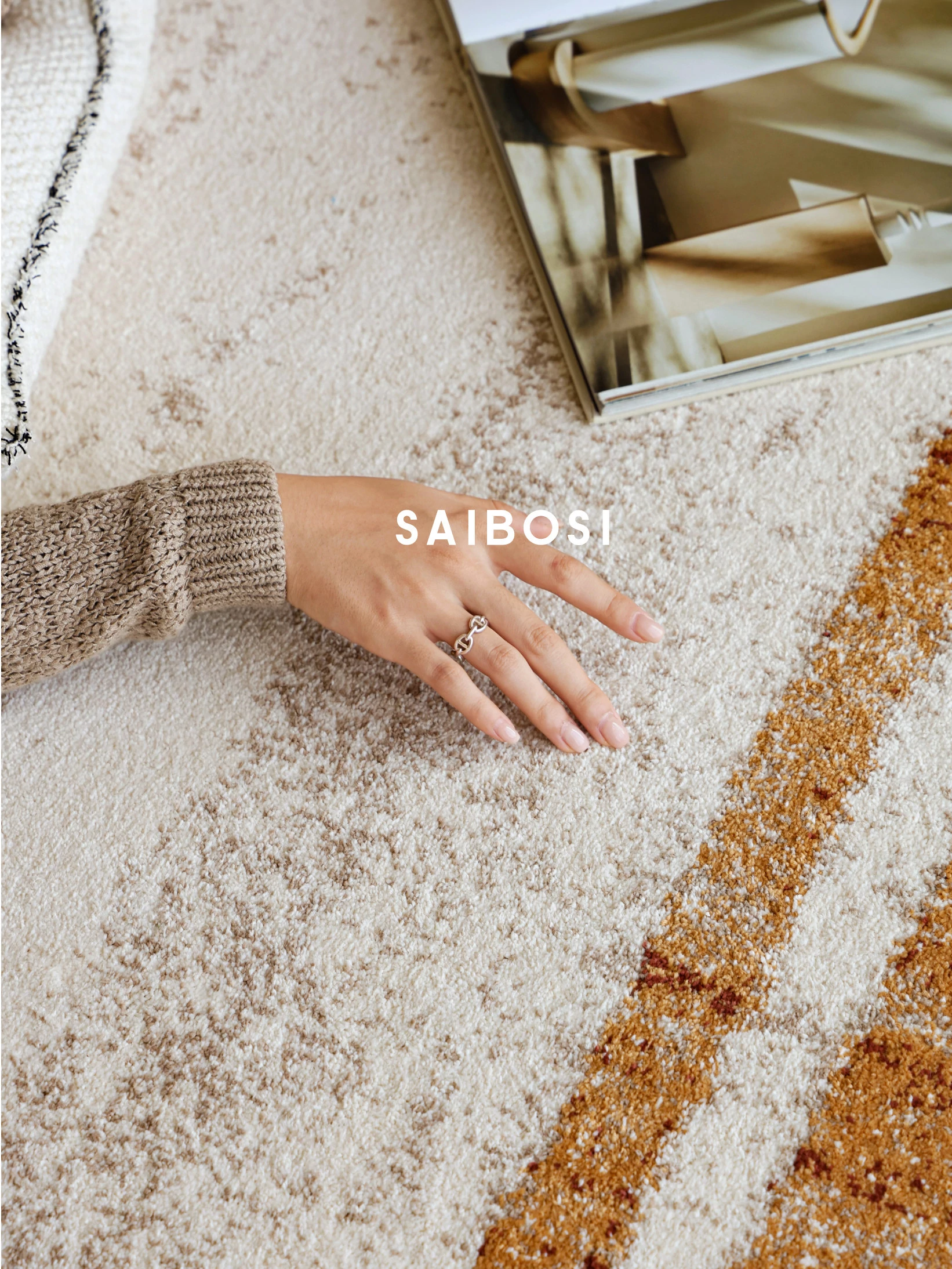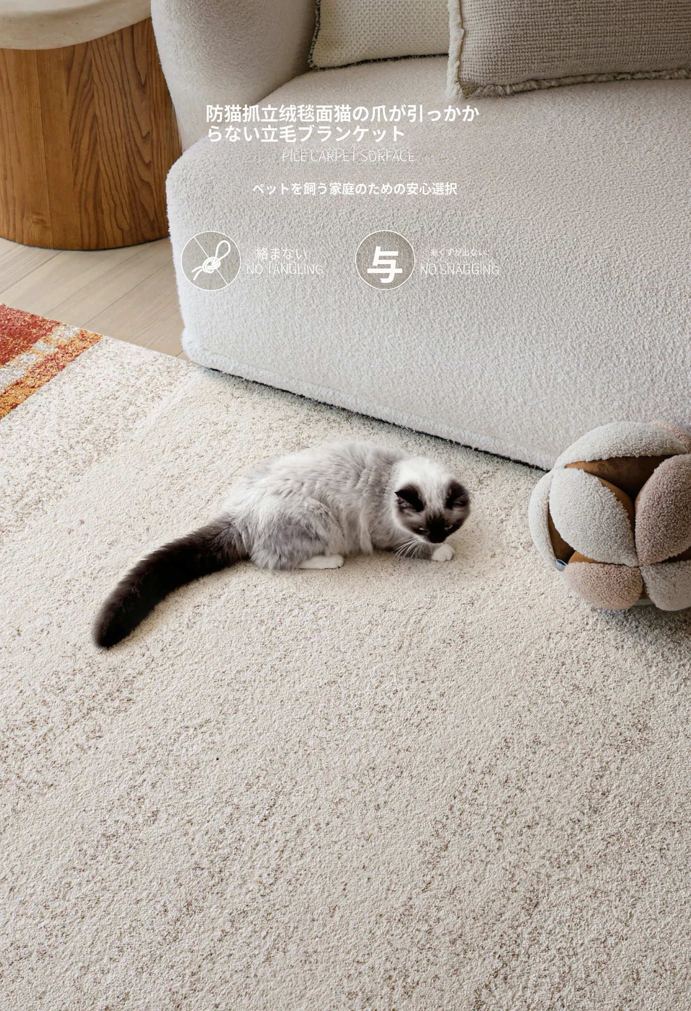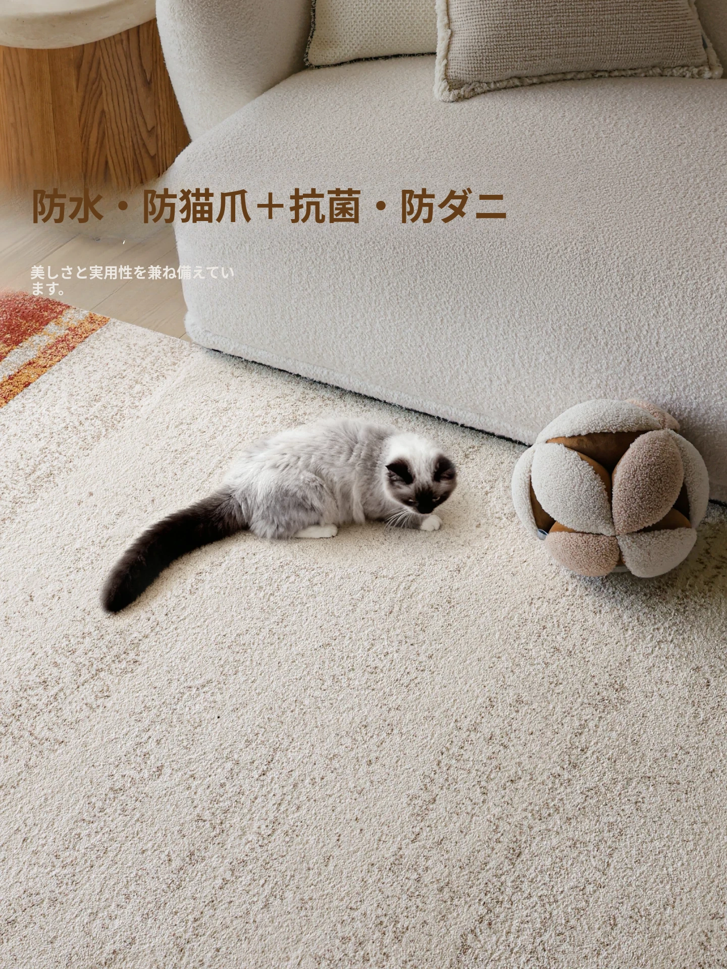 セイボスの光を求める無接着剤カーペット、防水・猫の爪防止機能付き。アンティーク風のイタリアンラグで、リビングや寝室に上質な高級感をプラス!