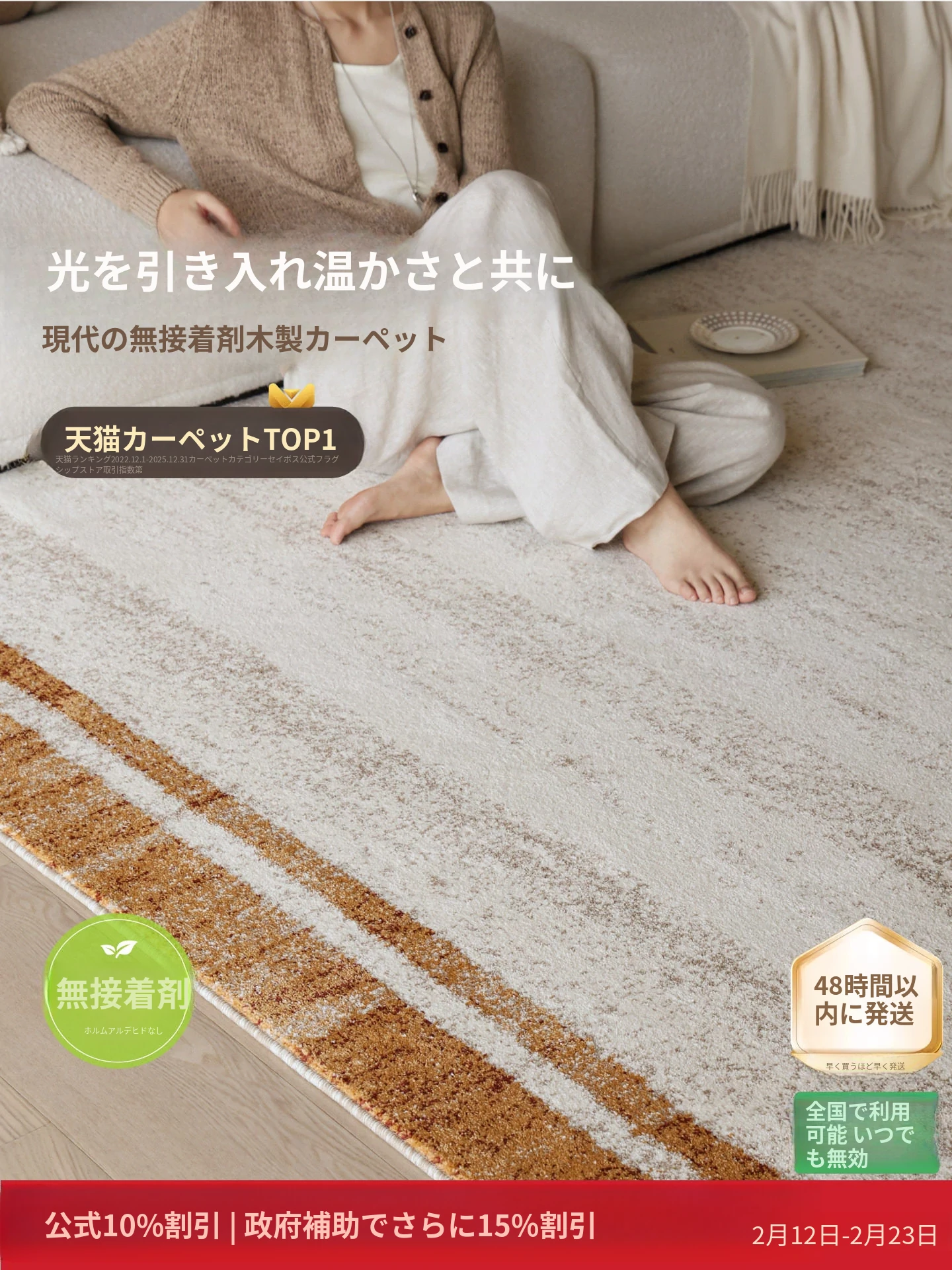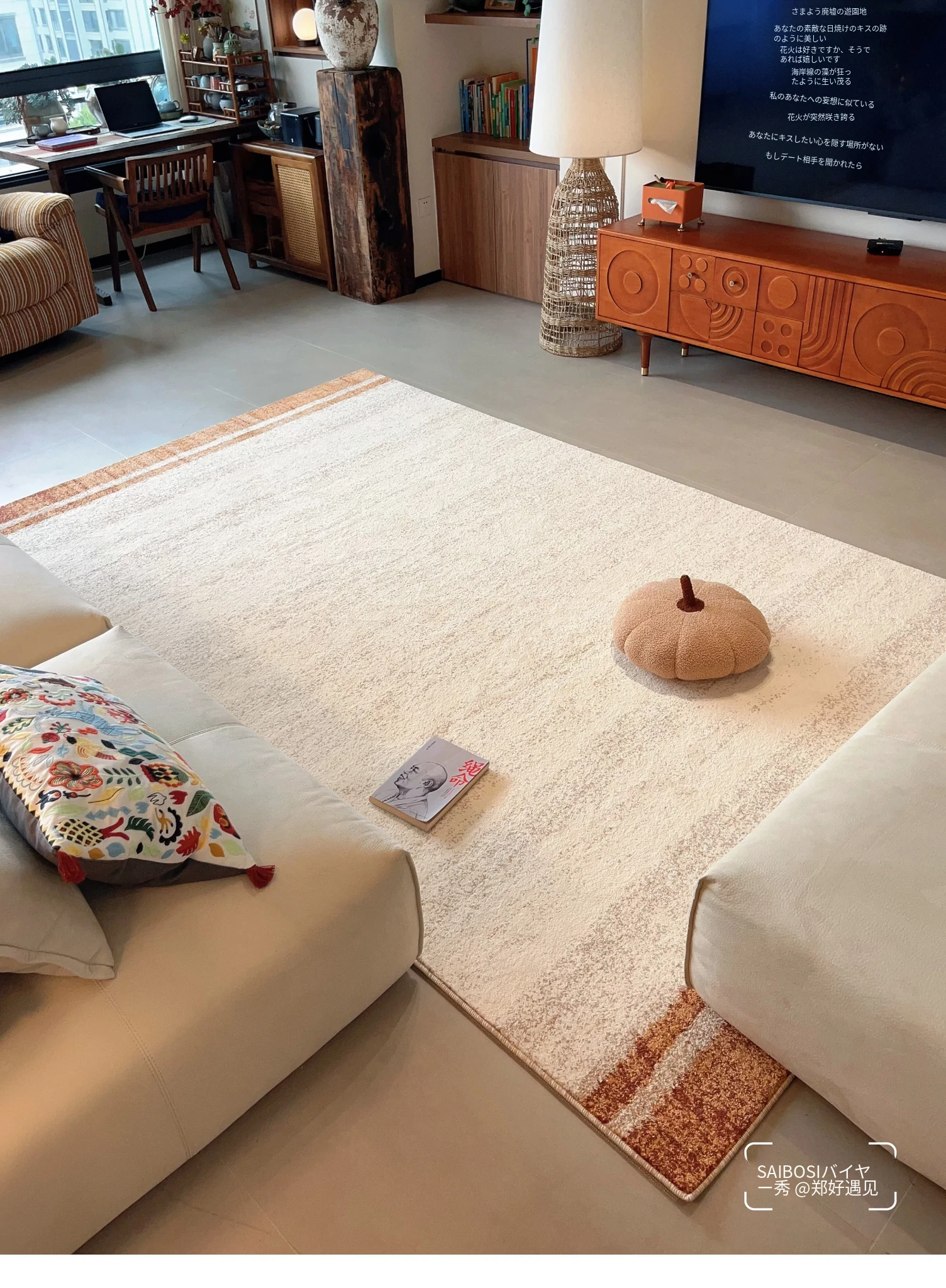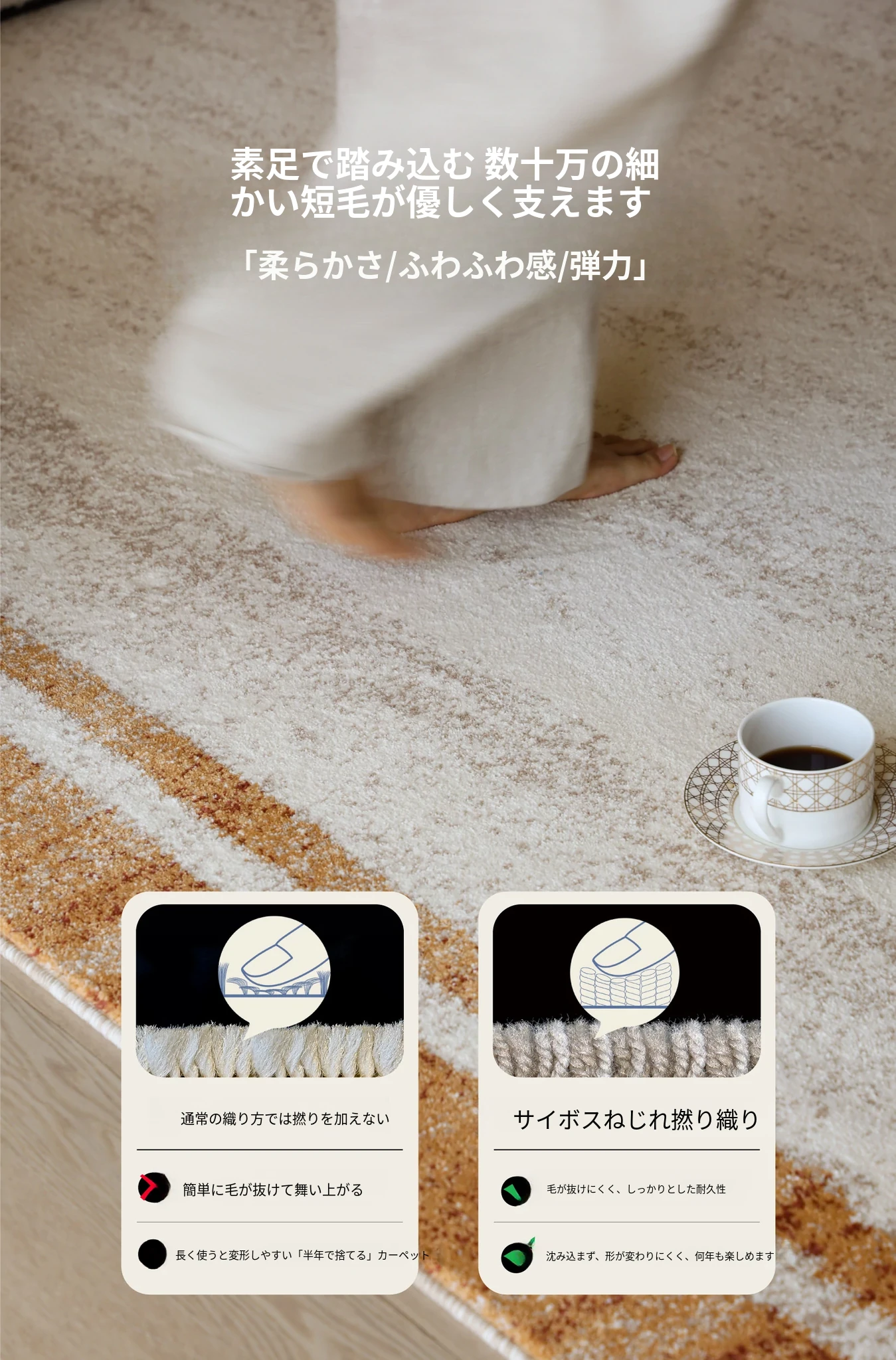 セイボスの光を求める無接着剤カーペット、防水・猫の爪防止機能付き。アンティーク風のイタリアンラグで、リビングや寝室に上質な高級感をプラス!