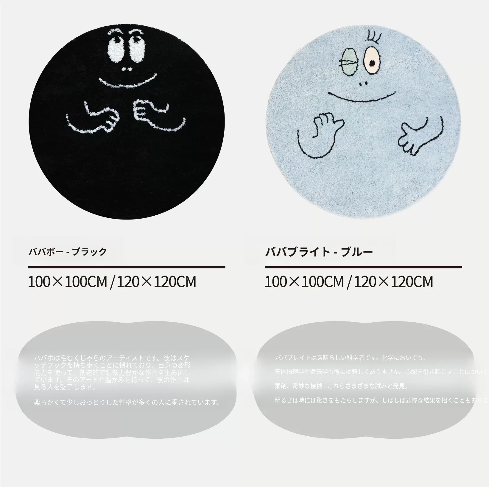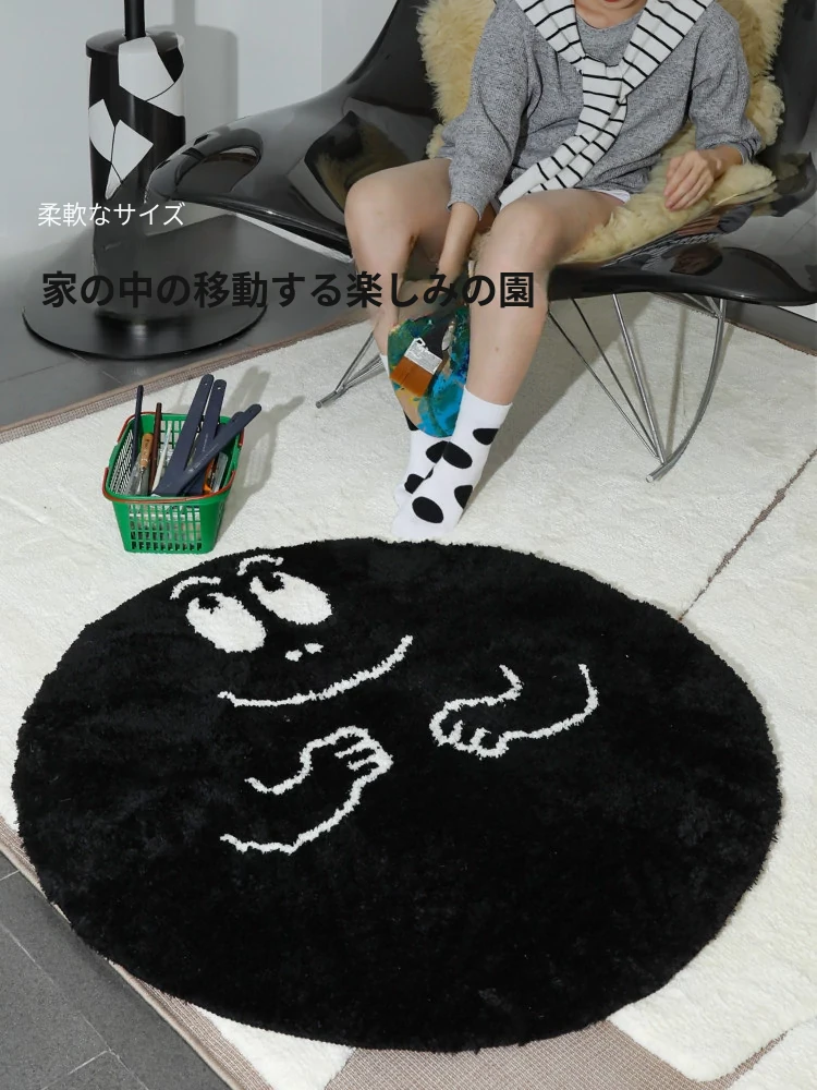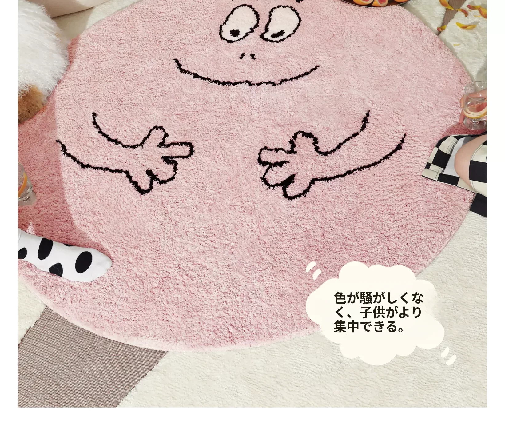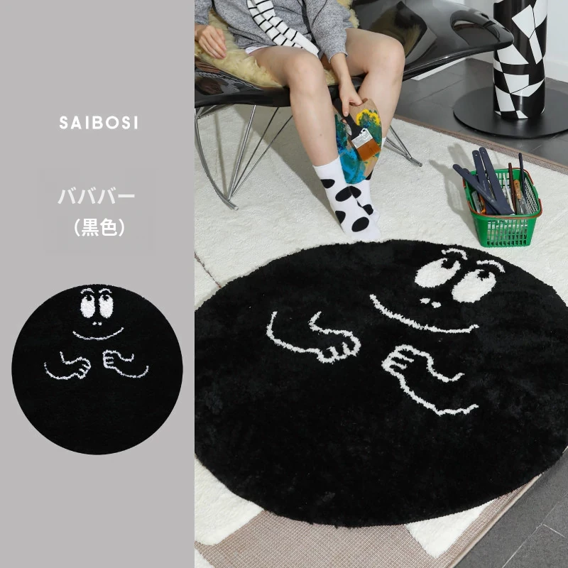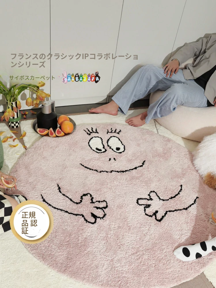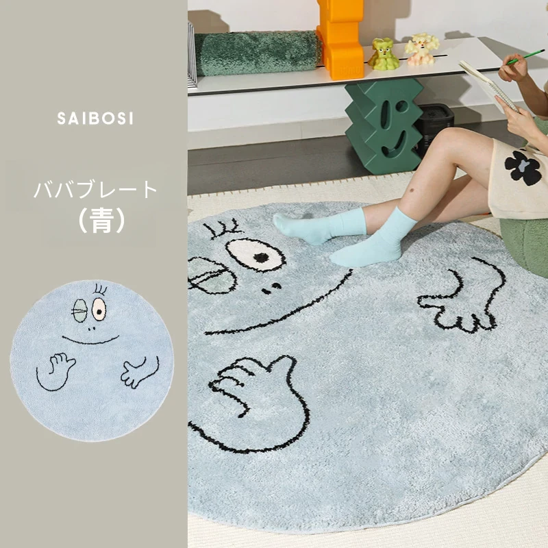 セイボスのババパパコラボ円形ラグ - 可愛い子供部屋や寝室にぴったり!おしゃれなクローゼットや青山の美宿に最適なデザイン。あなたの空間を素敵に彩ります!