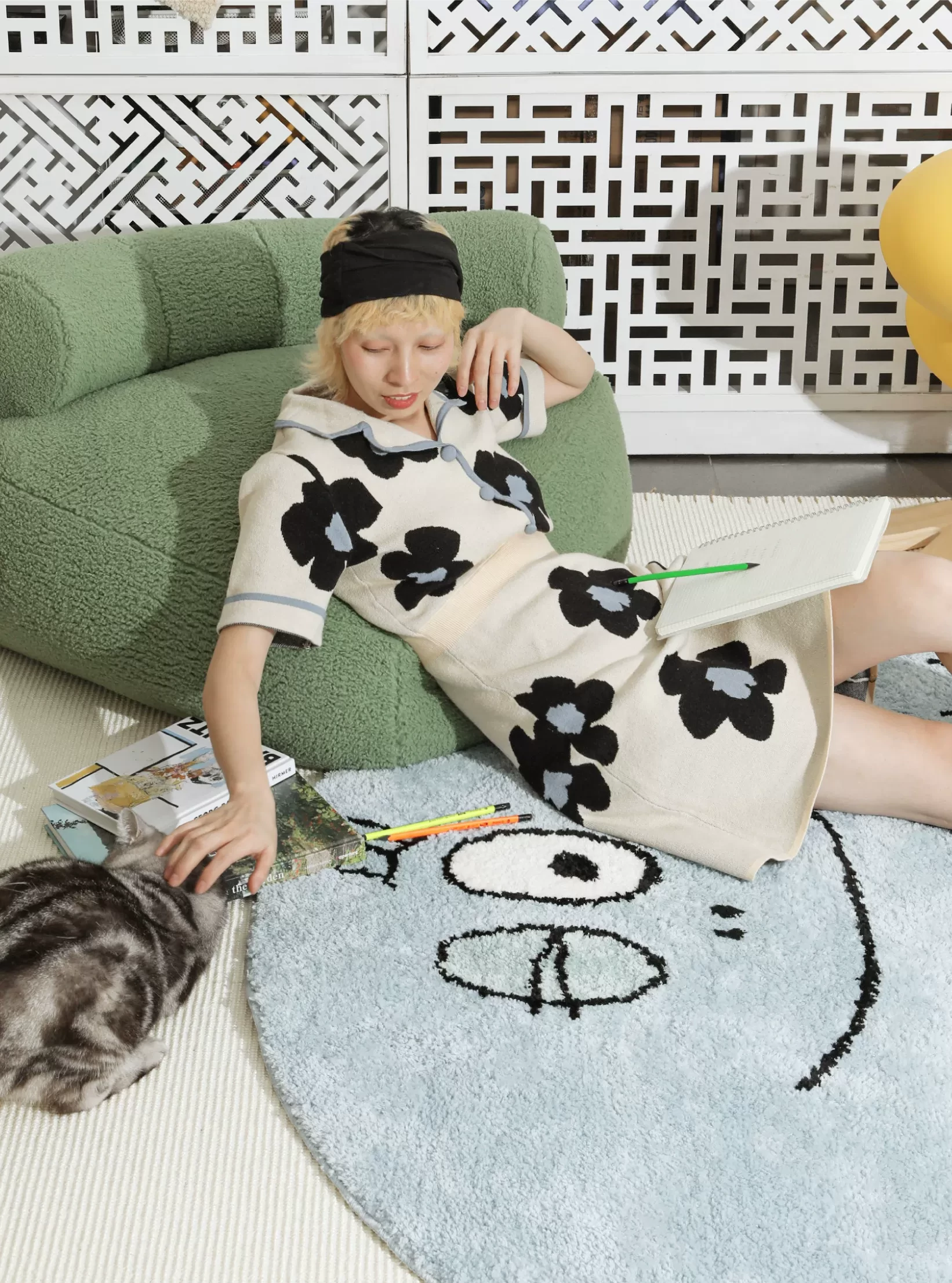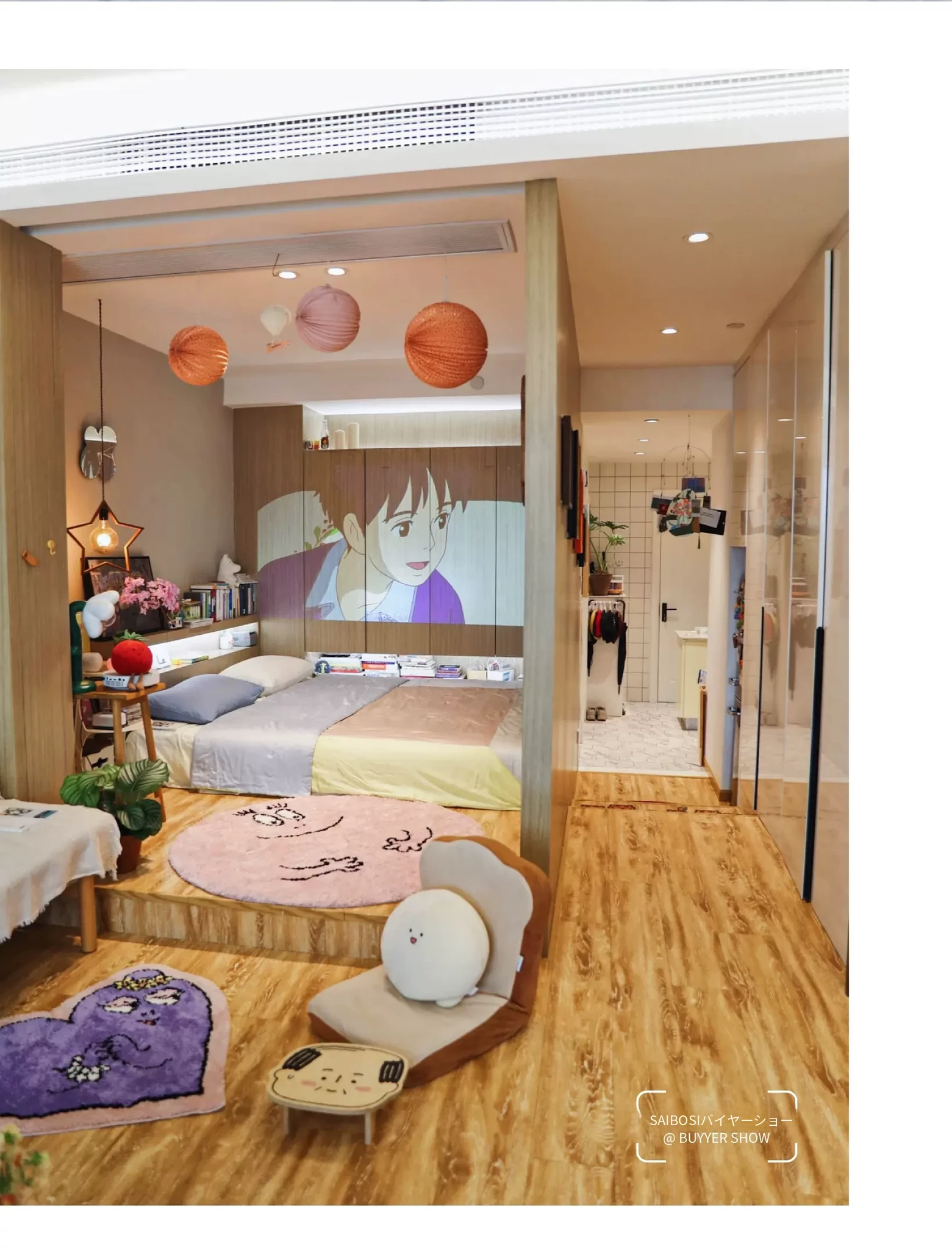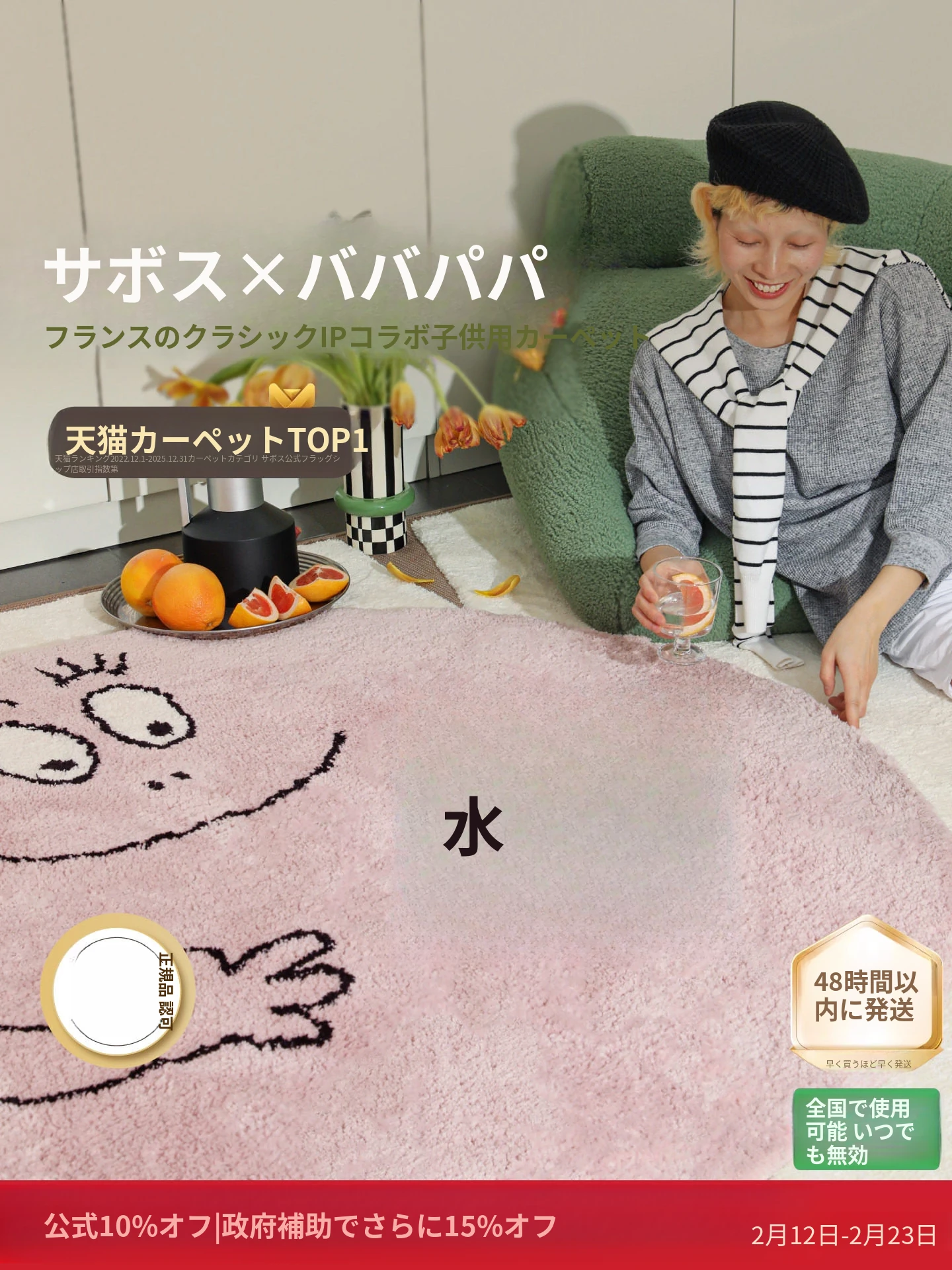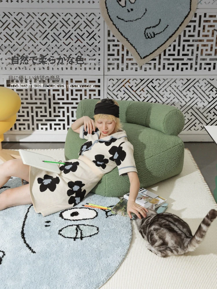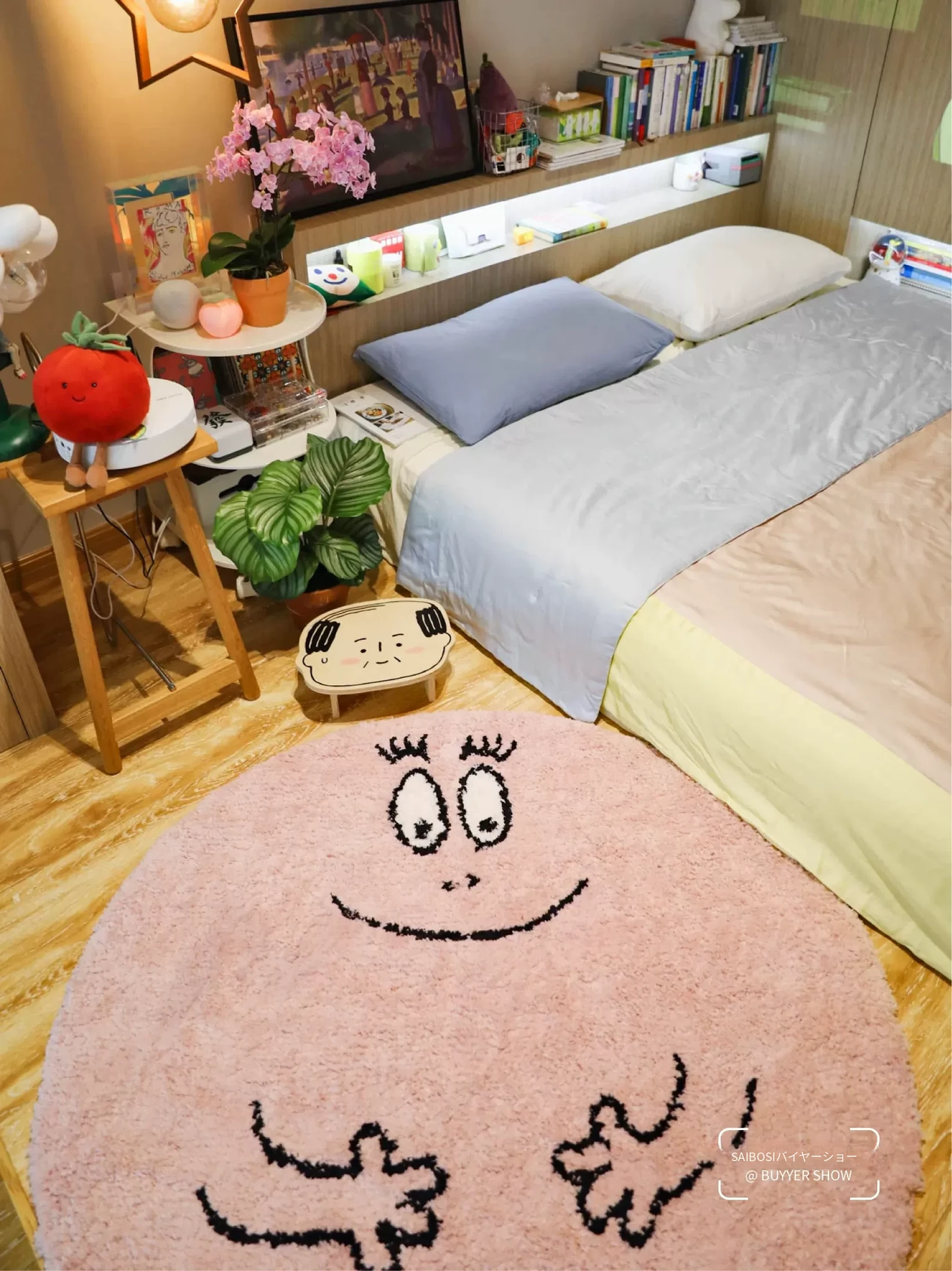 セイボスのババパパコラボ円形ラグ - 可愛い子供部屋や寝室にぴったり!おしゃれなクローゼットや青山の美宿に最適なデザイン。あなたの空間を素敵に彩ります!
