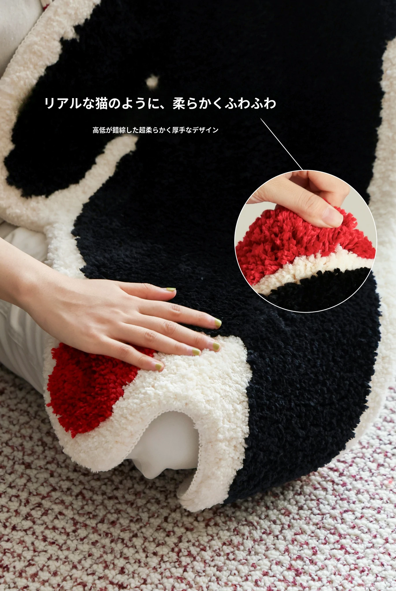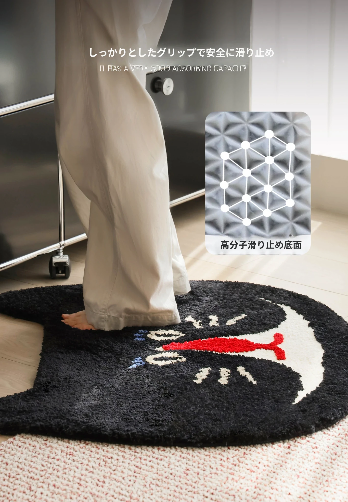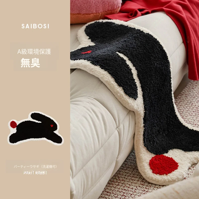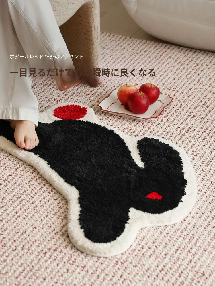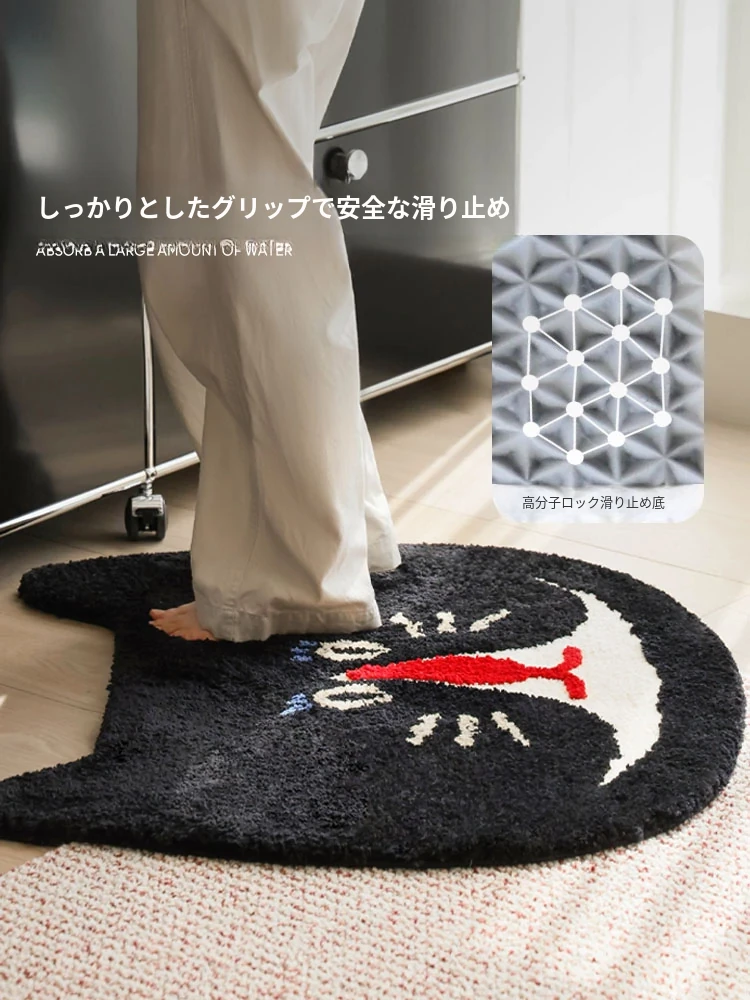 サイボス茶会シリーズ ベッドサイドマット カートゥーンキャットデザイン 滑り止め機能付き 洗濯機で洗える 寝室・リビング・子供部屋に最適なユニークな形のラグ