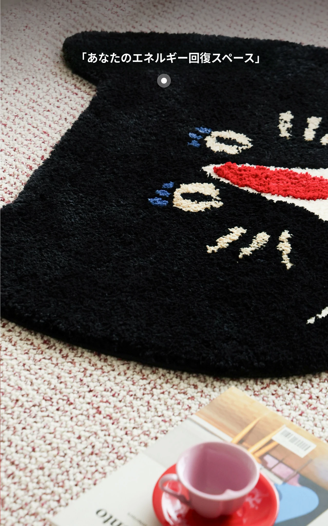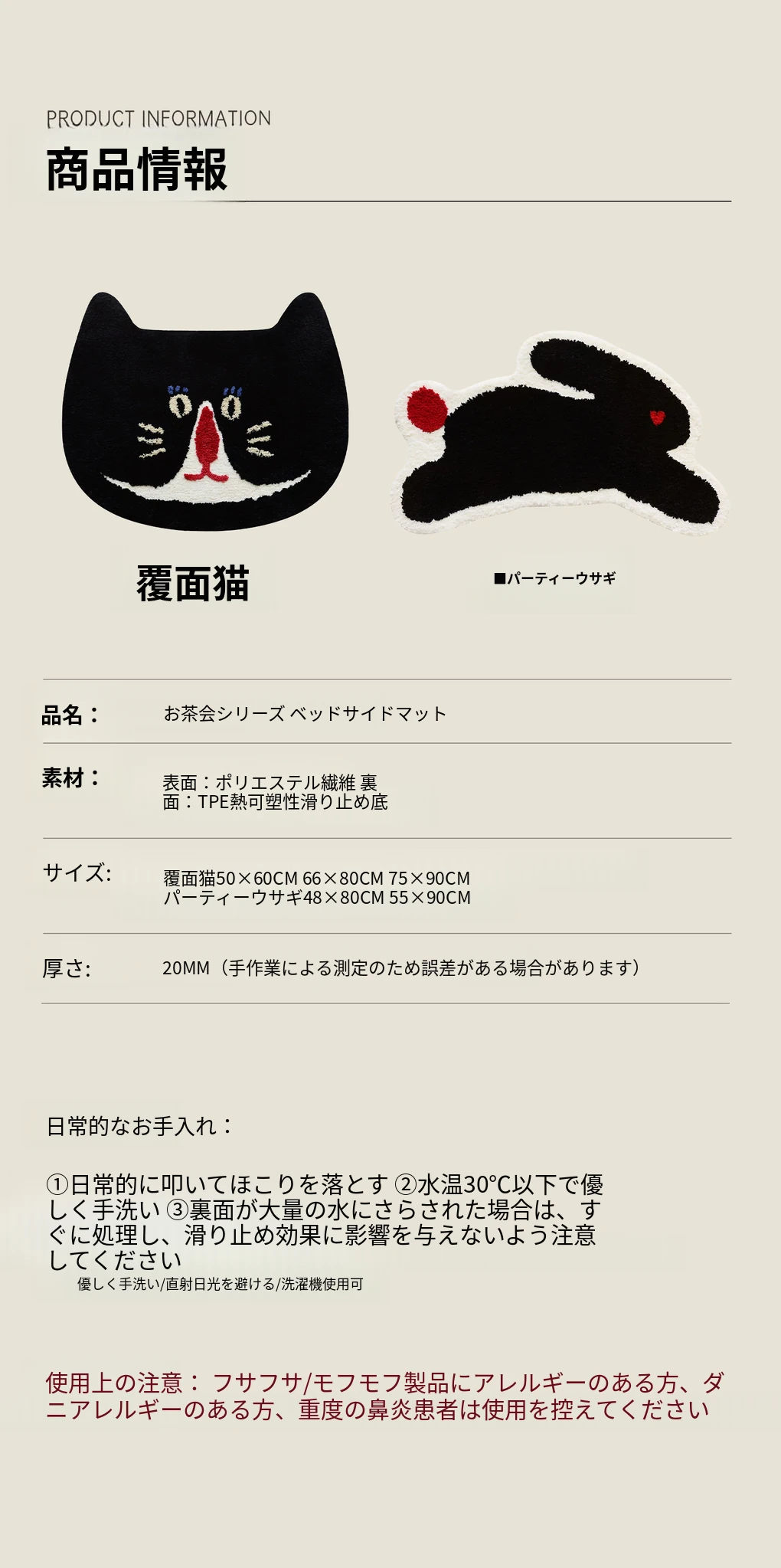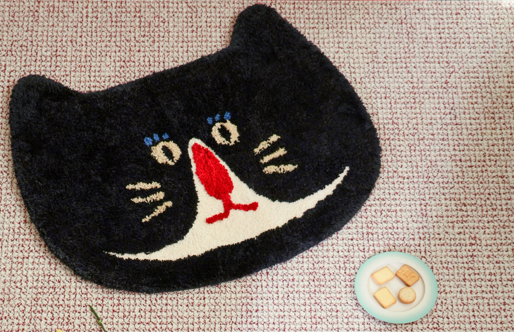 サイボス茶会シリーズ ベッドサイドマット カートゥーンキャットデザイン 滑り止め機能付き 洗濯機で洗える 寝室・リビング・子供部屋に最適なユニークな形のラグ