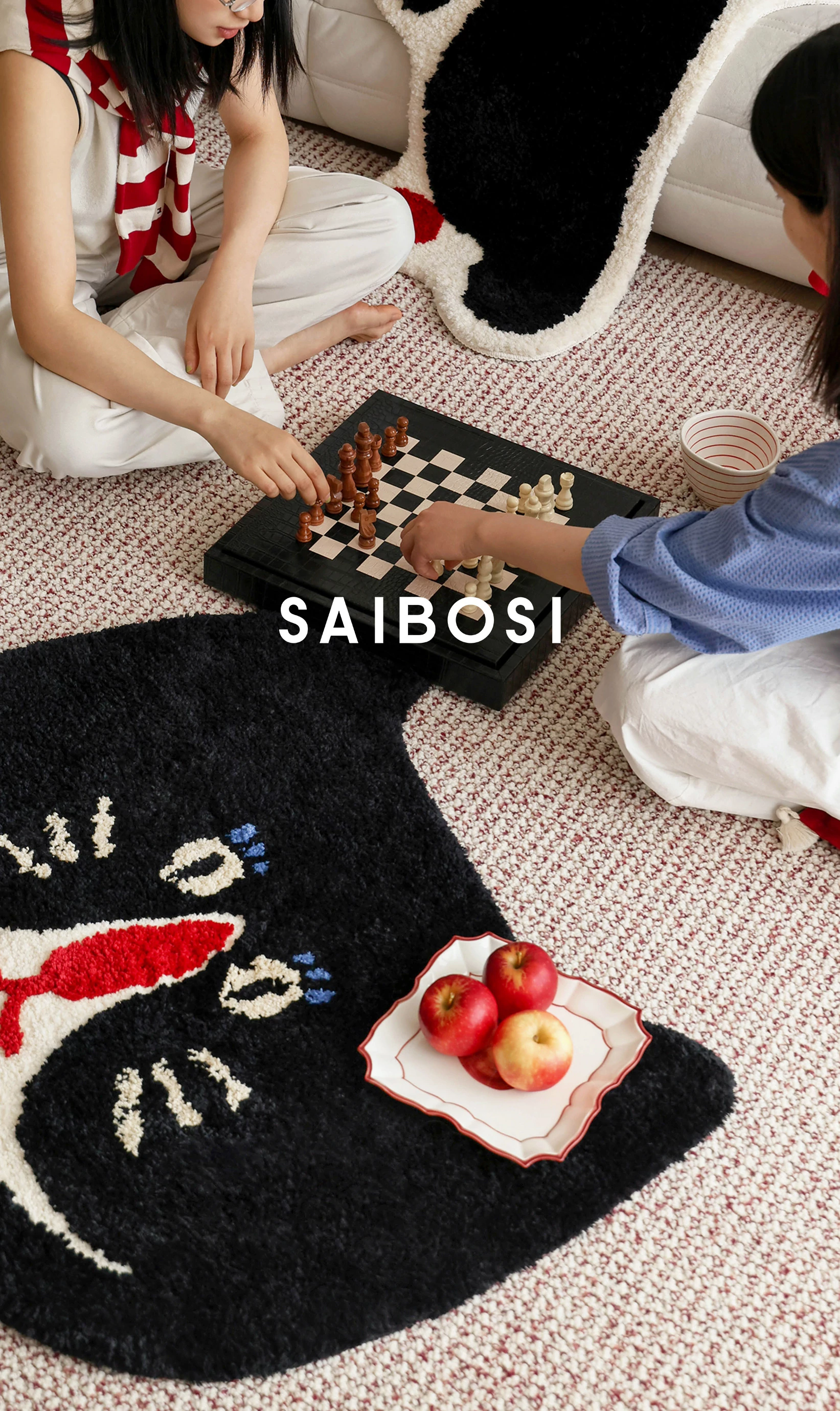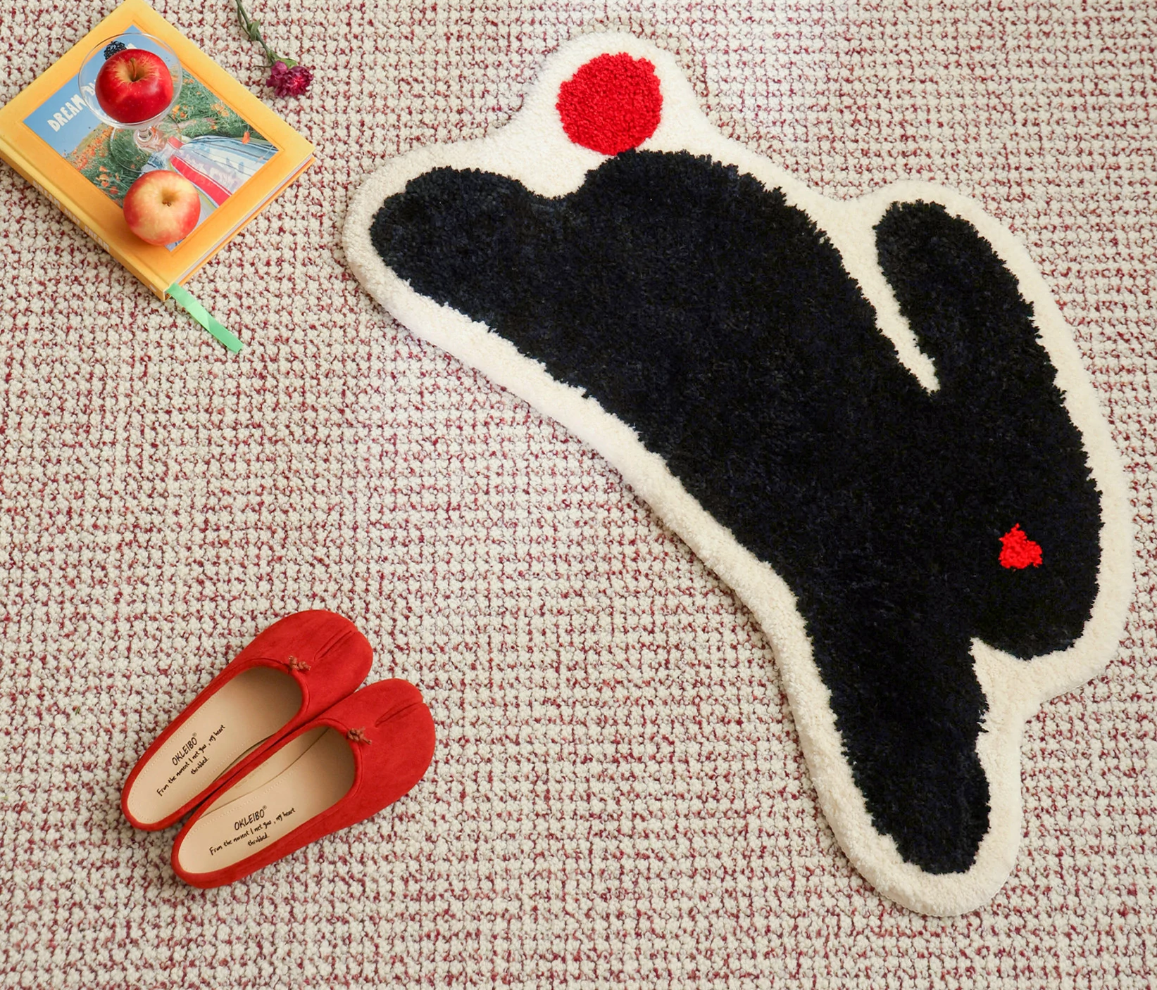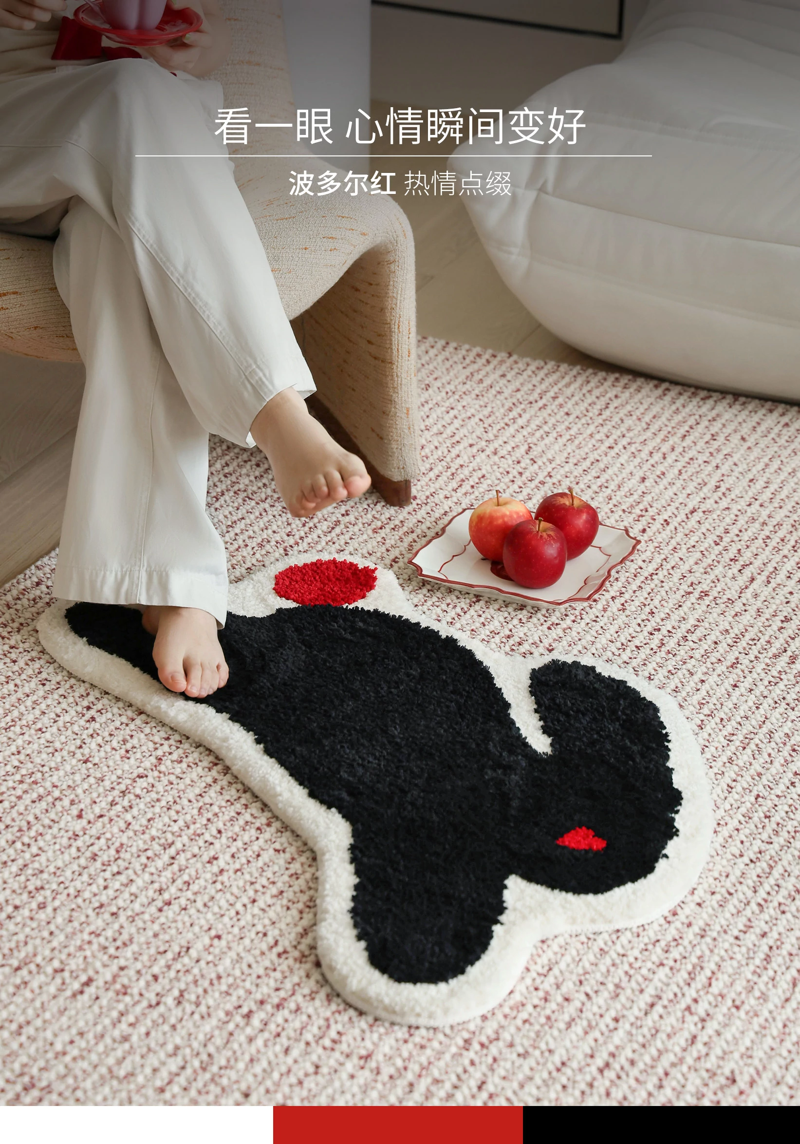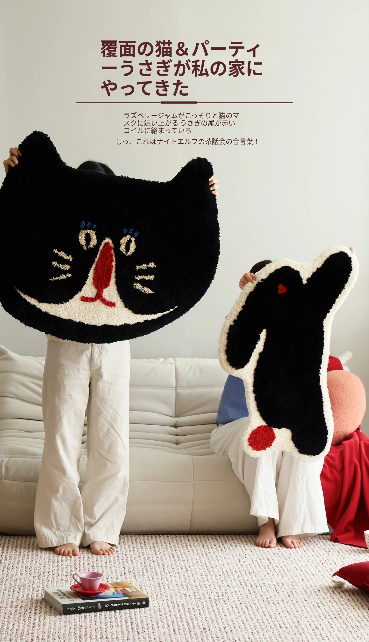 サイボス茶会シリーズ ベッドサイドマット カートゥーンキャットデザイン 滑り止め機能付き 洗濯機で洗える 寝室・リビング・子供部屋に最適なユニークな形のラグ