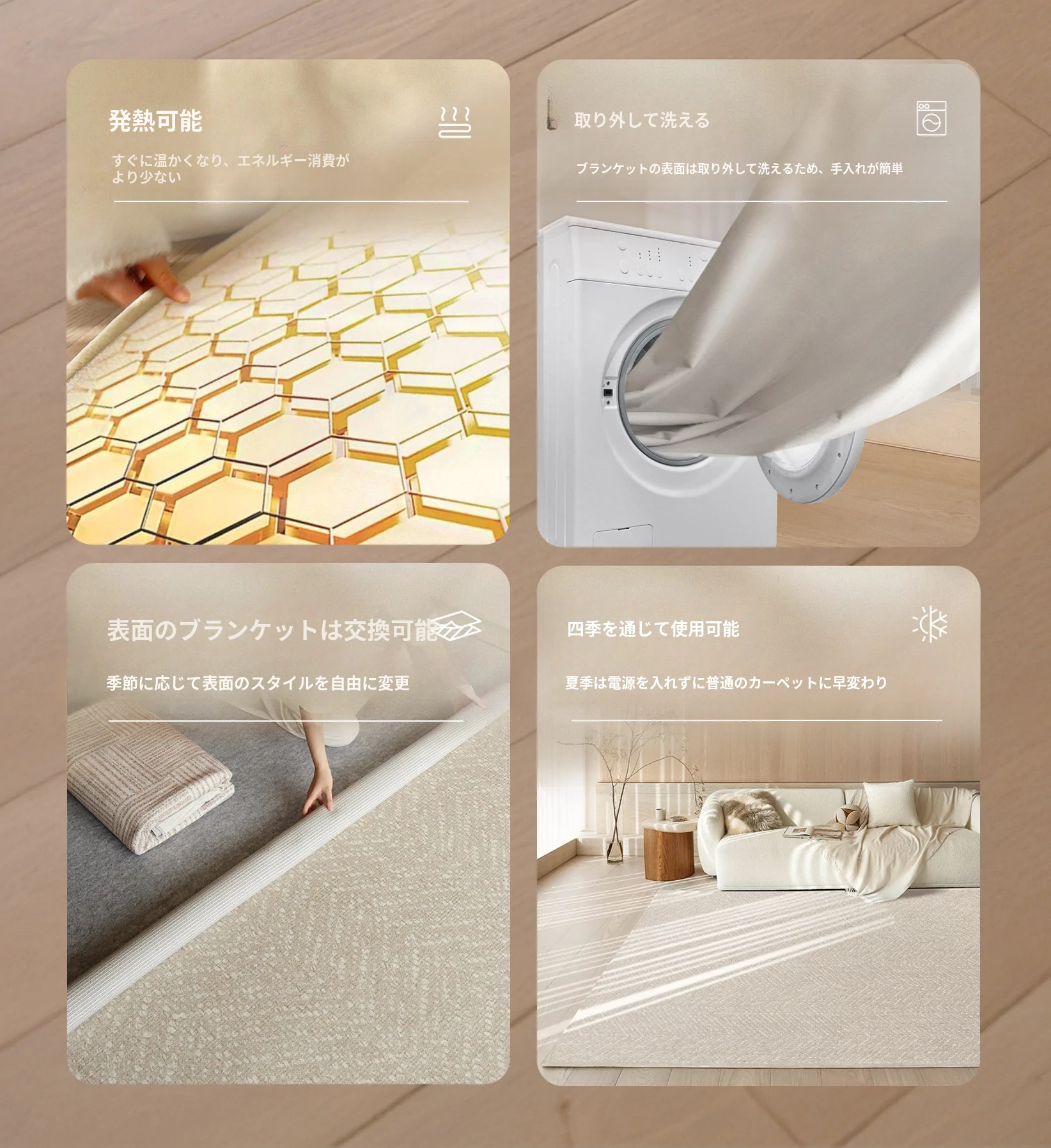 サイボス・クラウドパール 大宅電気暖房可洗い2層カーペット リビング用 グラフェン加熱マット 洗濯機対応の電気ヒーター ふわふわで温かさを保つ、家族の快適空間を演出!