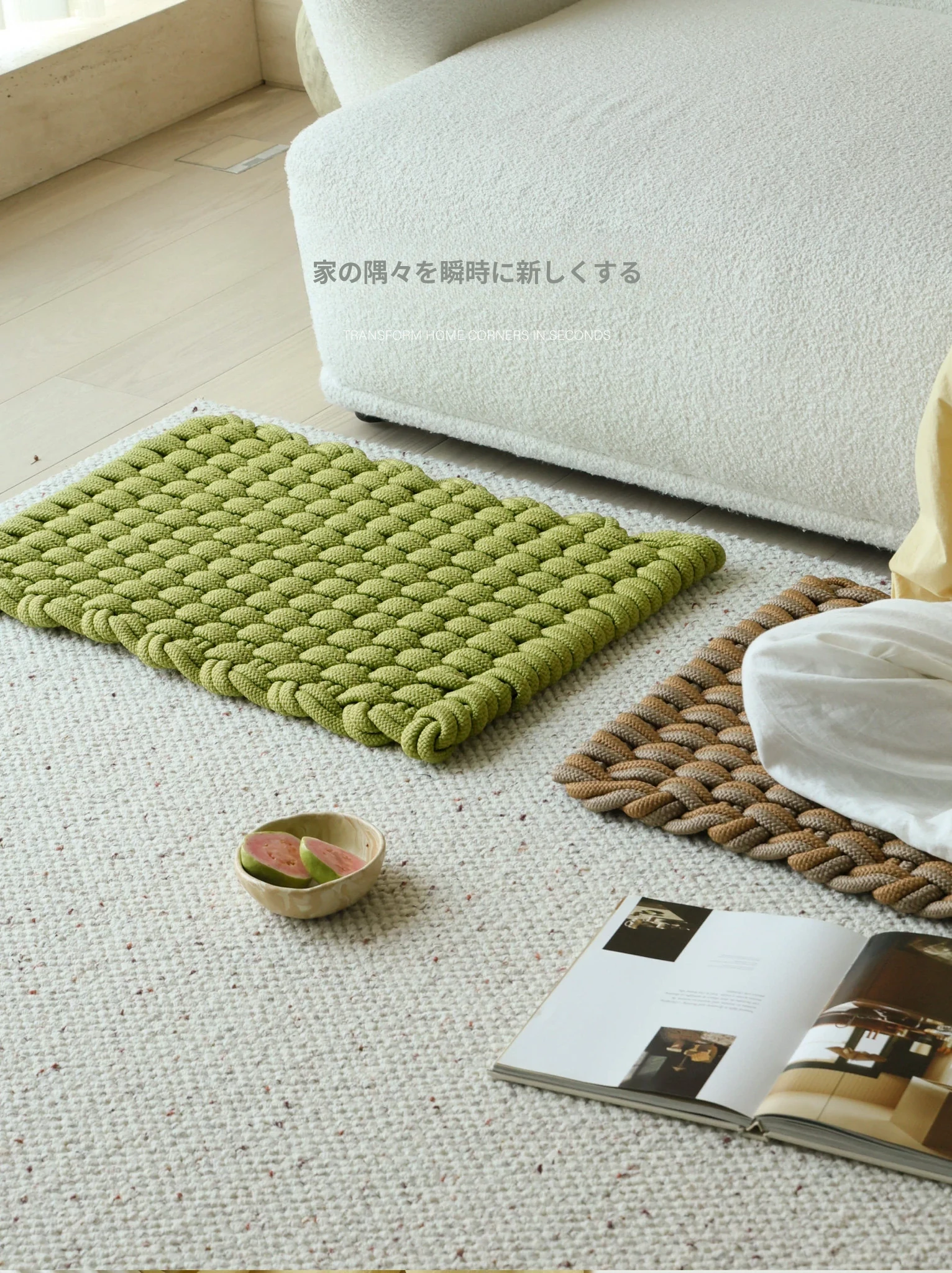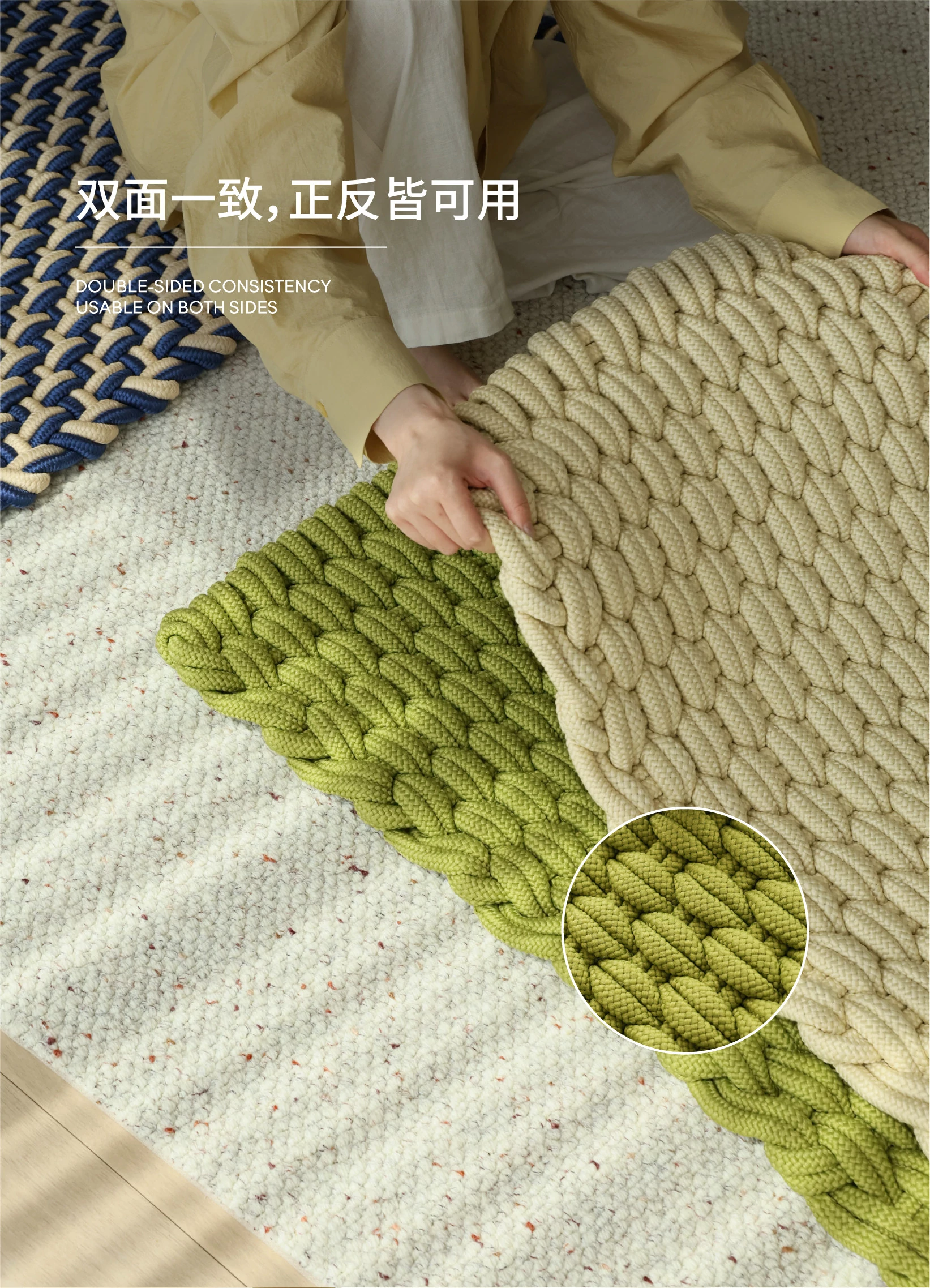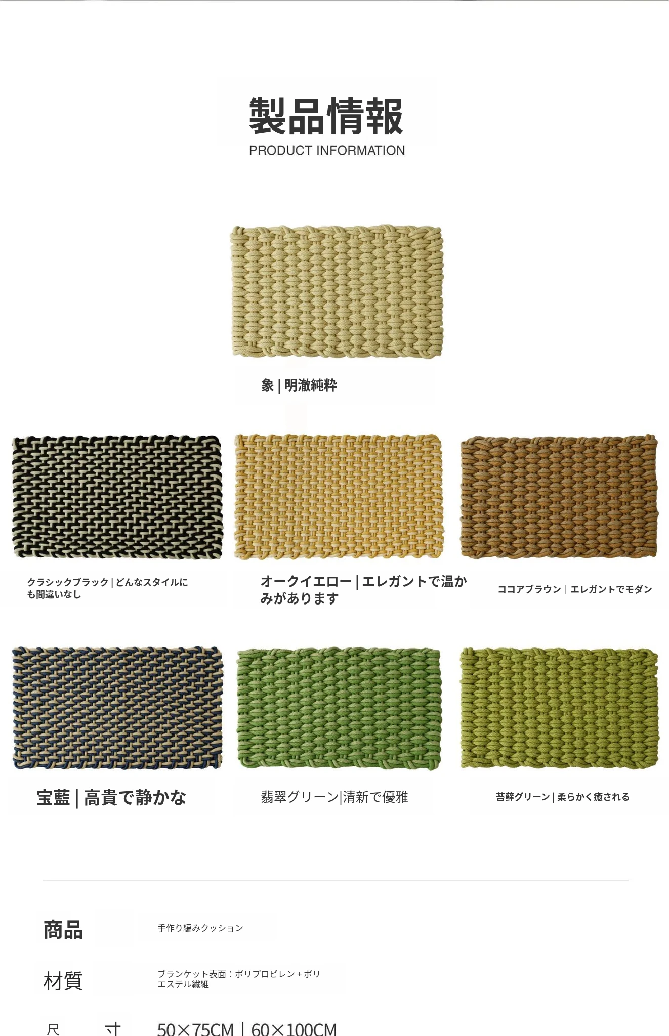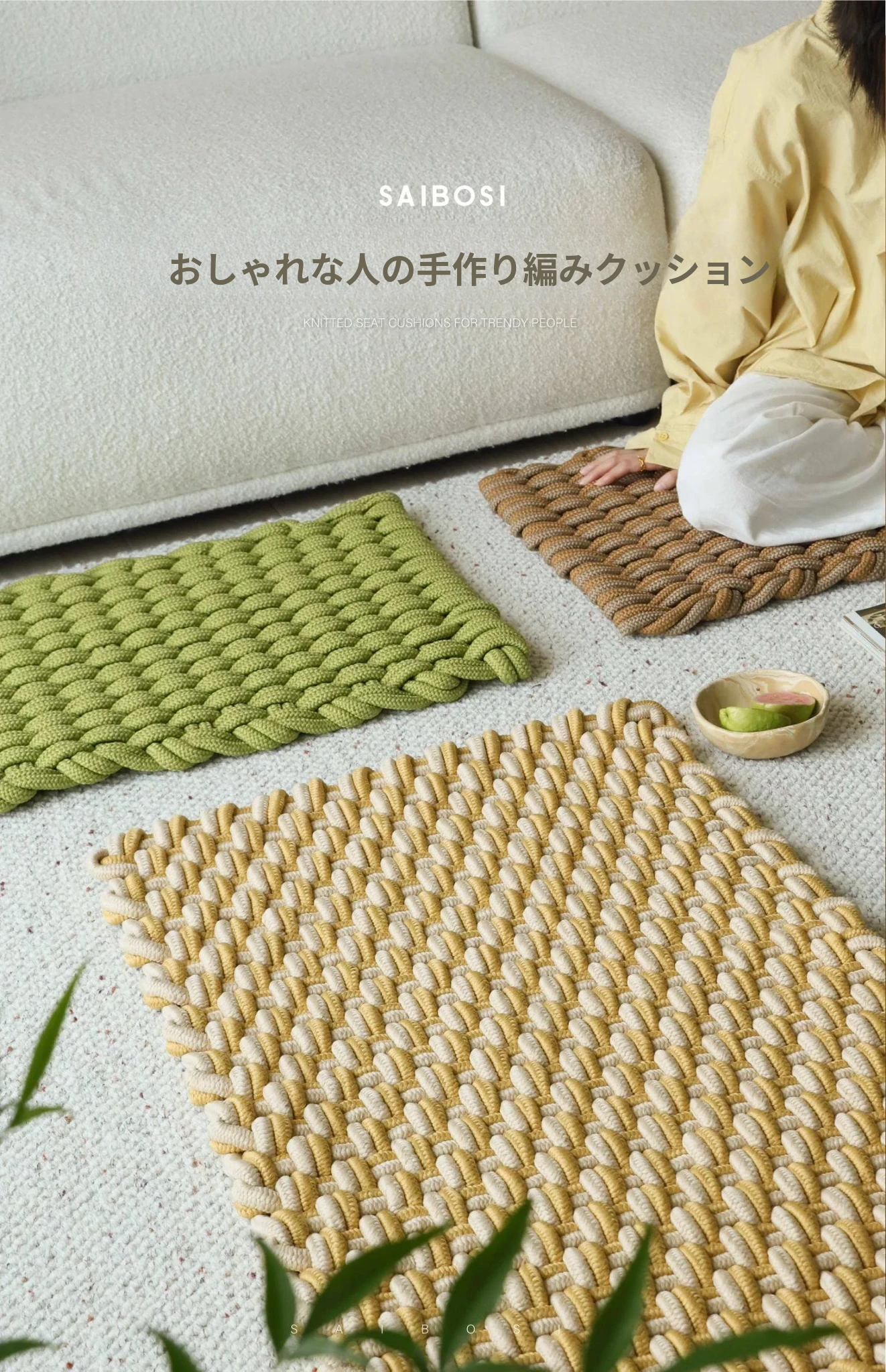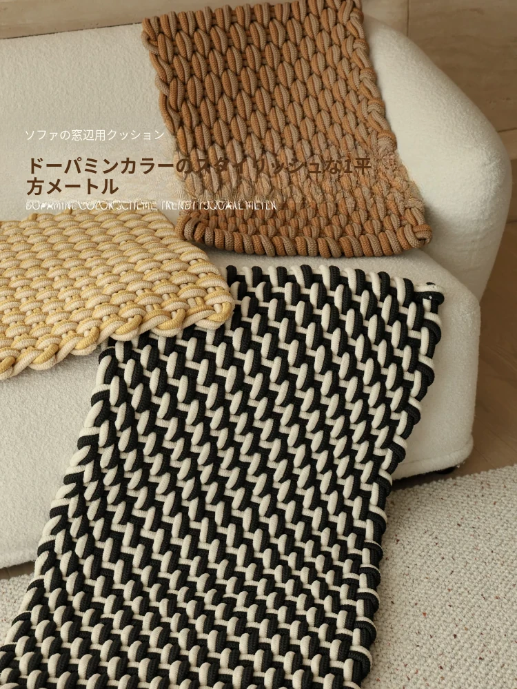 サイボスファッション 手作り編みクッションマット 四季使えるカーペット ベッドサイド・バルコニー・窓際マット お部屋のデコレーションに最適!