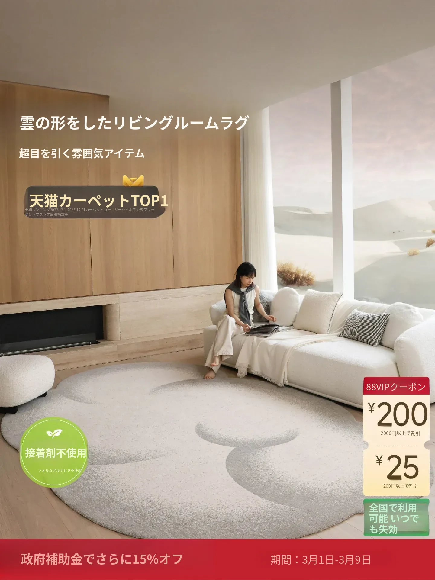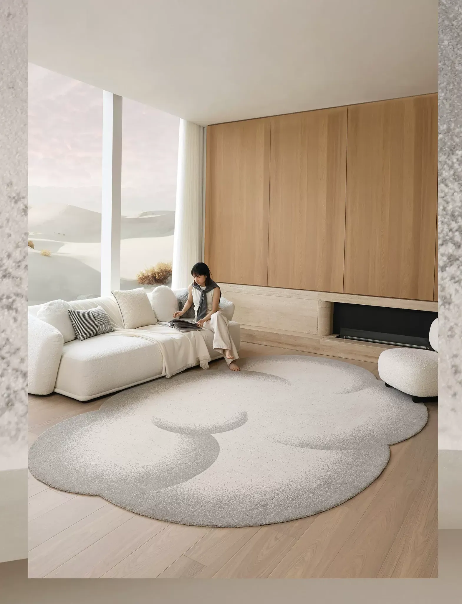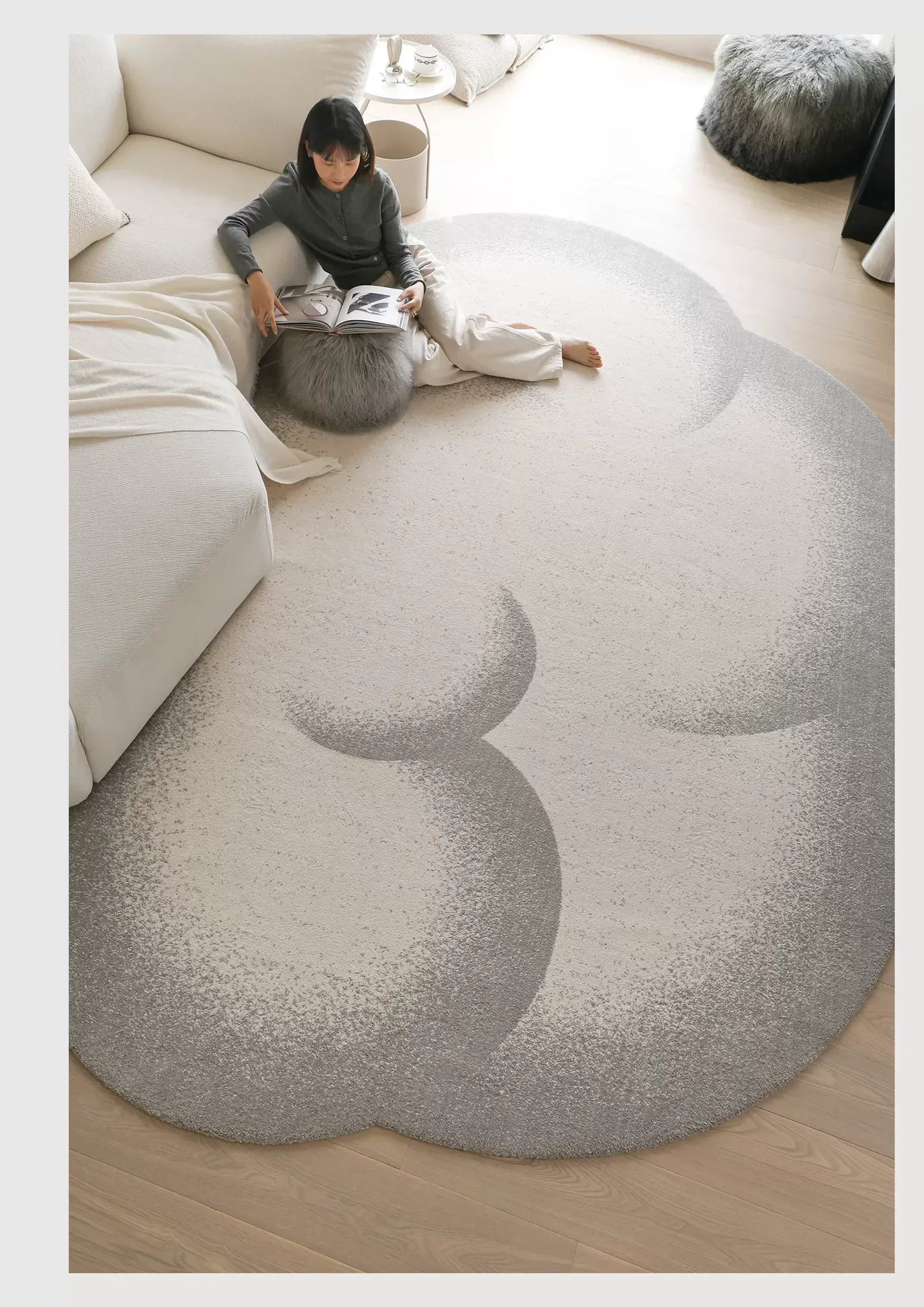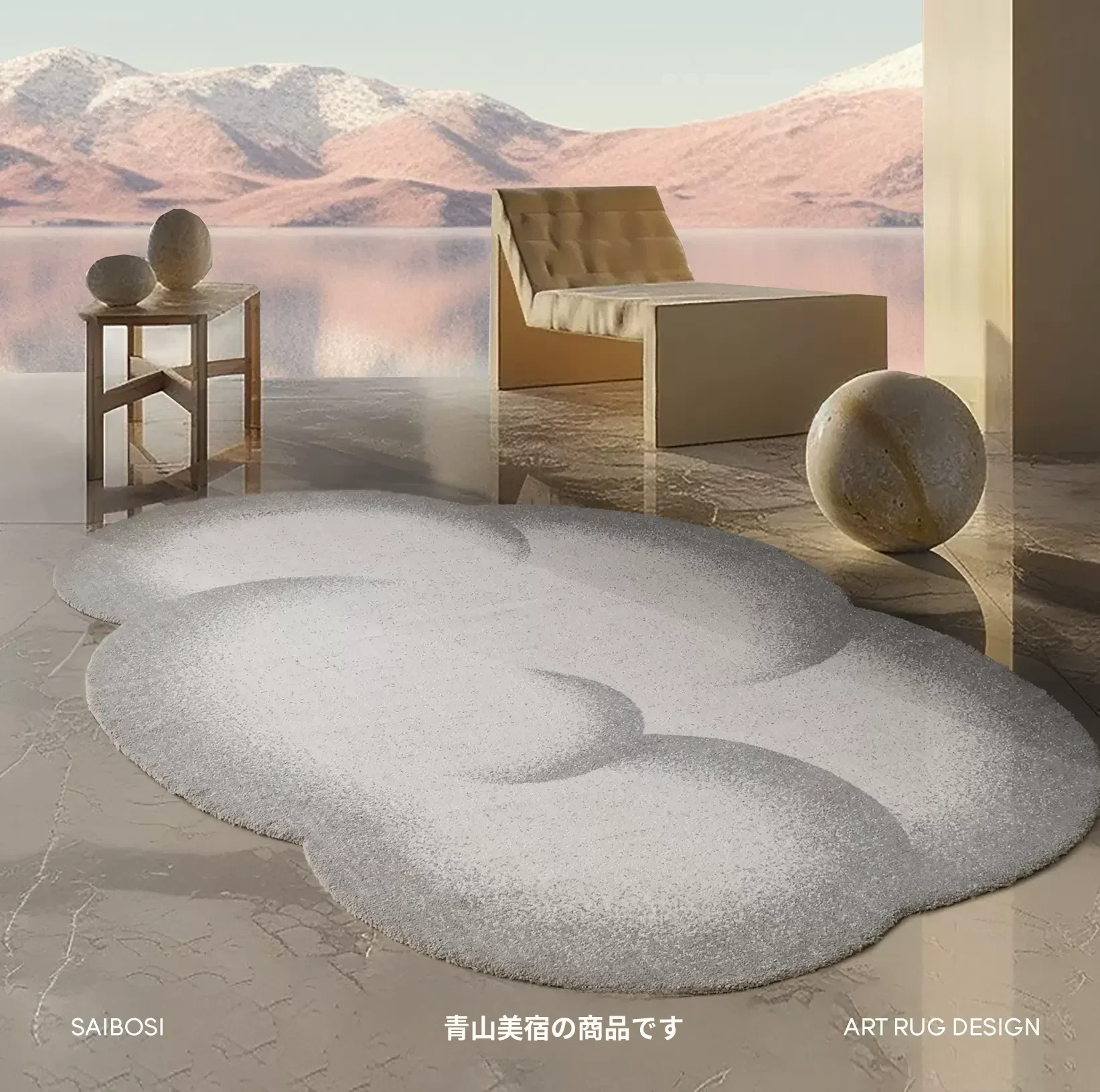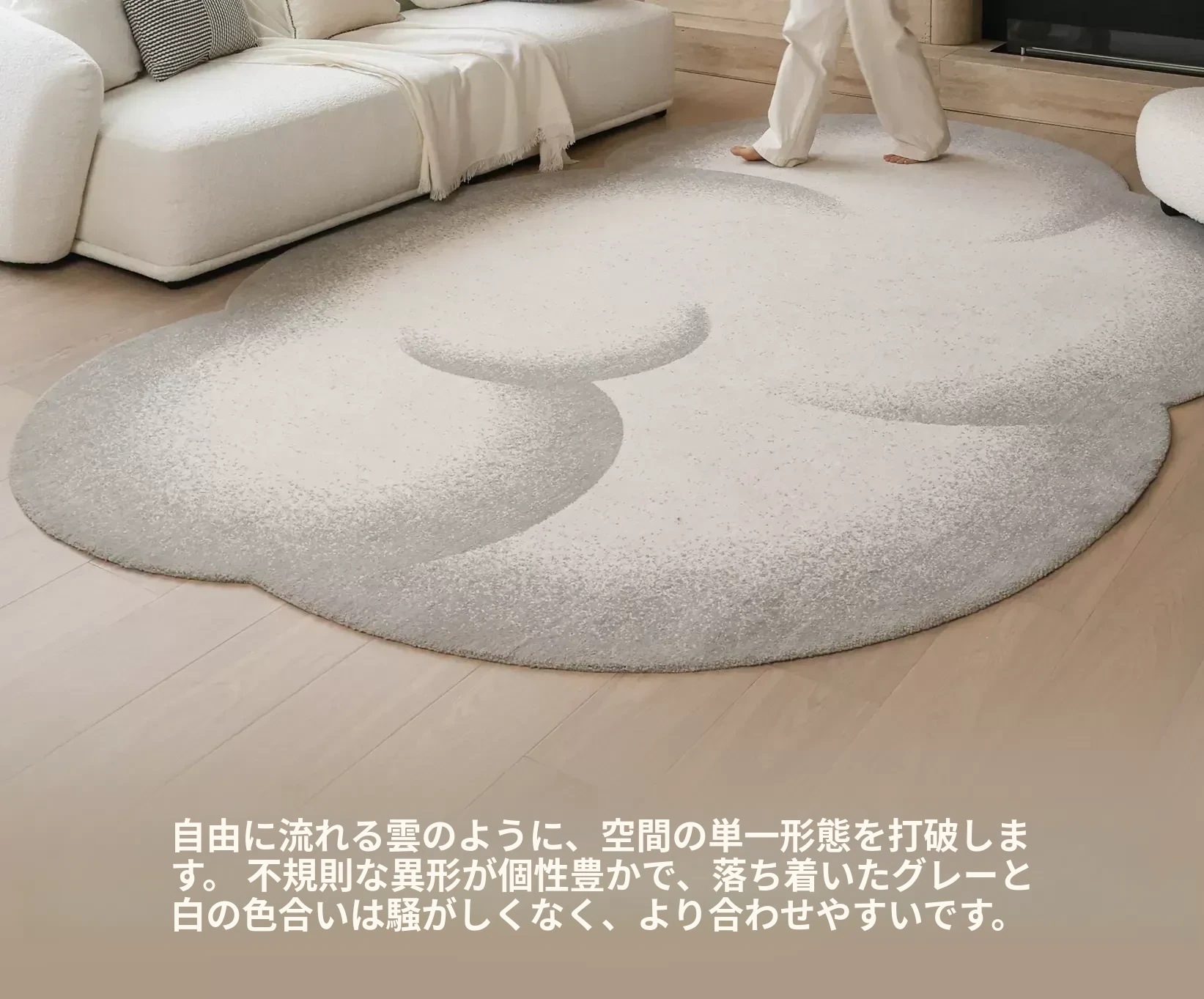 セイボスの雲模様防水ラグ - 高級感溢れる異形デザインで、寝室やリビング、ソファに最適!青山の美しい宿にぴったりのスタイルをお楽しみください。
