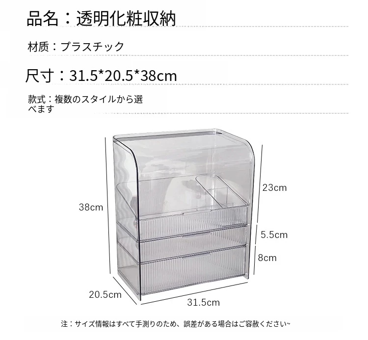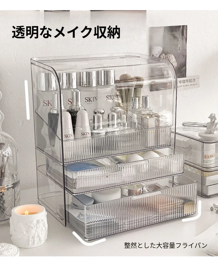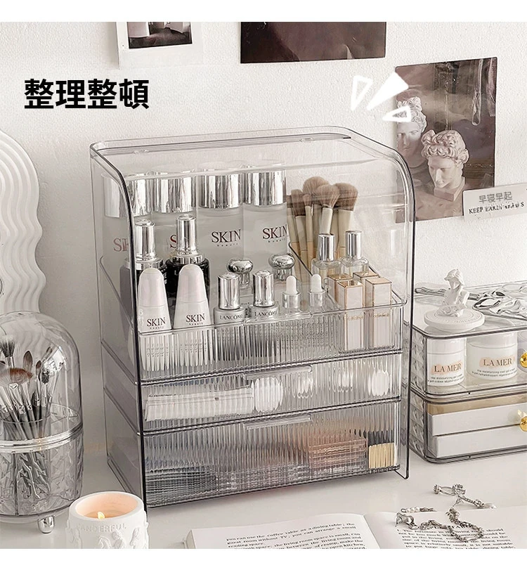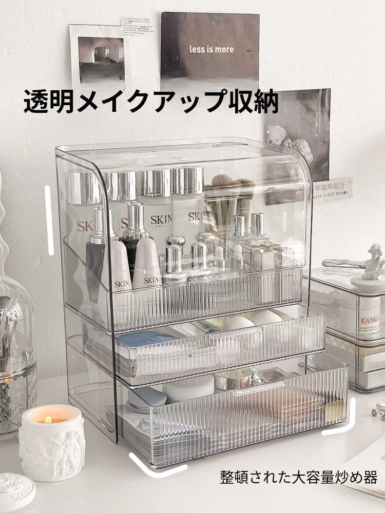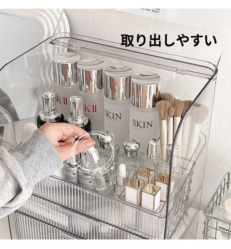 透明化粧品収納ボックス 防塵デザイン 引き出し式 デスクトップ用 リップ・化粧ブラシ収納 メイク台・スキンケア用 上質感あふれる収納ラック