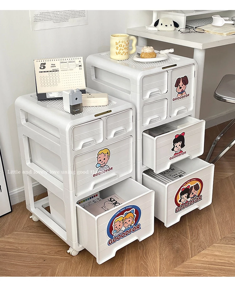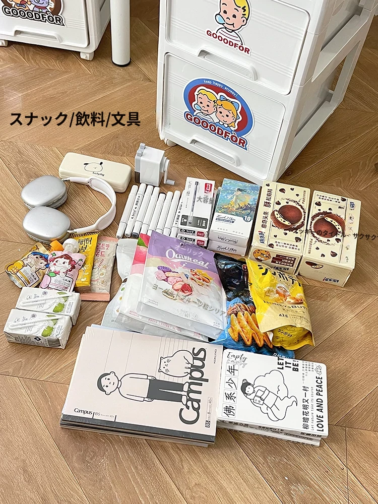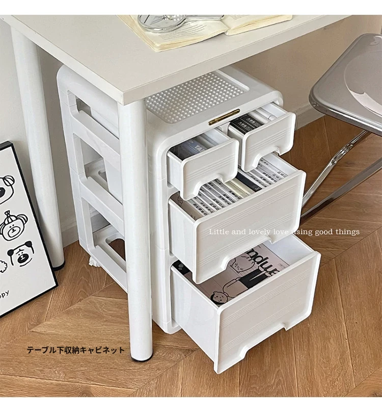 移動式デスク下収納キャビネット - 寮や寝室に最適!お菓子や化粧品をスッキリ整理。可愛い小型カートで、スペースを有効活用!