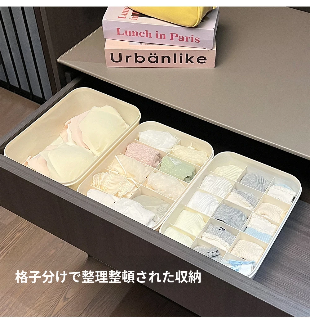 内衣・下着収納ボックス|クローゼット用のブラ・靴下専用整理ボックス|大切な下着をすっきり収納!仕分けが簡単で、毎日の選びやすさがアップする収納マジック!