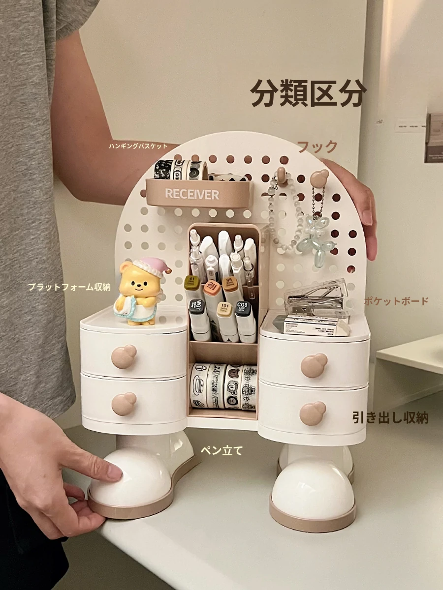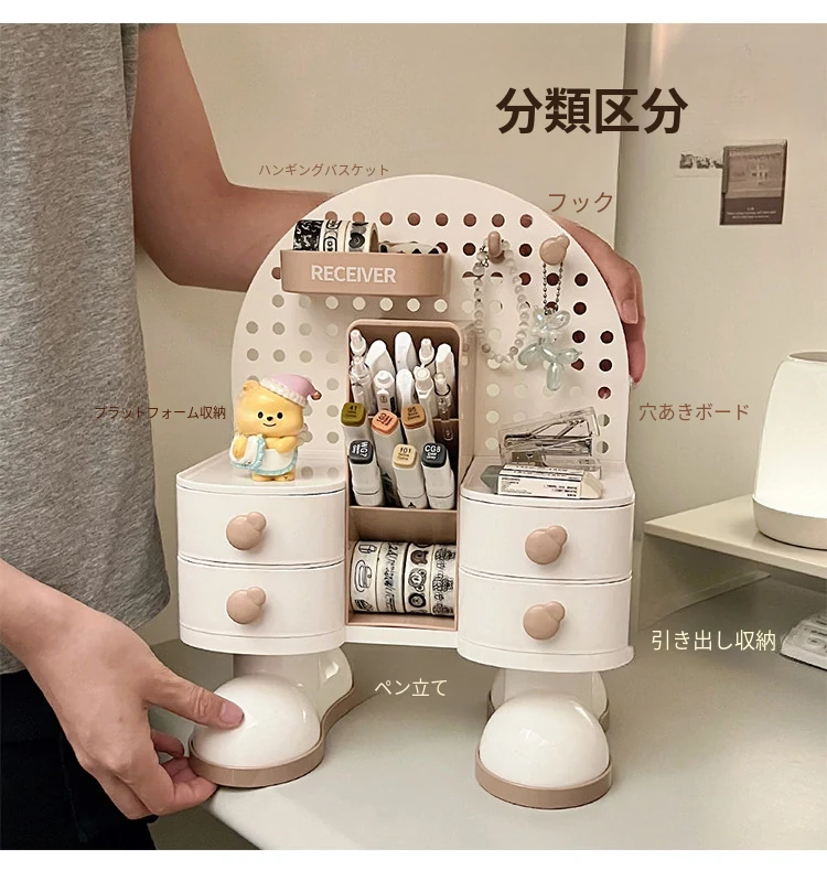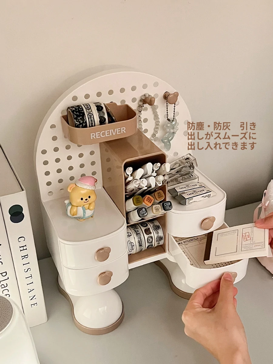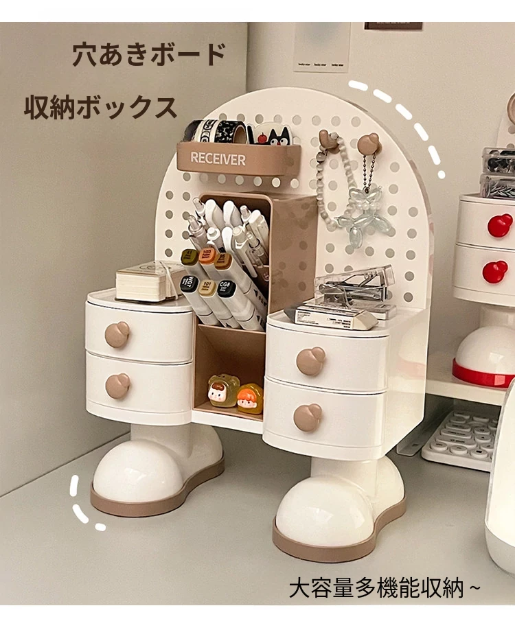 穴あきボードデスク収納ボックス - スタイリッシュな小物整理棚、学生寮やオフィスに最適!書類や文具をすっきり整理して、作業効率UP!デスク周りをすっきり整え、快適な作業空間を実現します。
