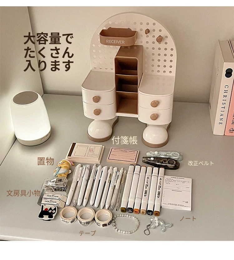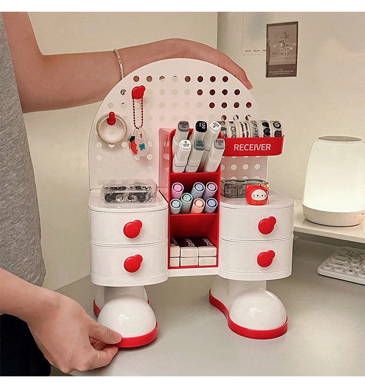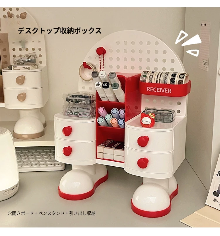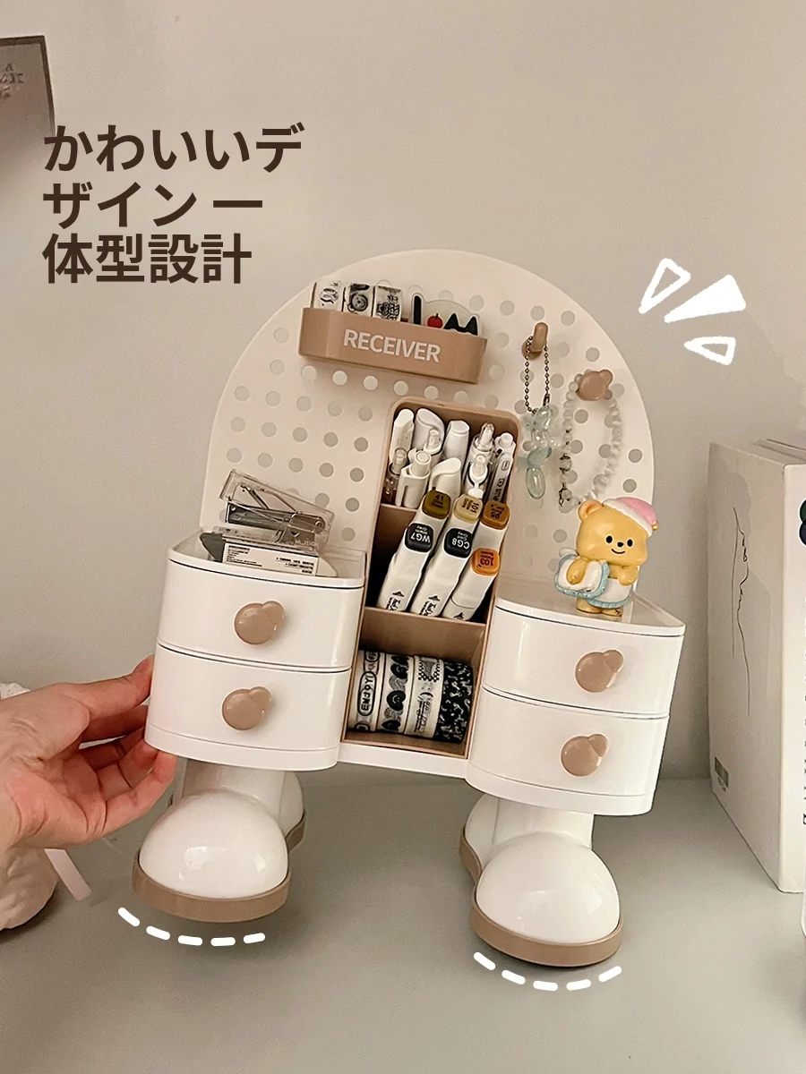穴あきボードデスク収納ボックス - スタイリッシュな小物整理棚、学生寮やオフィスに最適!書類や文具をすっきり整理して、作業効率UP!デスク周りをすっきり整え、快適な作業空間を実現します。