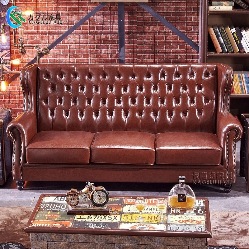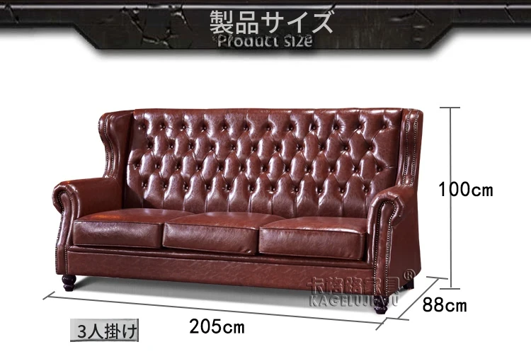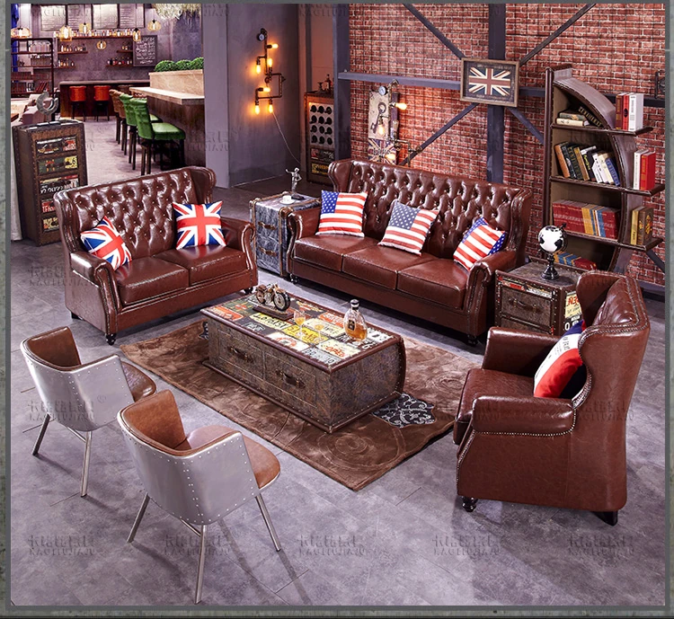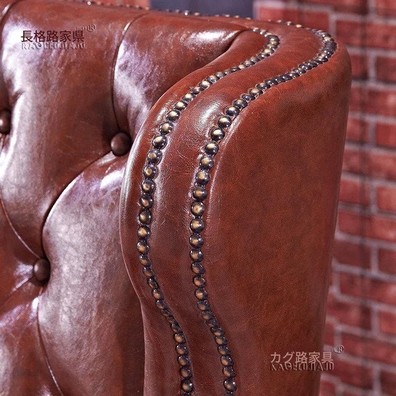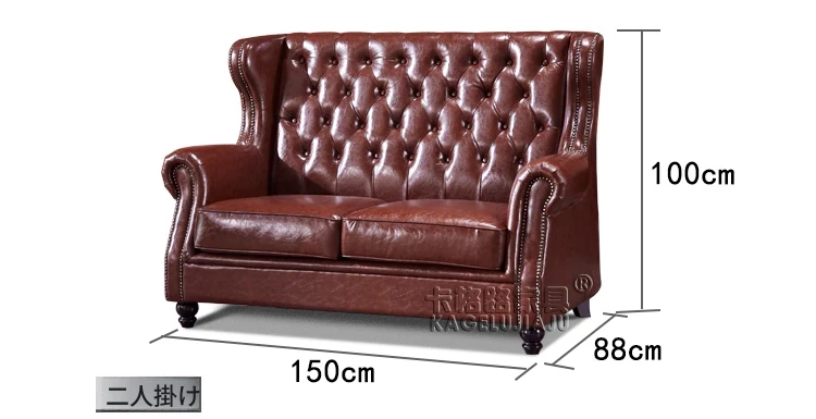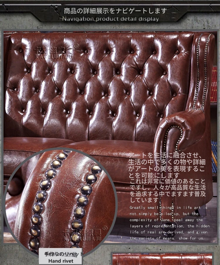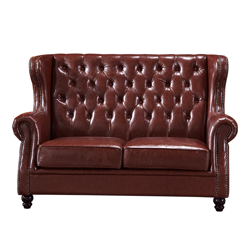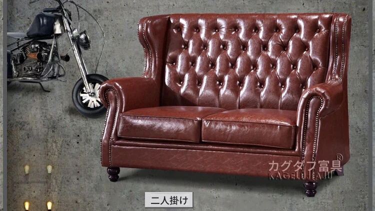 アメリカンカントリースタイルの本革ダブルソファ、ヴィンテージデザイン!最高級のトップグレインレザー使用、コンパクトなリビングやヴィラに最適な組み合わせ。おしゃれで快適な空間を演出します!