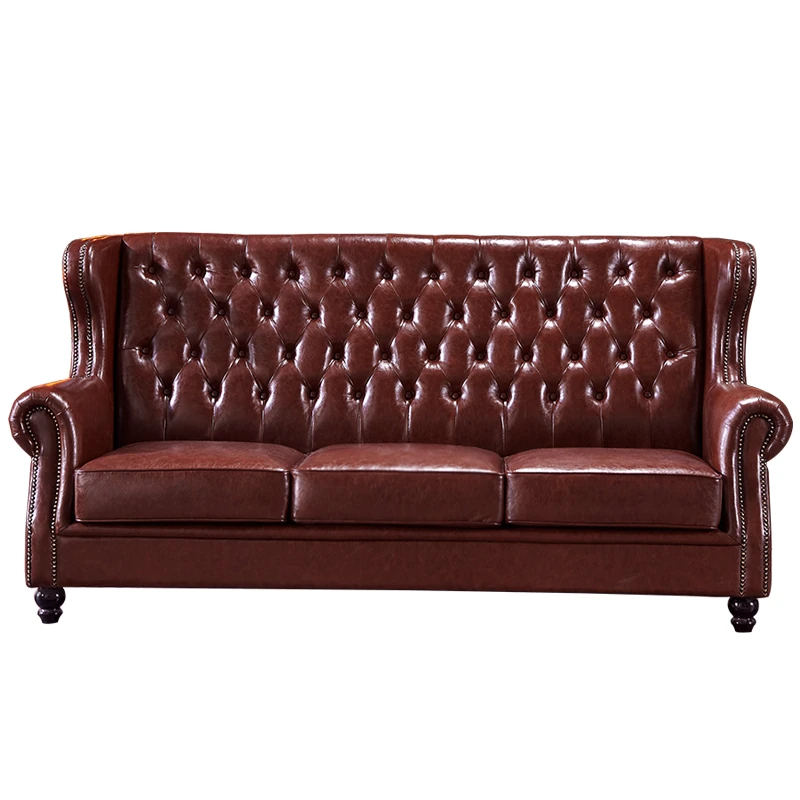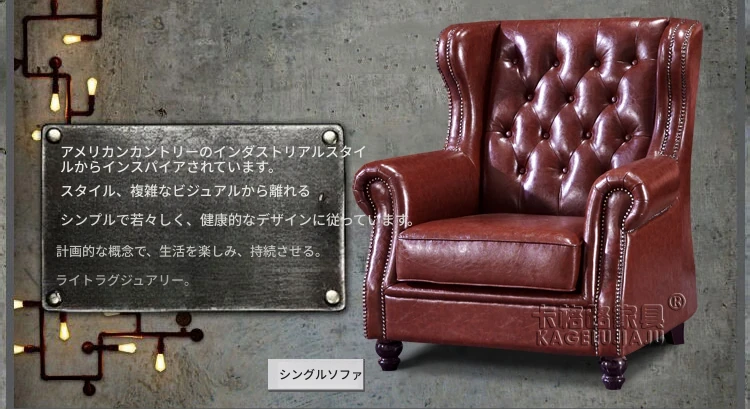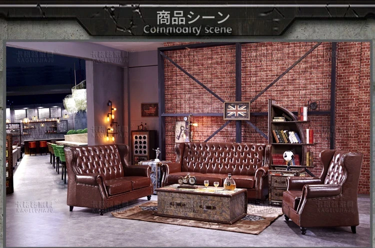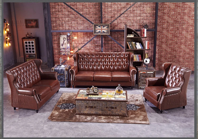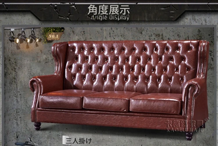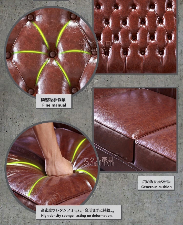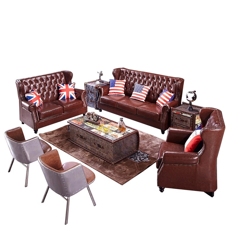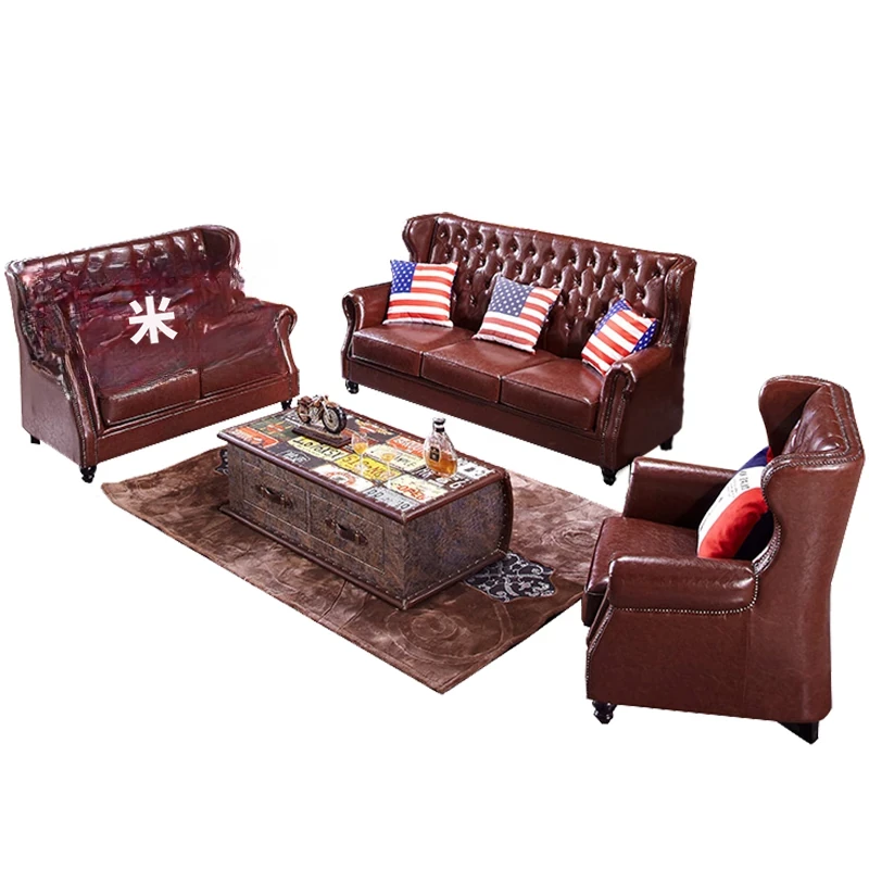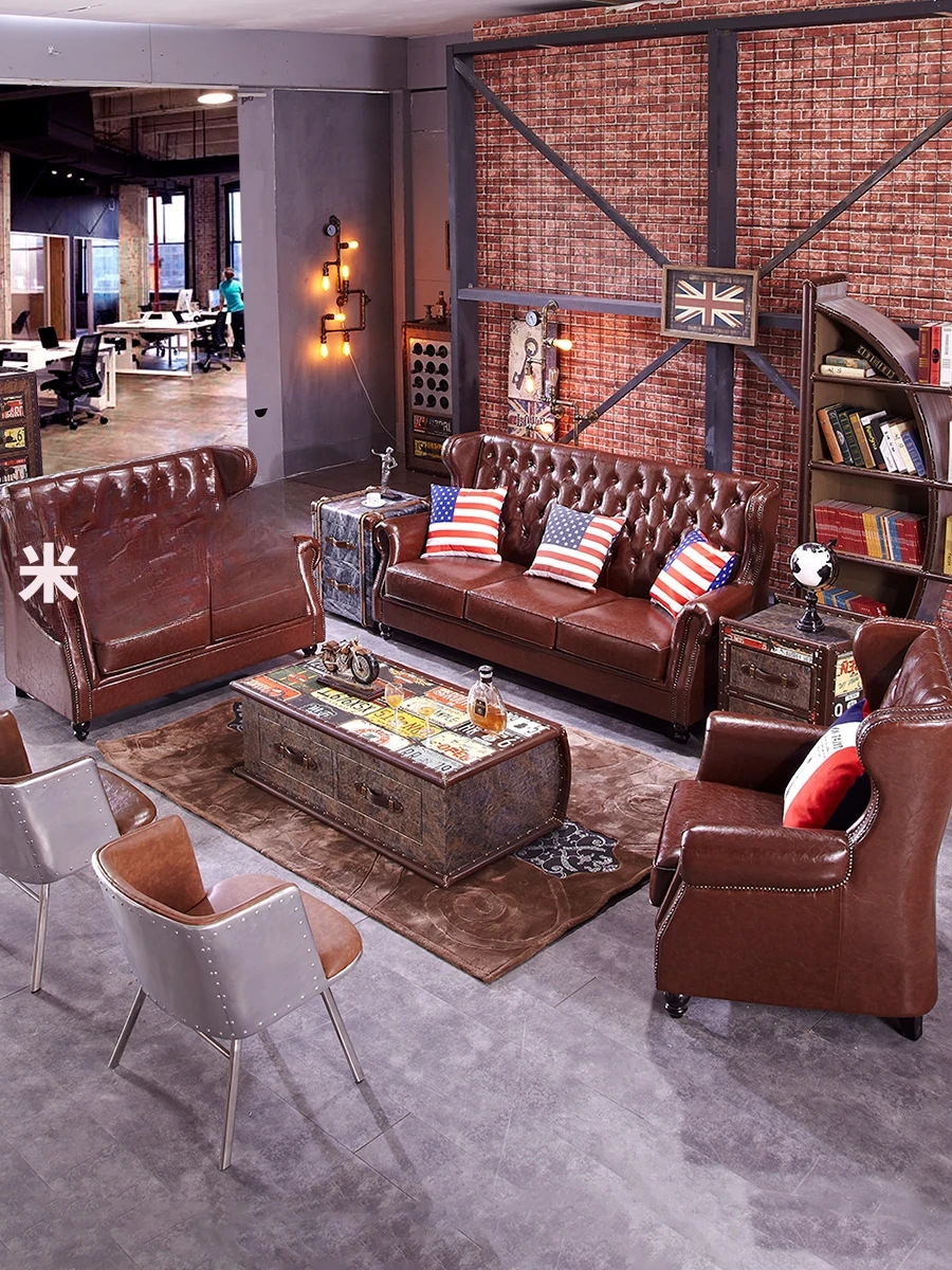 アメリカンカントリースタイルの本革ダブルソファ、ヴィンテージデザイン!最高級のトップグレインレザー使用、コンパクトなリビングやヴィラに最適な組み合わせ。おしゃれで快適な空間を演出します!