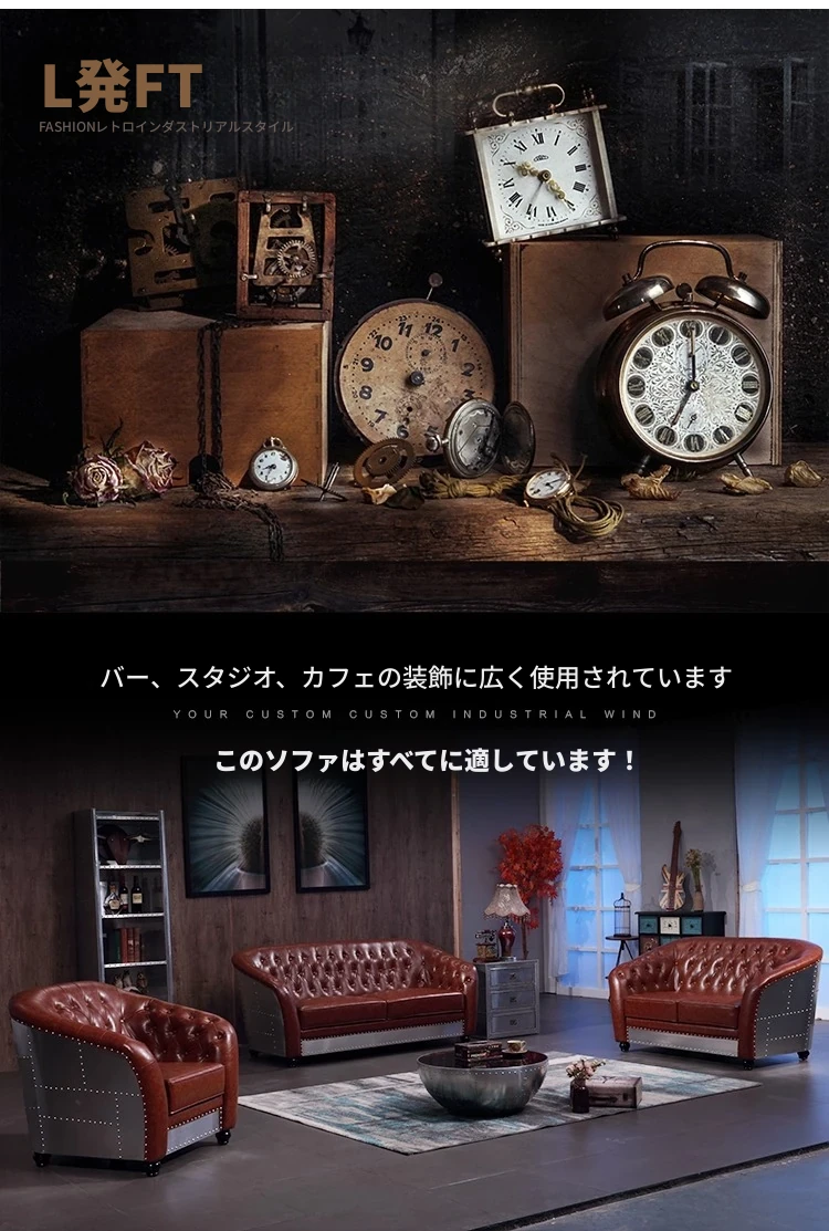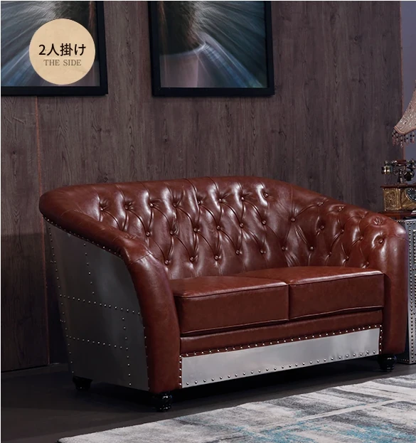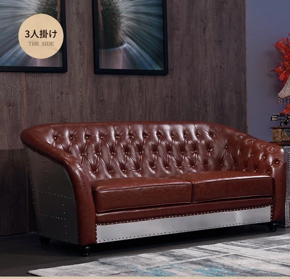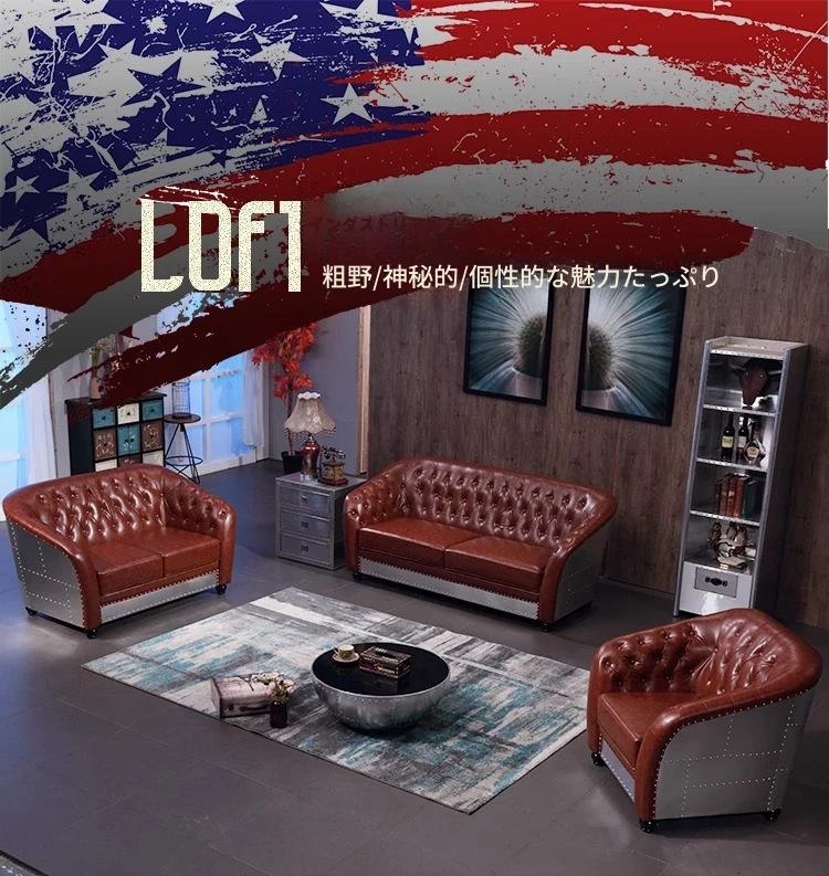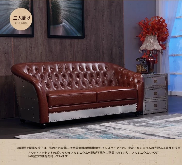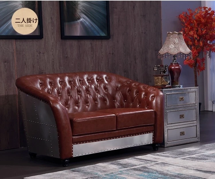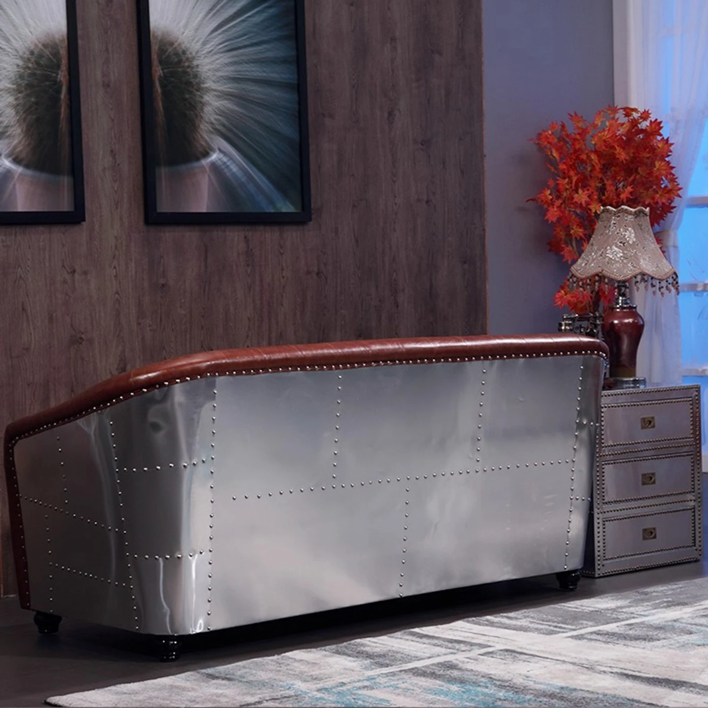 ロフト風レトロ工業デザインのアルミメタルソファ - オイルワックスレザー&ラッチ付き、個性的な3人掛けバー用コンビネーション家具で、スタイリッシュな空間を演出!