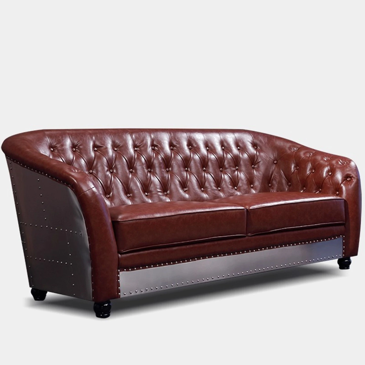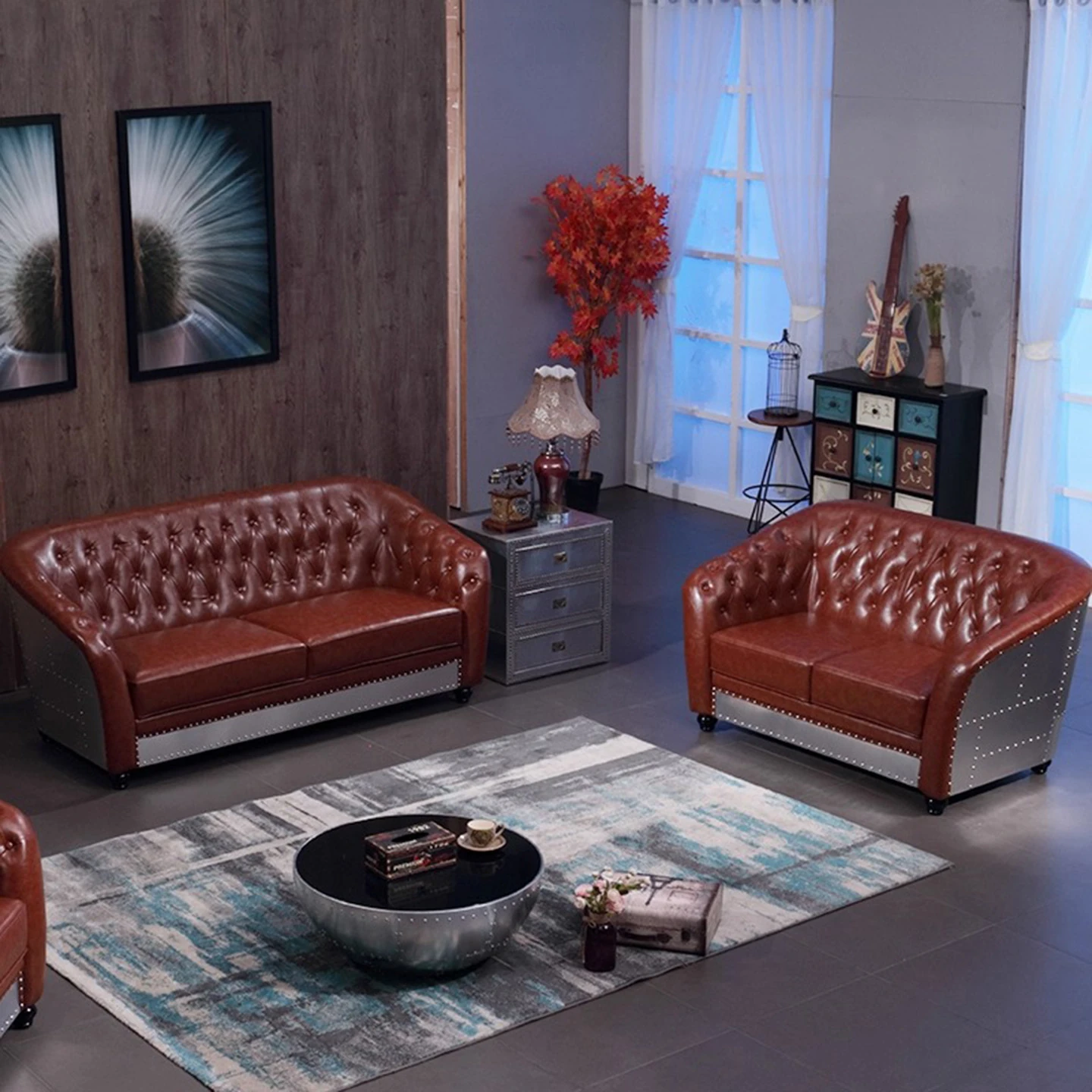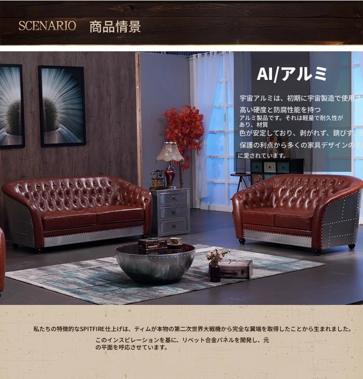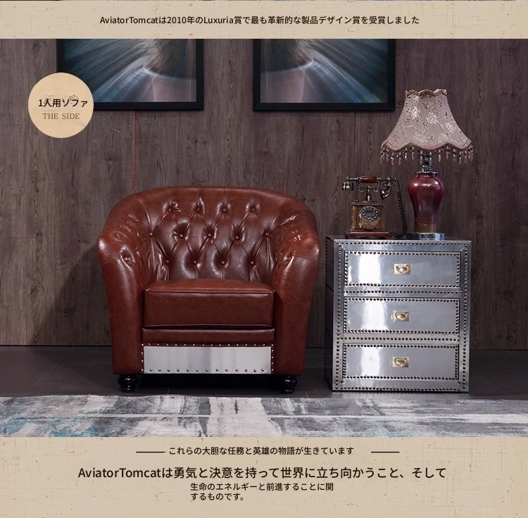 ロフト風レトロ工業デザインのアルミメタルソファ - オイルワックスレザー&ラッチ付き、個性的な3人掛けバー用コンビネーション家具で、スタイリッシュな空間を演出!